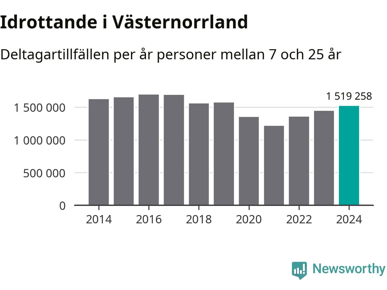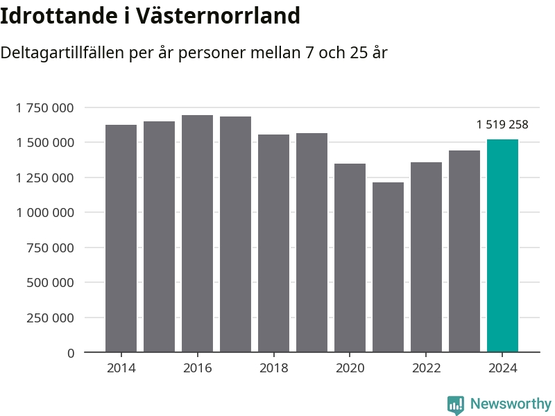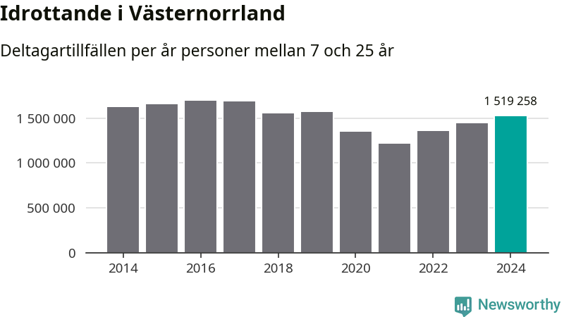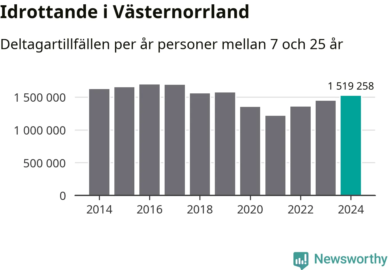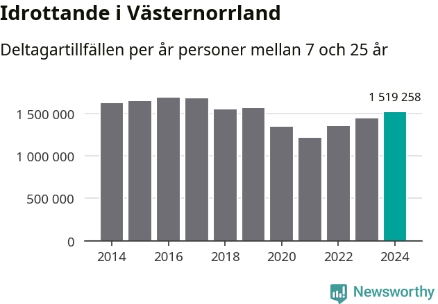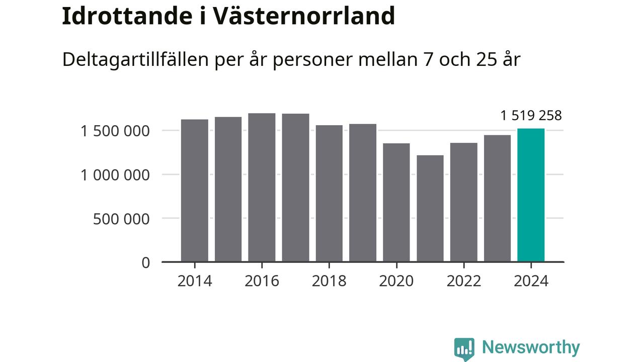 För tredje året i rad ökade aktiviteten inom ungdomsidrotten i Västernorrland under 2024. Det visar nya siffror om utbetalt Lok-stöd, som delas ut till föreningar anslutna till Riksidrottsförbundet specialidrottsförbund. Stödet riktar sig till föreningar som bedriver verksamhet för deltagare i åldern 7-25 år. Under året rapporterade föreningarna i Västernorrland runt 1 519 000 deltagartillfällen, vilket är en ökning med fem procent jämfört med 2023. I riket som helhet ökade antalet deltagartillfällen med fem procent under 2024.