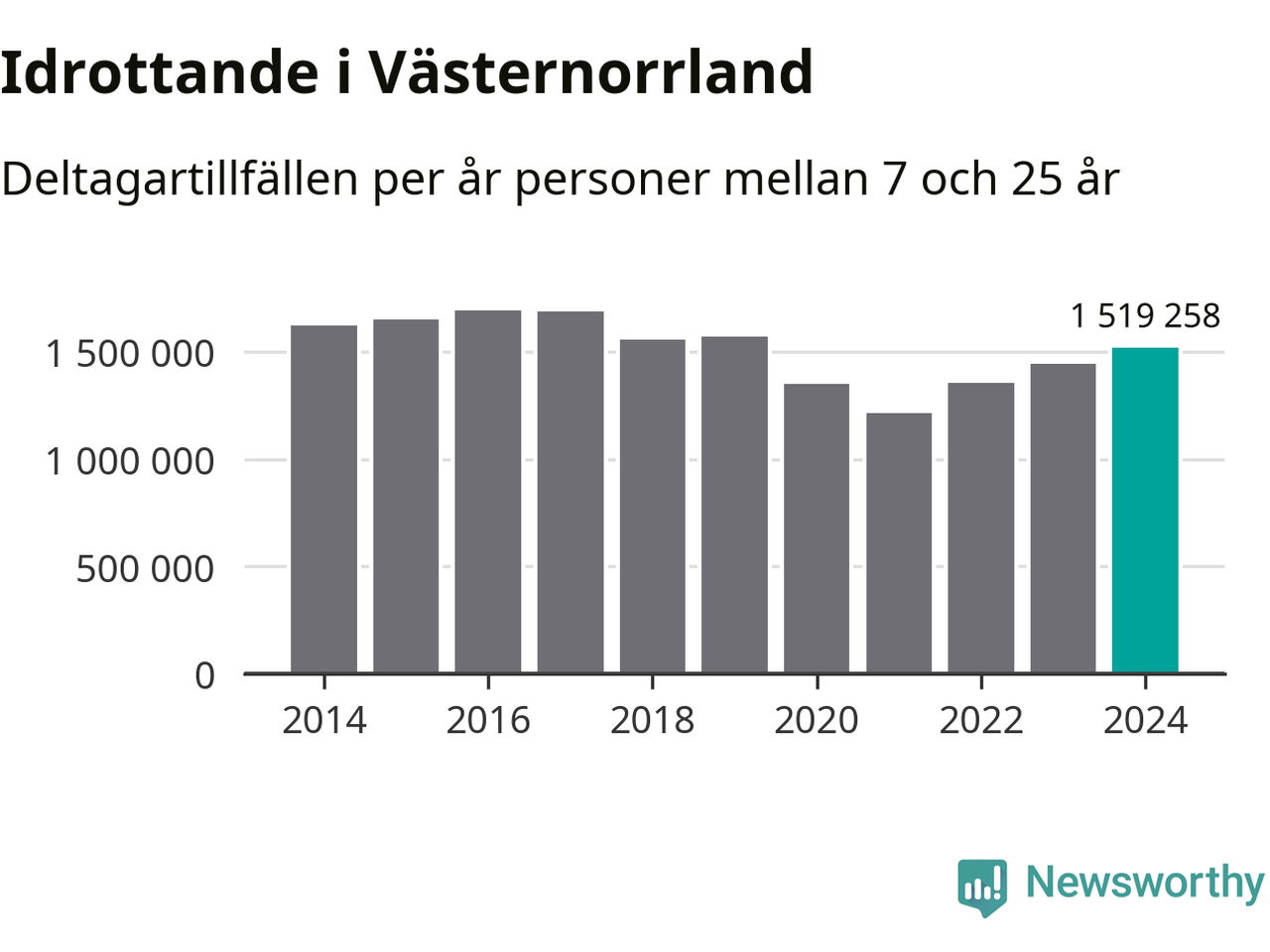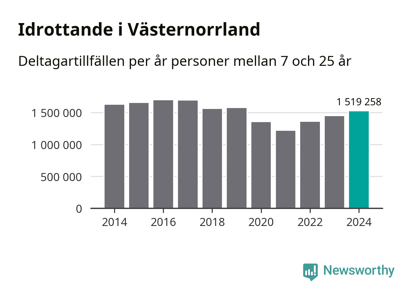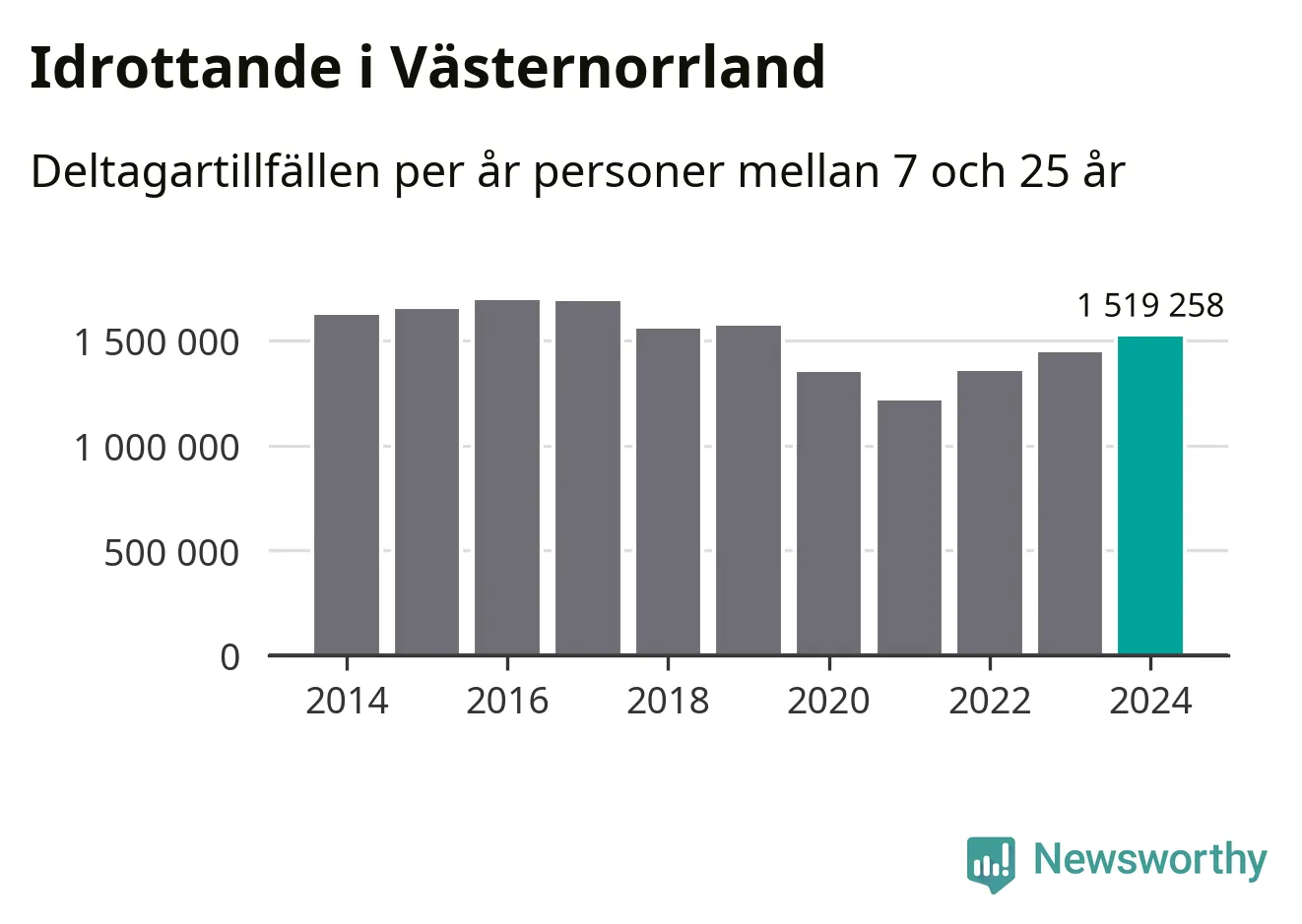 För tredje året i rad ökade aktiviteten inom ungdomsidrotten i Västernorrland under 2024. Det visar nya siffror om utbetalt Lok-stöd, som delas ut till föreningar anslutna till Riksidrottsförbundet specialidrottsförbund. Stödet riktar sig till föreningar som bedriver verksamhet för deltagare i åldern 7-25 år. Under året rapporterade föreningarna i Västernorrland runt 1 519 000 deltagartillfällen, vilket är en ökning med fem procent jämfört med 2023. I riket som helhet ökade antalet deltagartillfällen med fem procent under 2024.