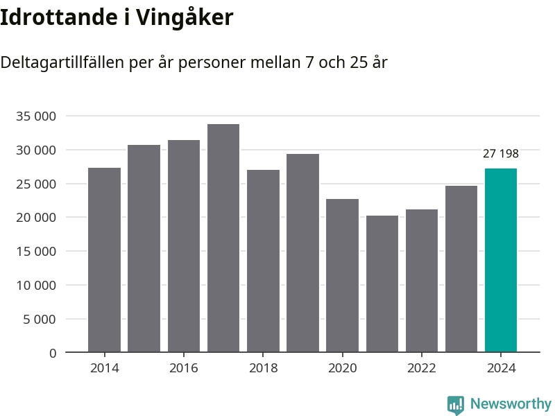 Bland idrotterna som ökat i Vingåker märks skidor, som gått från runt 600 deltagartillfällen till drygt 900. Det är en ökning med 57 procent jämfört med 2023. På riksplanet noterade bordtennisen en ökning med 23 procent, året då Truls Möregårdh spelade hem två OS-silver. I Vingåker finns dock inga deltagartillfällen för bordtennisen registrerade under 2024.
