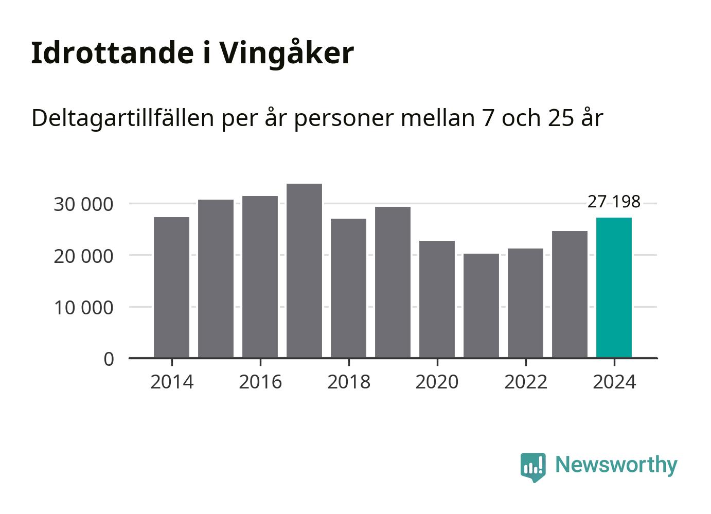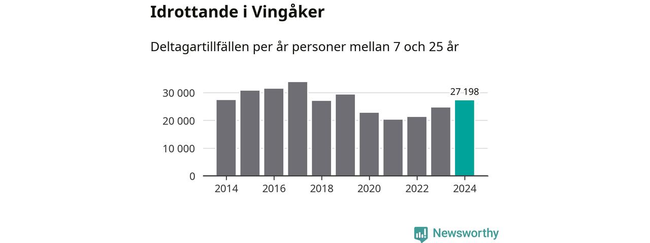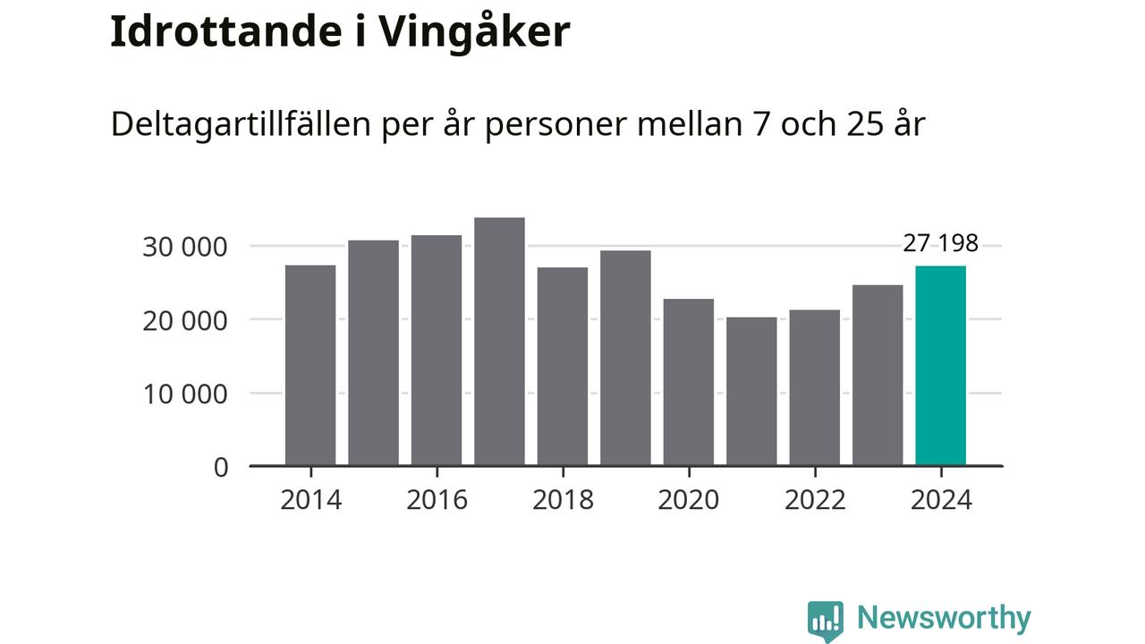 För tredje året i rad ökade aktiviteten inom ungdomsidrotten i Vingåker under 2024. Det visar nya siffror om utbetalt Lok-stöd, som delas ut till föreningar anslutna till Riksidrottsförbundet specialidrottsförbund. Stödet riktar sig till föreningar som bedriver verksamhet för deltagare i åldern 7-25 år. Under året rapporterade föreningarna i Vingåker runt 27 000 deltagartillfällen, vilket är en ökning med elva procent jämfört med 2023. I riket som helhet ökade antalet deltagartillfällen med fem procent under 2024.