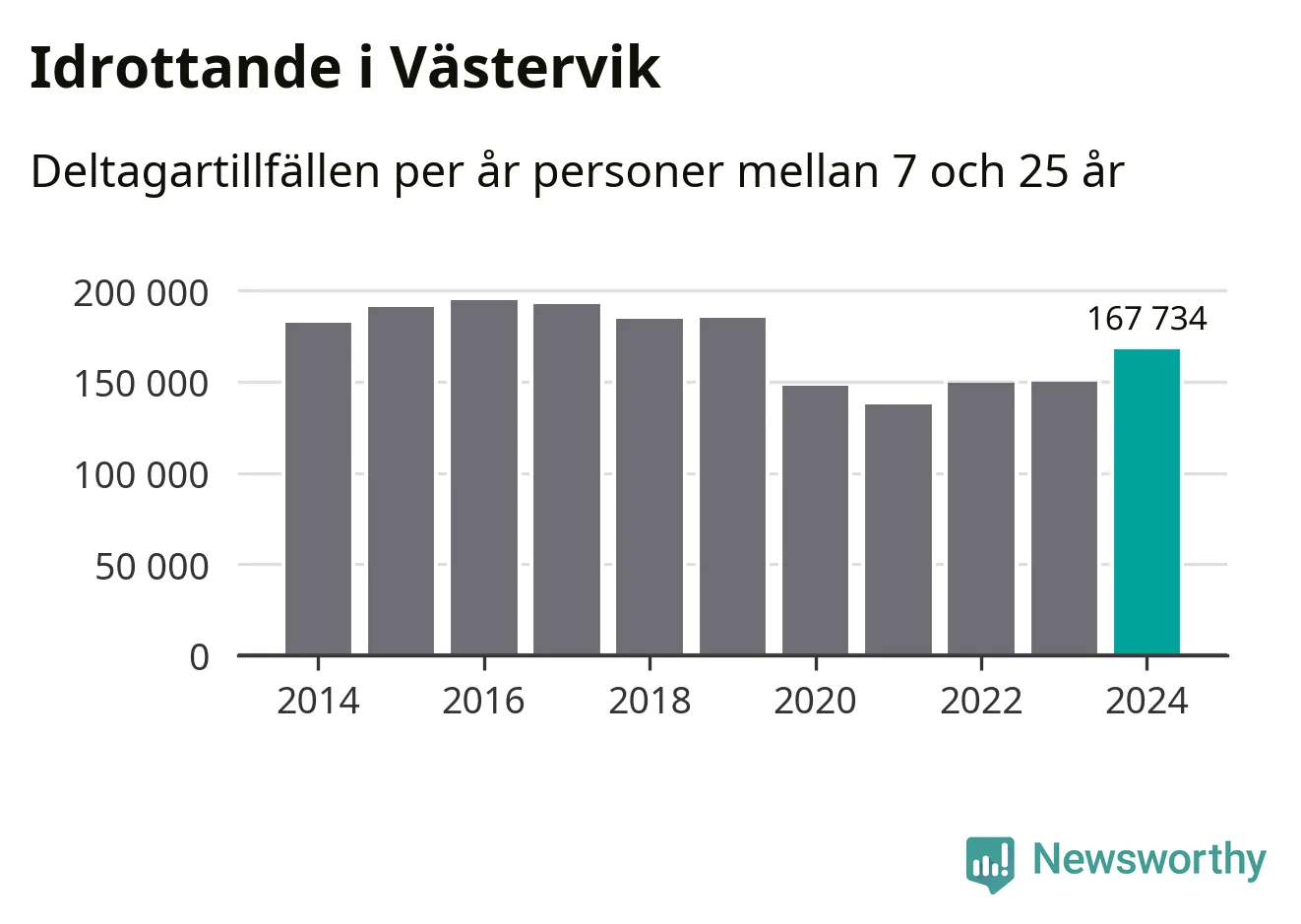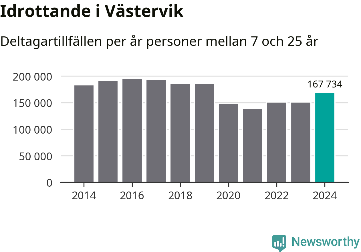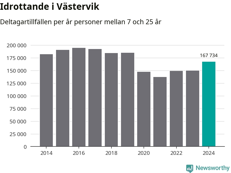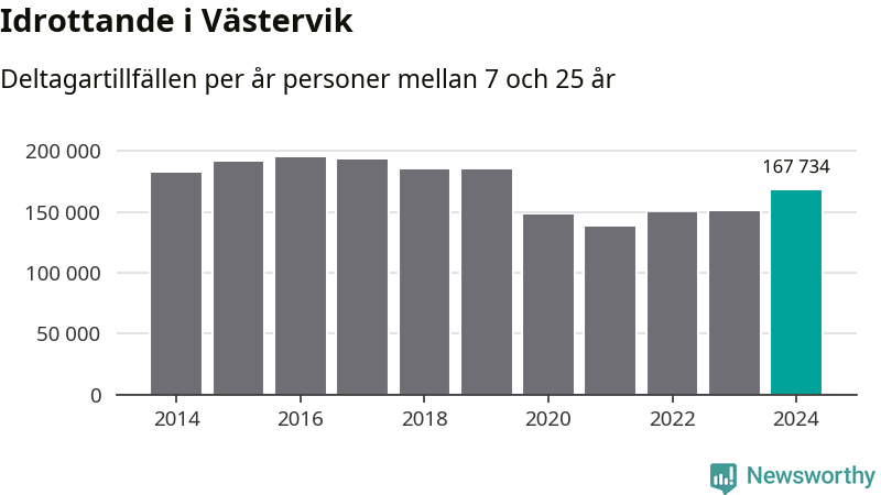 De 168 000 deltagartillfällen innebär att varje invånare i Västervik mellan 7 och 25 år i snitt deltog i 24 träningar, matcher eller turneringar under 2024. Flest deltagartillfällen per invånare i Kalmar län hade Mörbylånga kommun med 32 deltagartillfällen per invånare. I andra änden av listan finns Högsby kommun, 12 deltagartillfällen per invånare. Värt att nämna är att deltagartillfällena räknas i den kommun föreningen finns, det kan alltså vara ungdomar från en annan kommun som deltar.