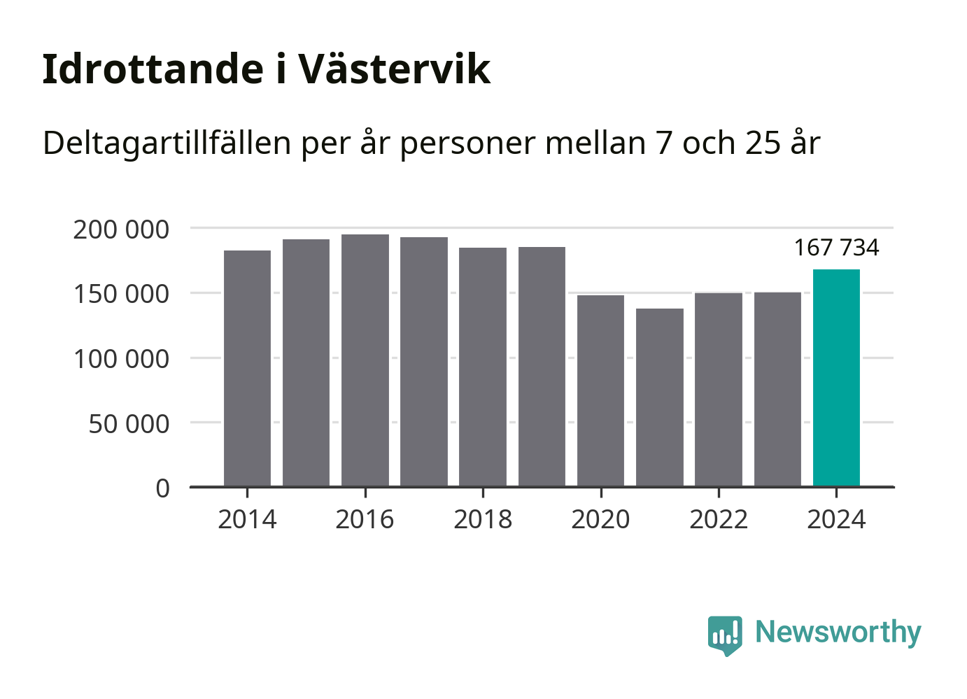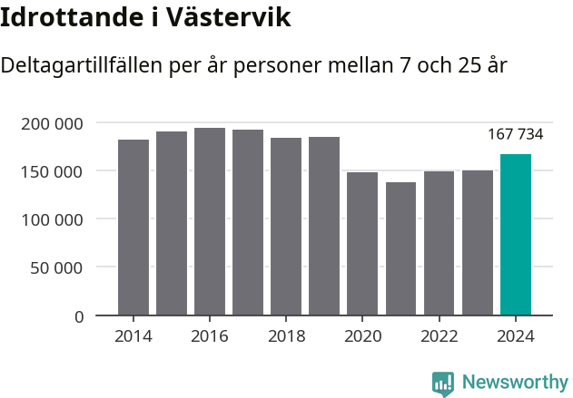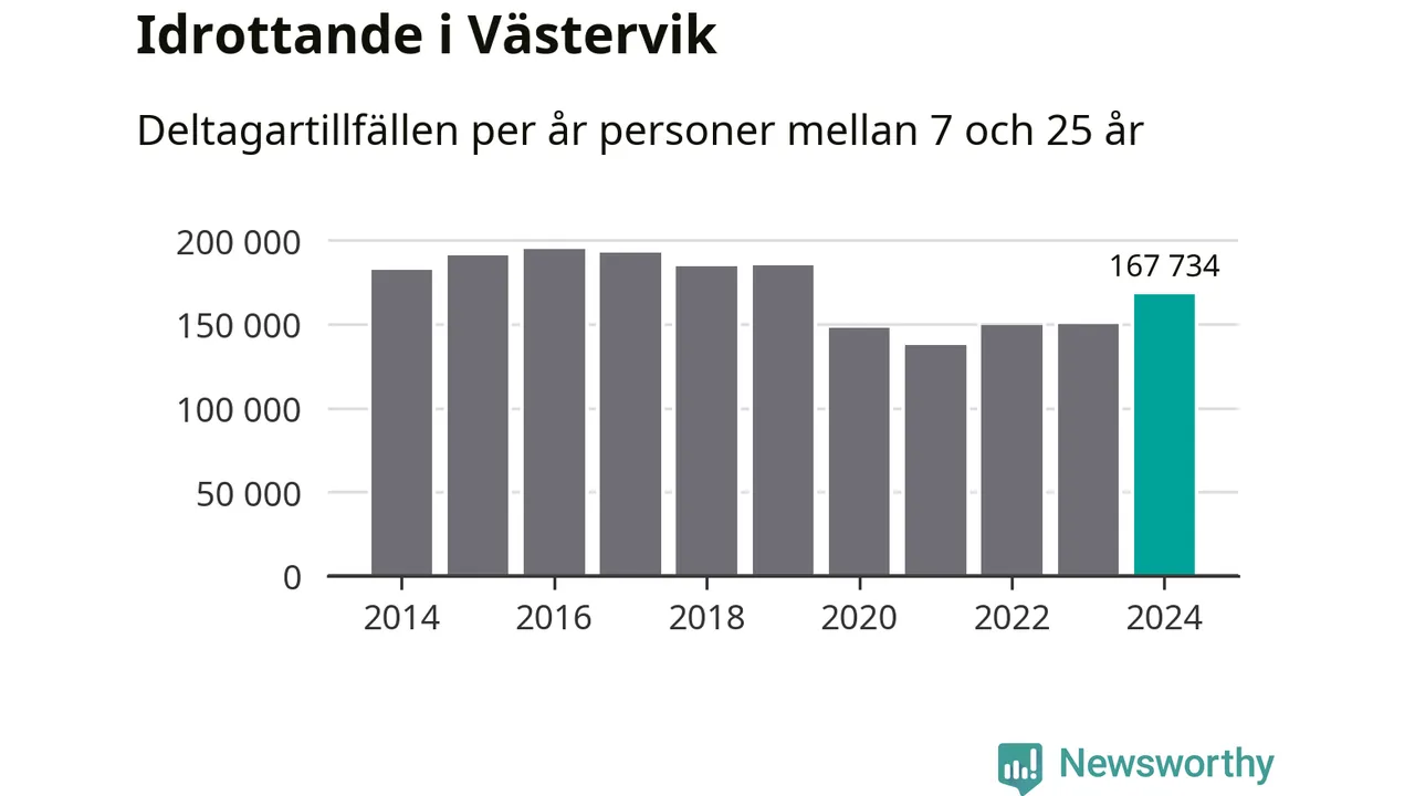 Västerviks-ungdomarna idrottade mer under 2024. Det visar nya siffror om utbetalt Lok-stöd, som delas ut till föreningar anslutna till Riksidrottsförbundet specialidrottsförbund. Stödet riktar sig till föreningar som bedriver verksamhet för deltagare i åldern 7-25 år. Under året rapporterade föreningarna i Västervik runt 168 000 deltagartillfällen, vilket är en ökning med tolv procent jämfört med 2023. I riket som helhet ökade antalet deltagartillfällen med fem procent under 2024.