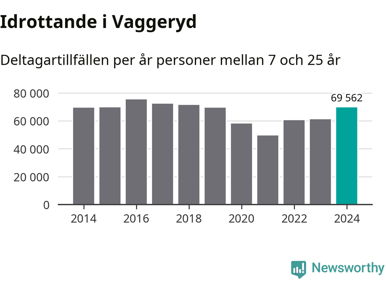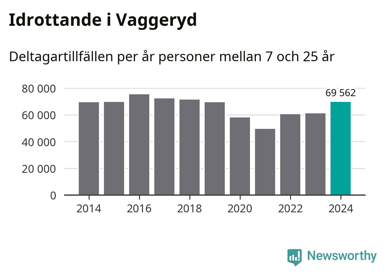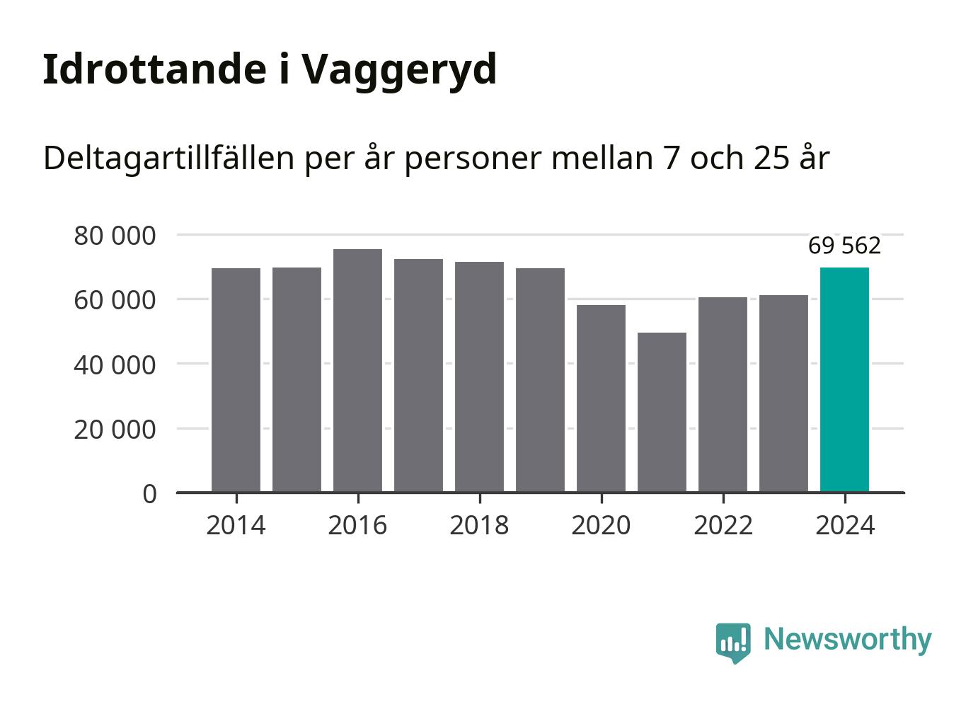 Vaggeryds-ungdomarna idrottade mer under 2024. Det visar nya siffror om utbetalt Lok-stöd, som delas ut till föreningar anslutna till Riksidrottsförbundet specialidrottsförbund. Stödet riktar sig till föreningar som bedriver verksamhet för deltagare i åldern 7-25 år. Under året rapporterade föreningarna i Vaggeryd runt 70 000 deltagartillfällen, vilket är en ökning med 14 procent jämfört med 2023. I riket som helhet ökade antalet deltagartillfällen med fem procent under 2024.