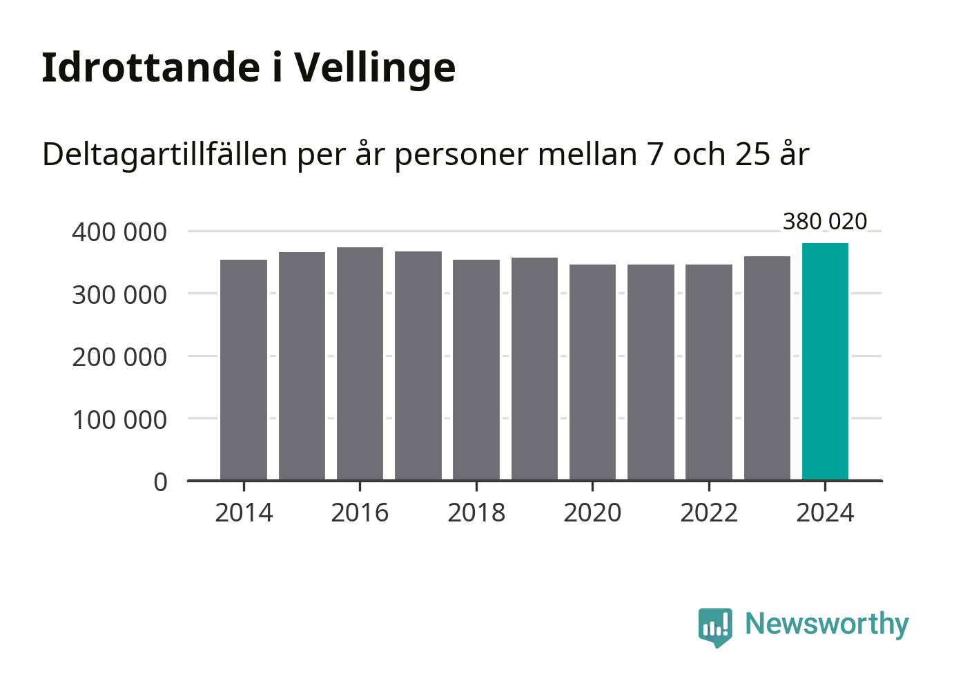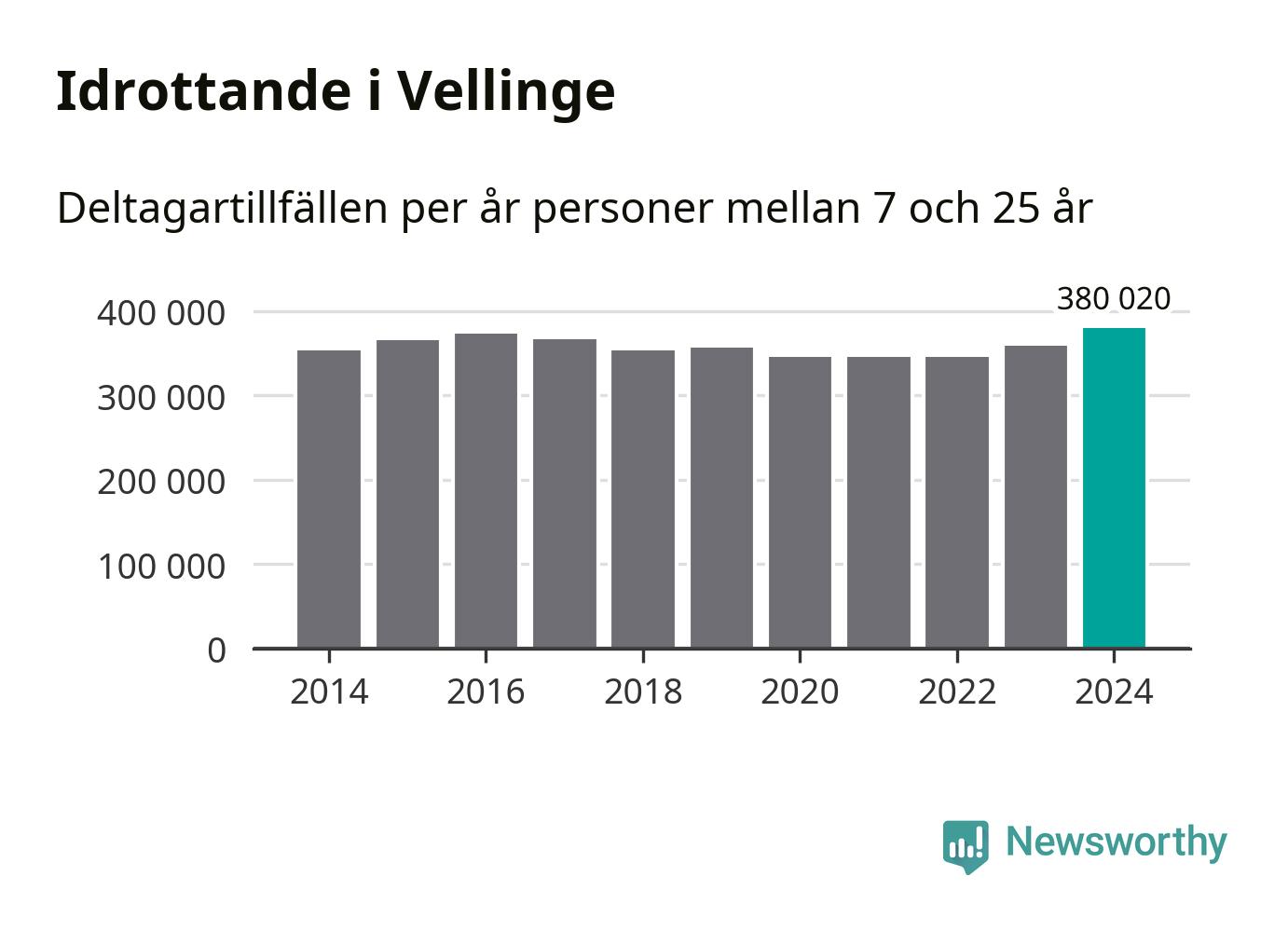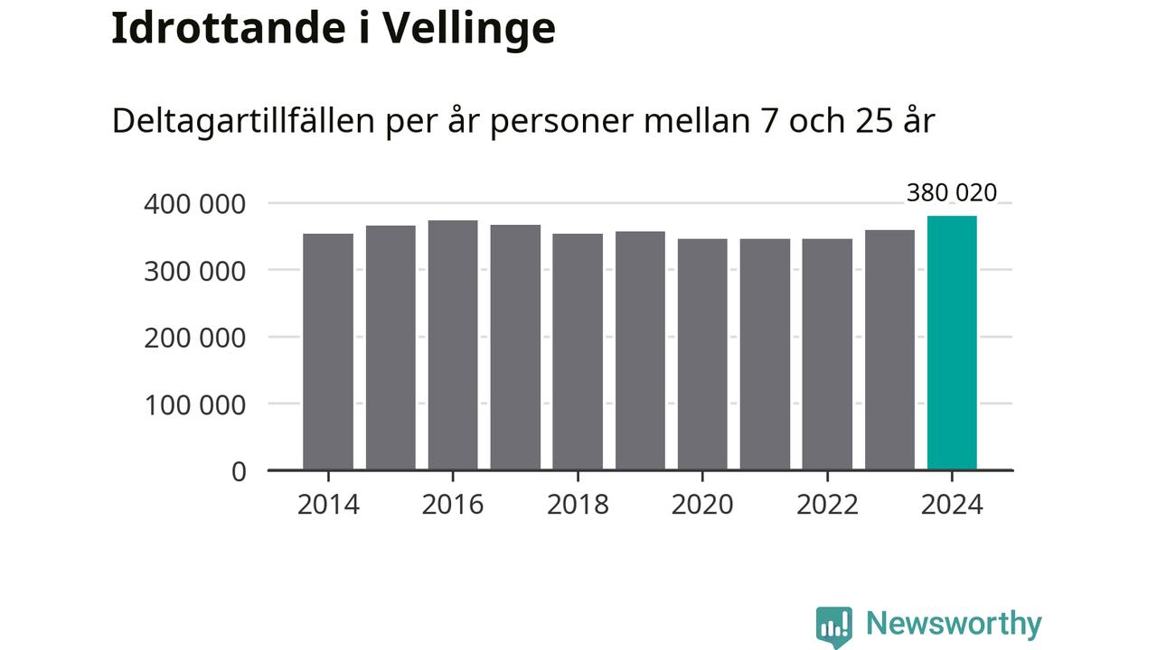 För andra året i rad ökade aktiviteten inom ungdomsidrotten i Vellinge under 2024. Det visar nya siffror om utbetalt Lok-stöd, som delas ut till föreningar anslutna till Riksidrottsförbundet specialidrottsförbund. Stödet riktar sig till föreningar som bedriver verksamhet för deltagare i åldern 7-25 år. Under året rapporterade föreningarna i Vellinge runt 380 000 deltagartillfällen, vilket är en ökning med sex procent jämfört med 2023, och den högsta siffran i kommunen sedan åtminstone 2014. I riket som helhet ökade antalet deltagartillfällen med fem procent under 2024.