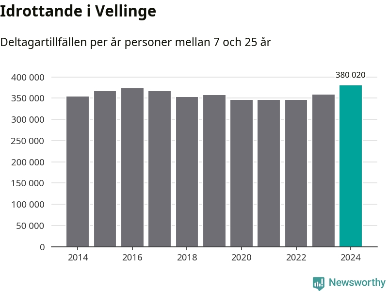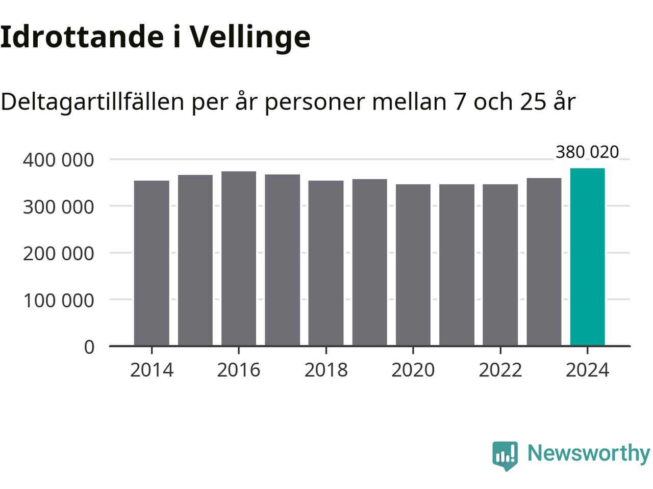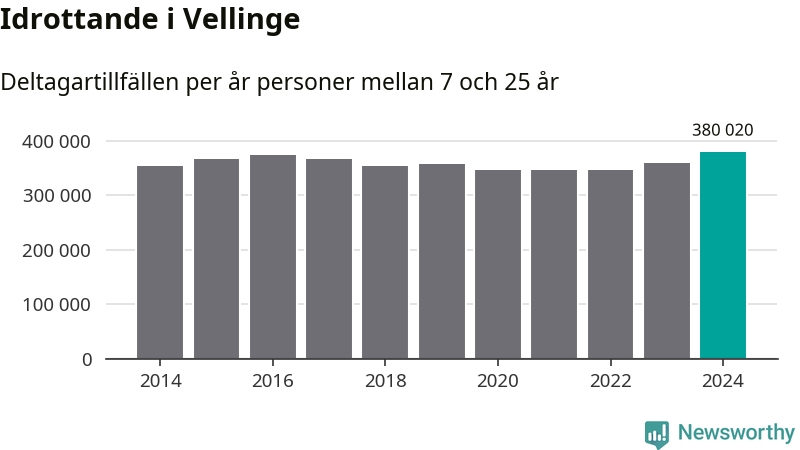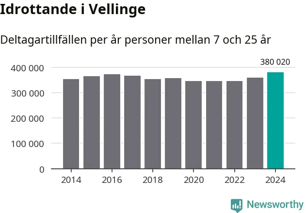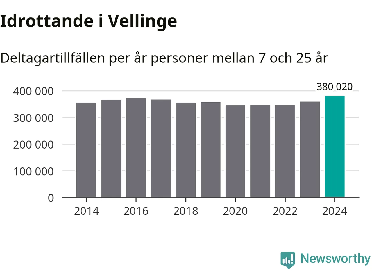 För andra året i rad ökade aktiviteten inom ungdomsidrotten i Vellinge under 2024. Det visar nya siffror om utbetalt Lok-stöd, som delas ut till föreningar anslutna till Riksidrottsförbundet specialidrottsförbund. Stödet riktar sig till föreningar som bedriver verksamhet för deltagare i åldern 7-25 år. Under året rapporterade föreningarna i Vellinge runt 380 000 deltagartillfällen, vilket är en ökning med sex procent jämfört med 2023, och den högsta siffran i kommunen sedan åtminstone 2014. I riket som helhet ökade antalet deltagartillfällen med fem procent under 2024.
