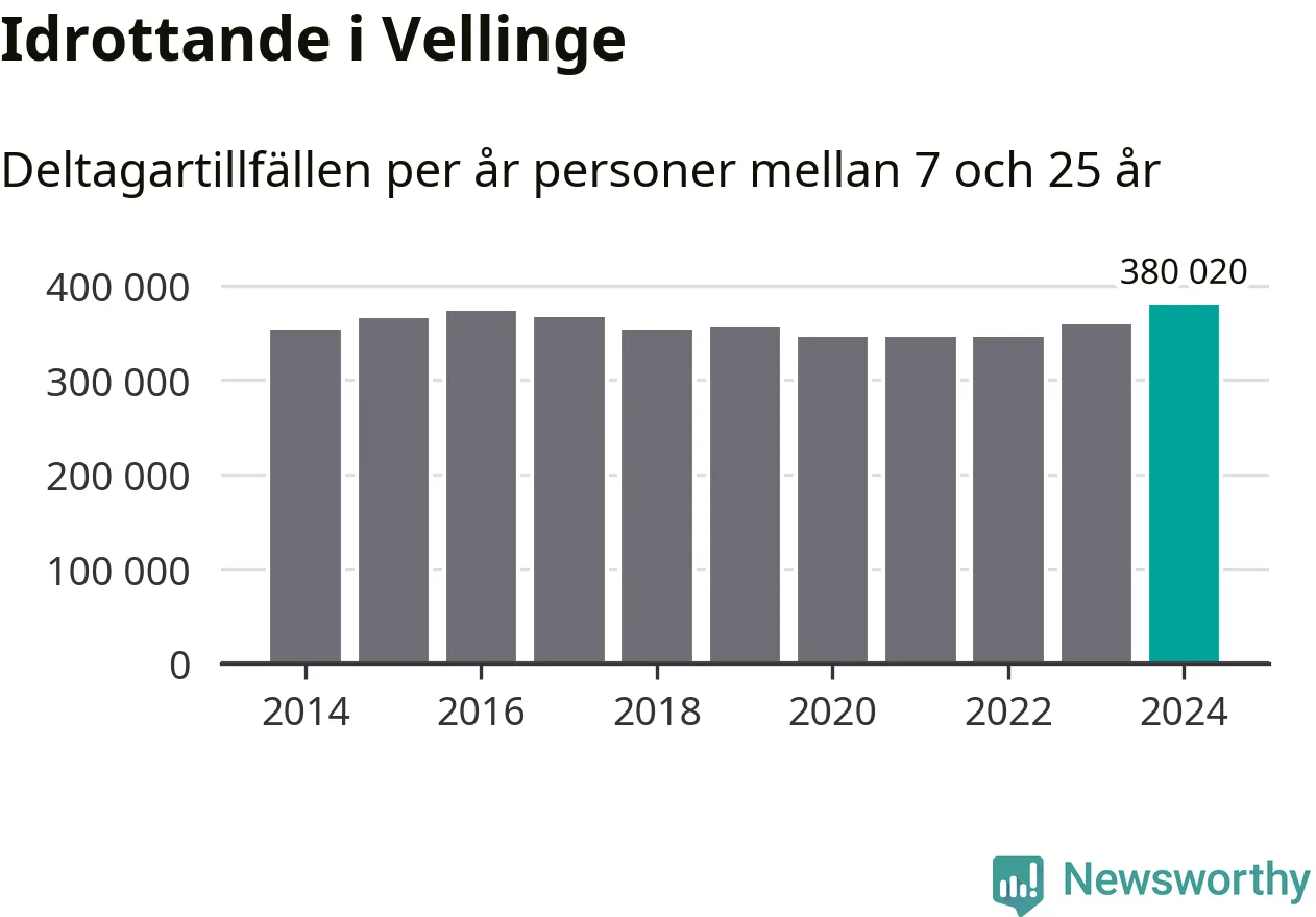 De 380 000 deltagartillfällen innebär att varje invånare i Vellinge mellan 7 och 25 år i snitt deltog i 45 träningar, matcher eller turneringar under 2024. Det är den tredje högsta siffran i landet och den högsta i Skåne. Flest deltagartillfällen per invånare i Skåne hade Lomma kommun med 46 deltagartillfällen per invånare. I andra änden av listan finns Perstorps kommun, 12 deltagartillfällen per invånare. Värt att nämna är att deltagartillfällena räknas i den kommun föreningen finns, det kan alltså vara ungdomar från en annan kommun som deltar.