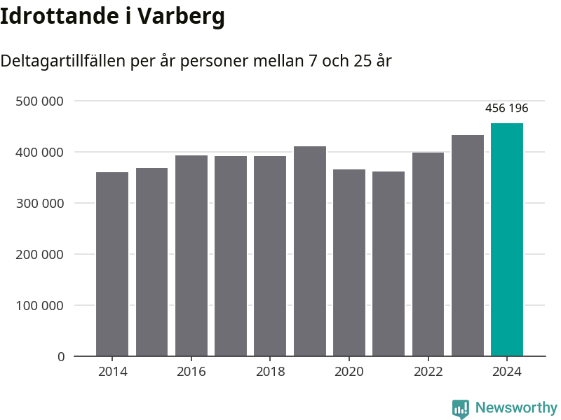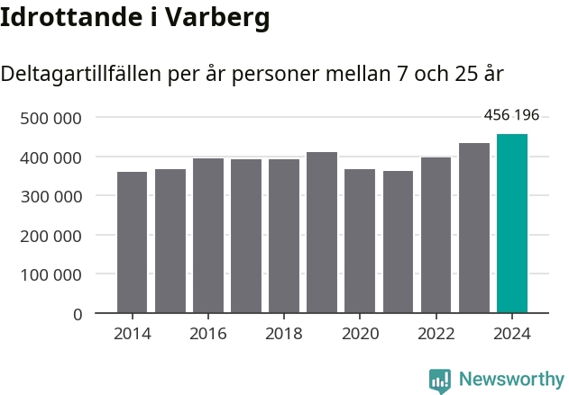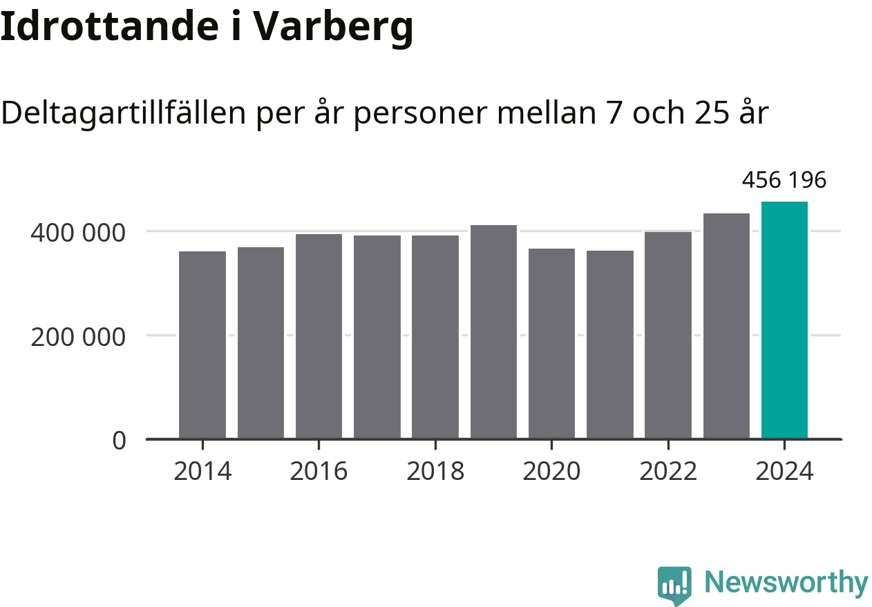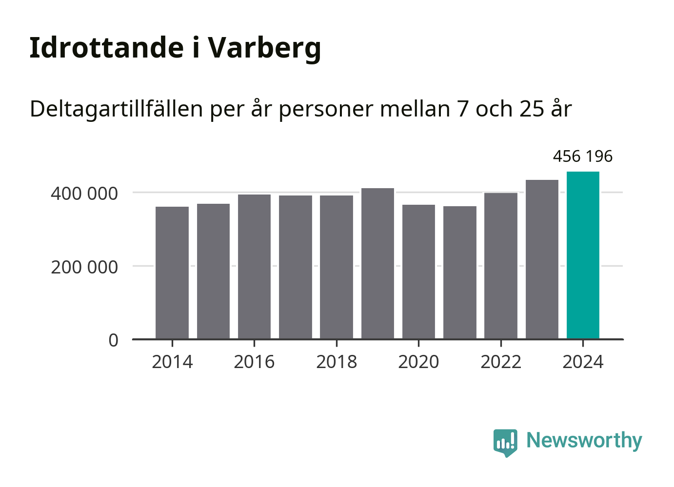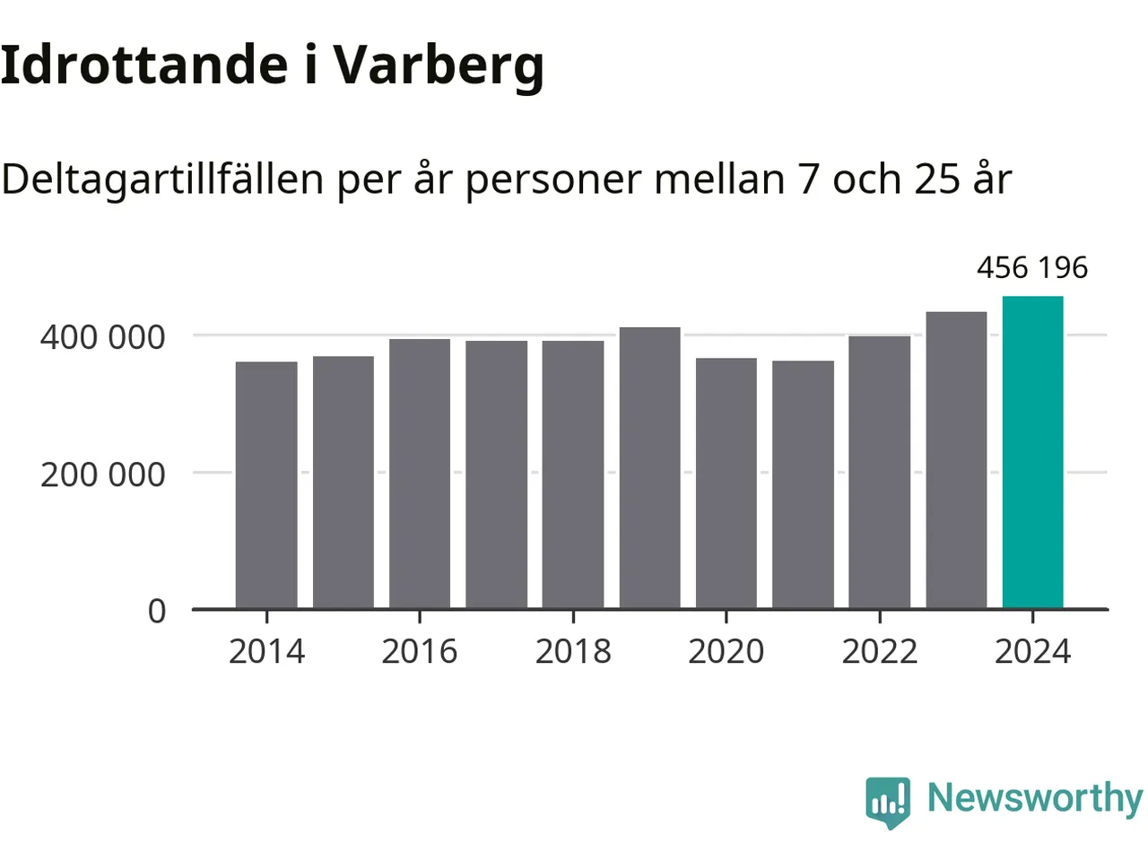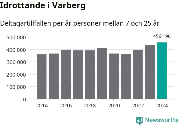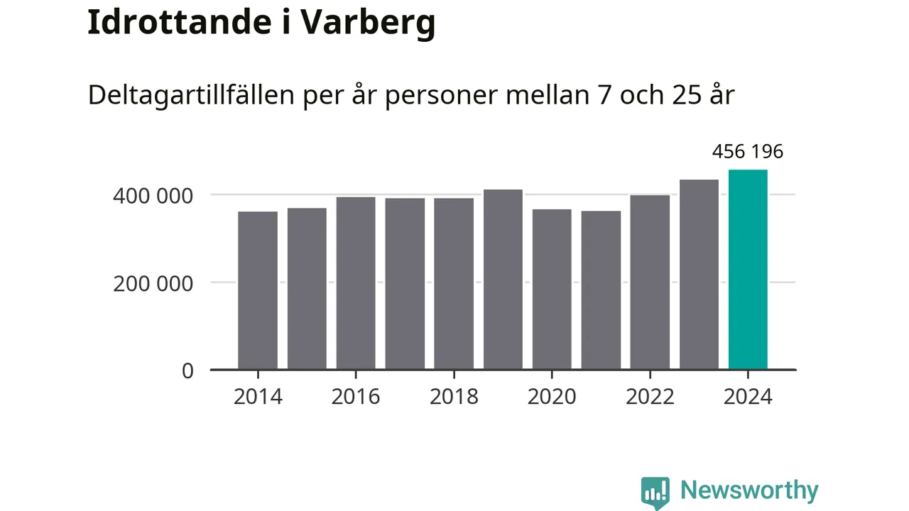 För tredje året i rad ökade aktiviteten inom ungdomsidrotten i Varberg under 2024. Det visar nya siffror om utbetalt Lok-stöd, som delas ut till föreningar anslutna till Riksidrottsförbundet specialidrottsförbund. Stödet riktar sig till föreningar som bedriver verksamhet för deltagare i åldern 7-25 år. Under året rapporterade föreningarna i Varberg runt 456 000 deltagartillfällen, vilket är en ökning med fem procent jämfört med 2023, och den högsta siffran i kommunen sedan åtminstone 2014. I riket som helhet ökade antalet deltagartillfällen med fem procent under 2024.