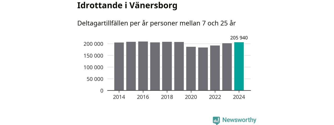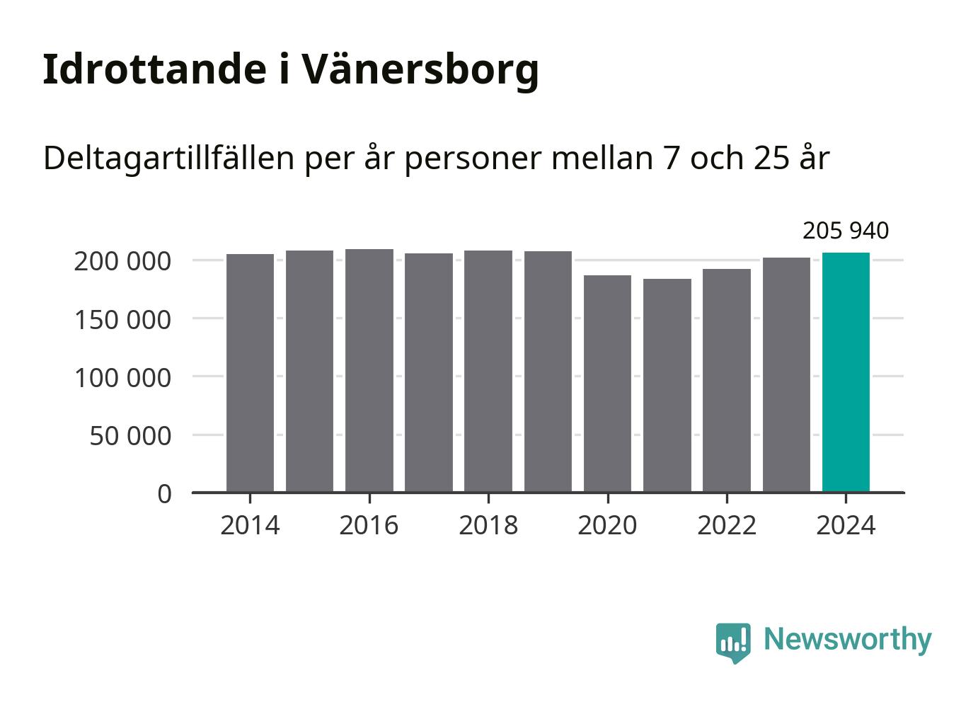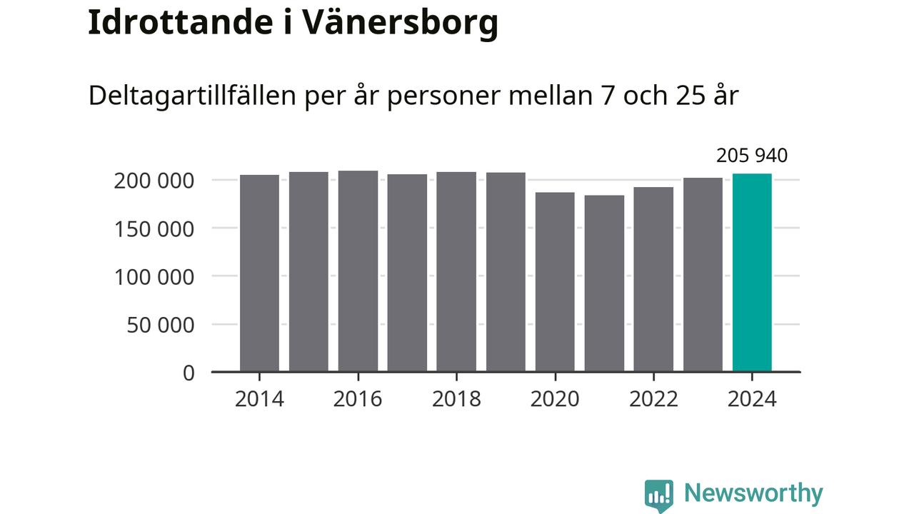 För tredje året i rad ökade aktiviteten inom ungdomsidrotten i Vänersborg under 2024. Det visar nya siffror om utbetalt Lok-stöd, som delas ut till föreningar anslutna till Riksidrottsförbundet specialidrottsförbund. Stödet riktar sig till föreningar som bedriver verksamhet för deltagare i åldern 7-25 år. Under året rapporterade föreningarna i Vänersborg runt 206 000 deltagartillfällen, vilket är en ökning med två procent jämfört med 2023. I riket som helhet ökade antalet deltagartillfällen med fem procent under 2024.