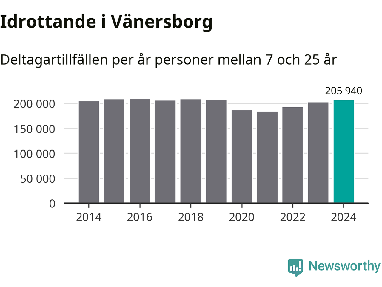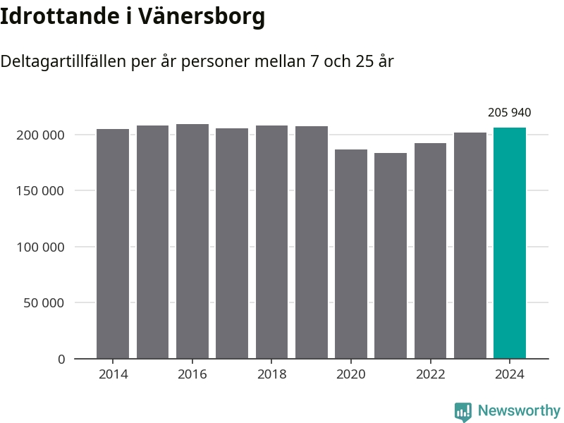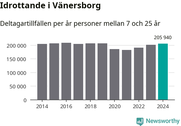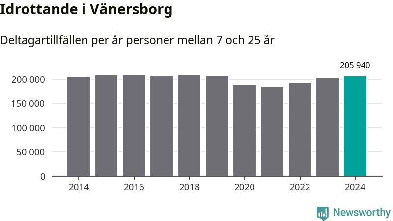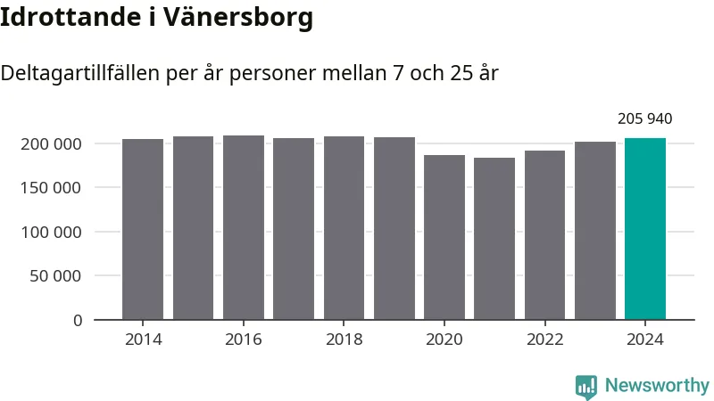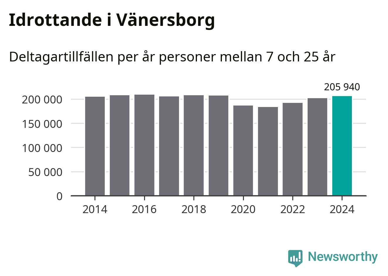 För tredje året i rad ökade aktiviteten inom ungdomsidrotten i Vänersborg under 2024. Det visar nya siffror om utbetalt Lok-stöd, som delas ut till föreningar anslutna till Riksidrottsförbundet specialidrottsförbund. Stödet riktar sig till föreningar som bedriver verksamhet för deltagare i åldern 7-25 år. Under året rapporterade föreningarna i Vänersborg runt 206 000 deltagartillfällen, vilket är en ökning med två procent jämfört med 2023. I riket som helhet ökade antalet deltagartillfällen med fem procent under 2024.