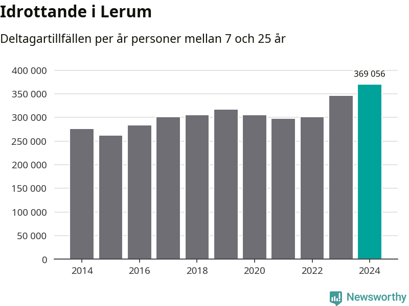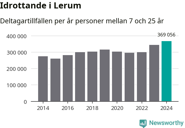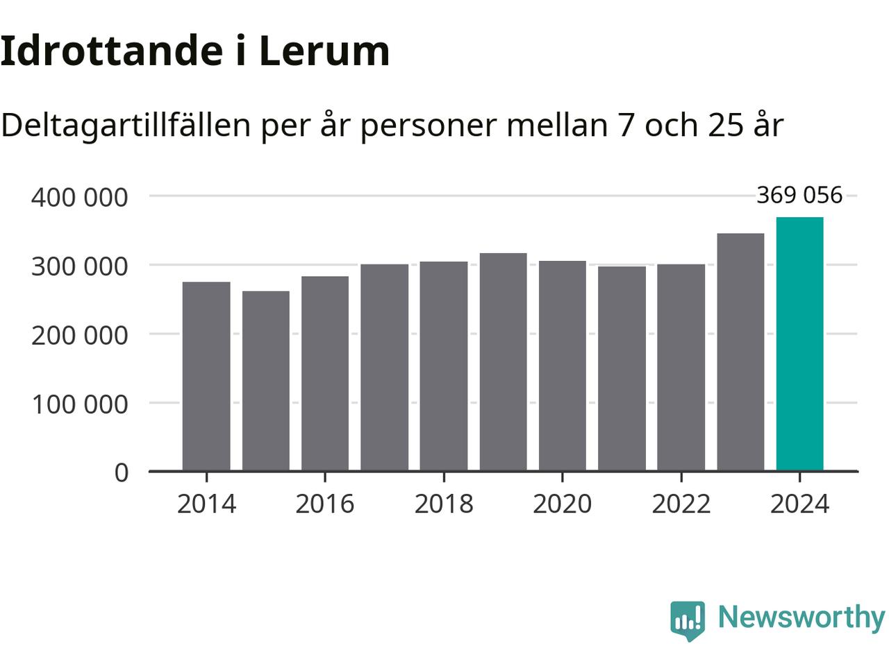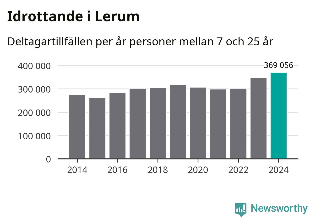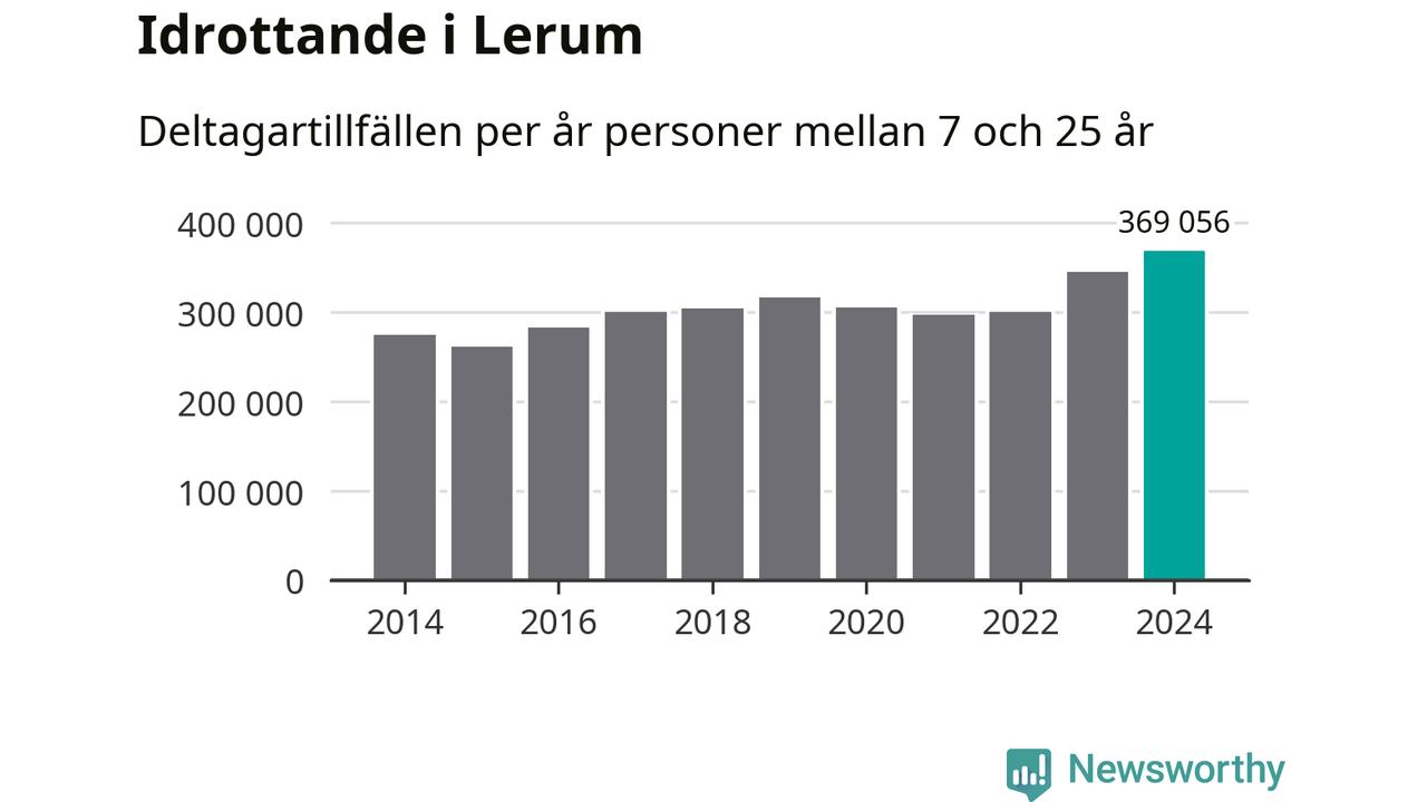 För andra året i rad ökade aktiviteten inom ungdomsidrotten i Lerum under 2024. Det visar nya siffror om utbetalt Lok-stöd, som delas ut till föreningar anslutna till Riksidrottsförbundet specialidrottsförbund. Stödet riktar sig till föreningar som bedriver verksamhet för deltagare i åldern 7-25 år. Under året rapporterade föreningarna i Lerum runt 369 000 deltagartillfällen, vilket är en ökning med sju procent jämfört med 2023, och den högsta siffran i kommunen sedan åtminstone 2014. I riket som helhet ökade antalet deltagartillfällen med fem procent under 2024.