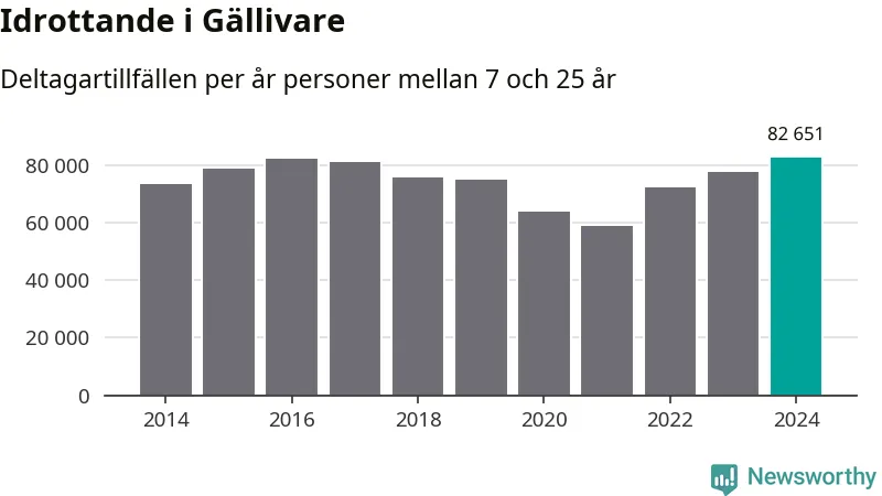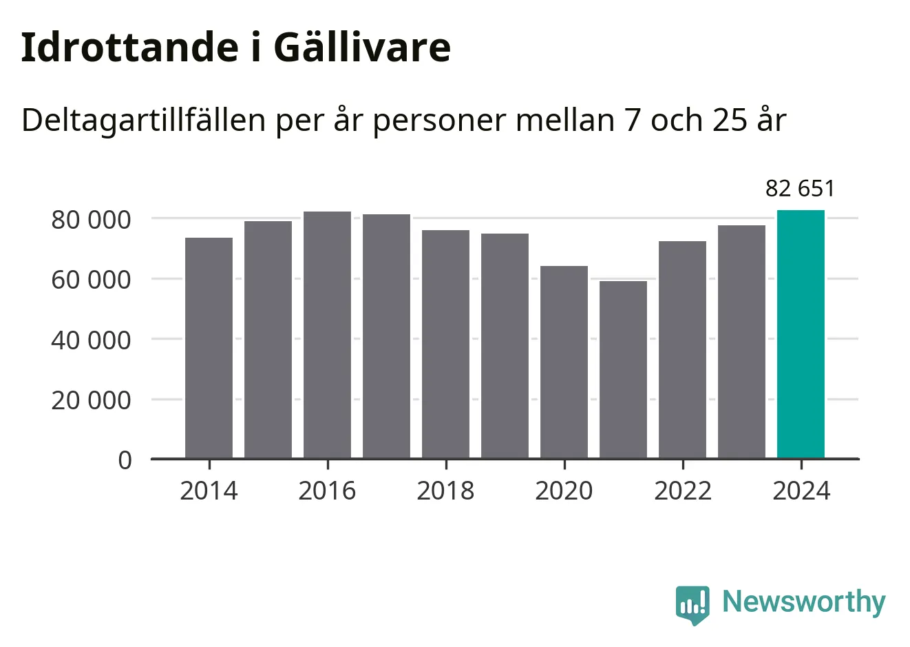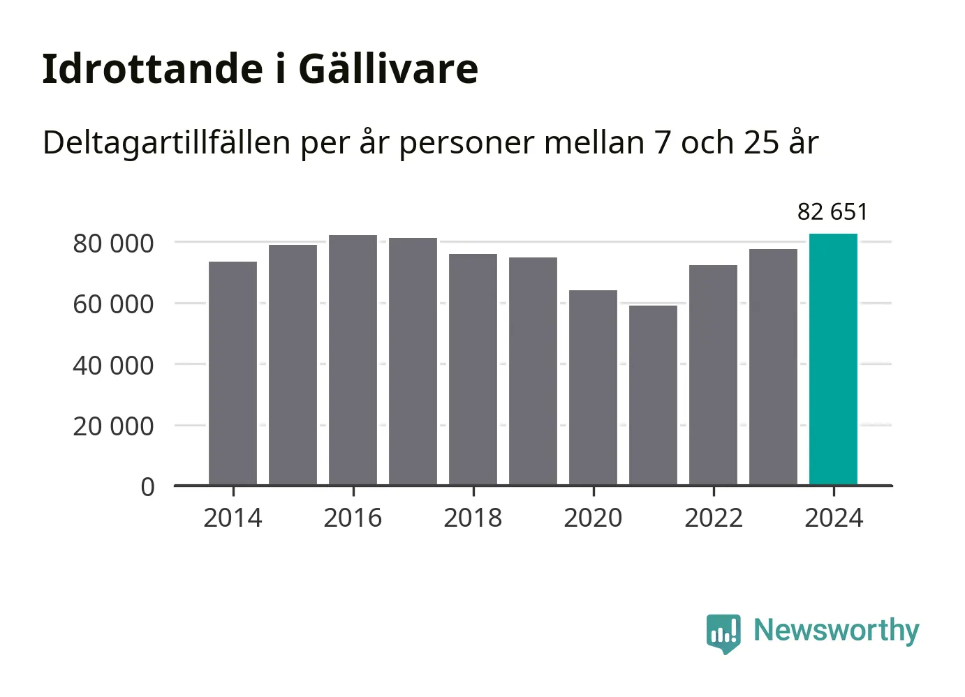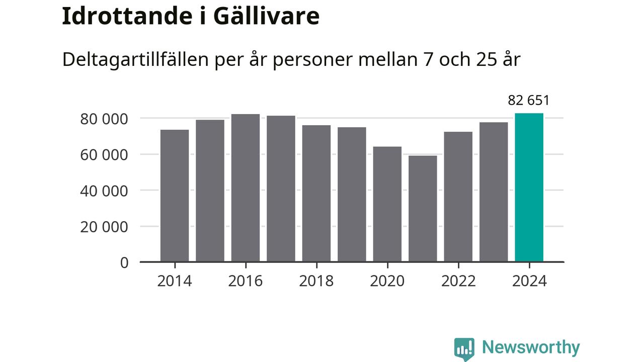 För tredje året i rad ökade aktiviteten inom ungdomsidrotten i Gällivare under 2024. Det visar nya siffror om utbetalt Lok-stöd, som delas ut till föreningar anslutna till Riksidrottsförbundet specialidrottsförbund. Stödet riktar sig till föreningar som bedriver verksamhet för deltagare i åldern 7-25 år. Under året rapporterade föreningarna i Gällivare runt 83 000 deltagartillfällen, vilket är en ökning med sex procent jämfört med 2023, och den högsta siffran i kommunen sedan åtminstone 2014. I riket som helhet ökade antalet deltagartillfällen med fem procent under 2024.