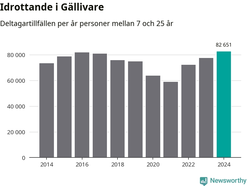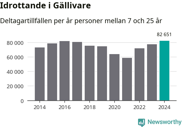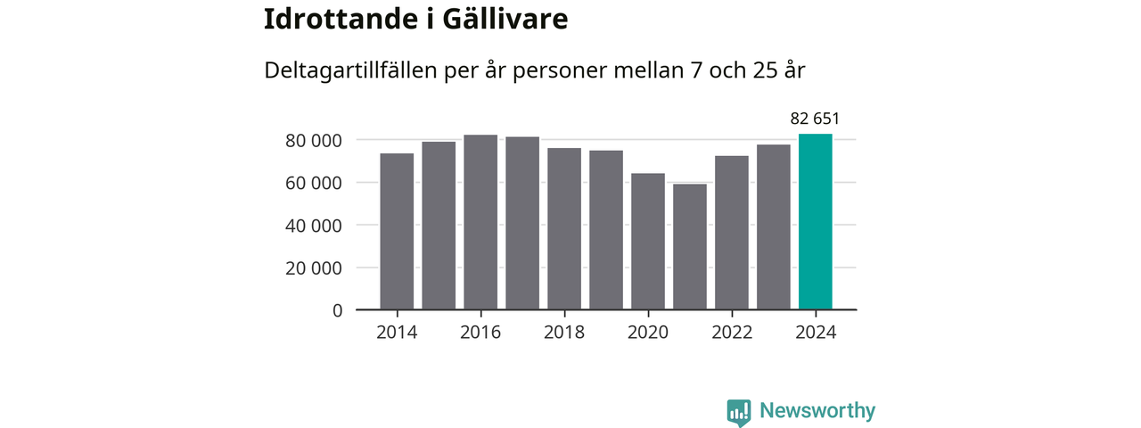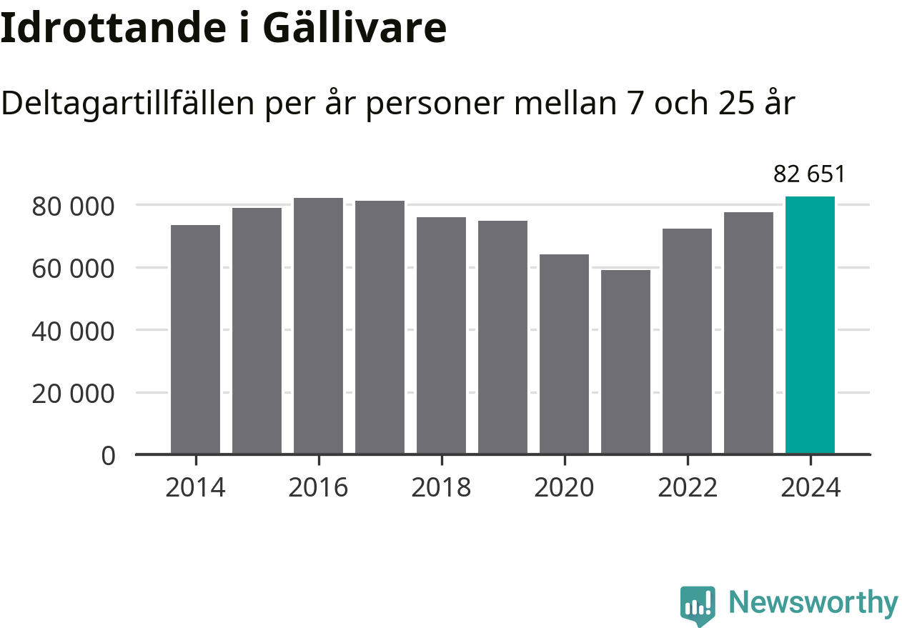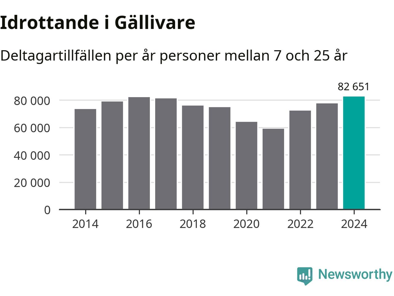 För tredje året i rad ökade aktiviteten inom ungdomsidrotten i Gällivare under 2024. Det visar nya siffror om utbetalt Lok-stöd, som delas ut till föreningar anslutna till Riksidrottsförbundet specialidrottsförbund. Stödet riktar sig till föreningar som bedriver verksamhet för deltagare i åldern 7-25 år. Under året rapporterade föreningarna i Gällivare runt 83 000 deltagartillfällen, vilket är en ökning med sex procent jämfört med 2023, och den högsta siffran i kommunen sedan åtminstone 2014. I riket som helhet ökade antalet deltagartillfällen med fem procent under 2024.