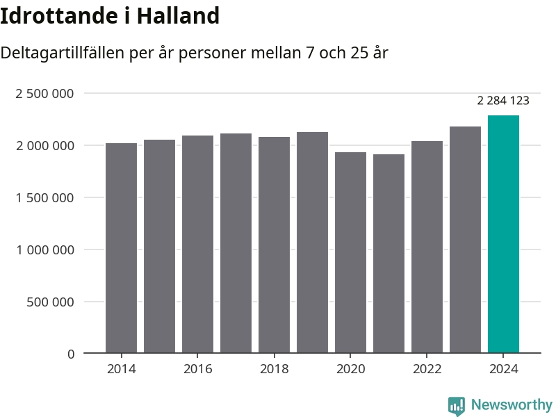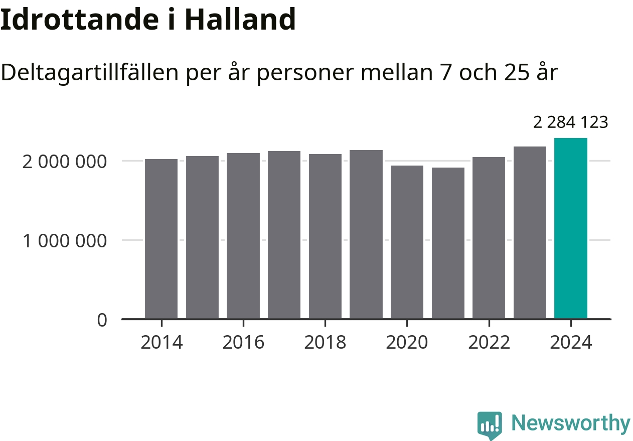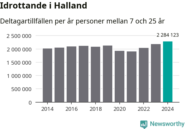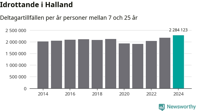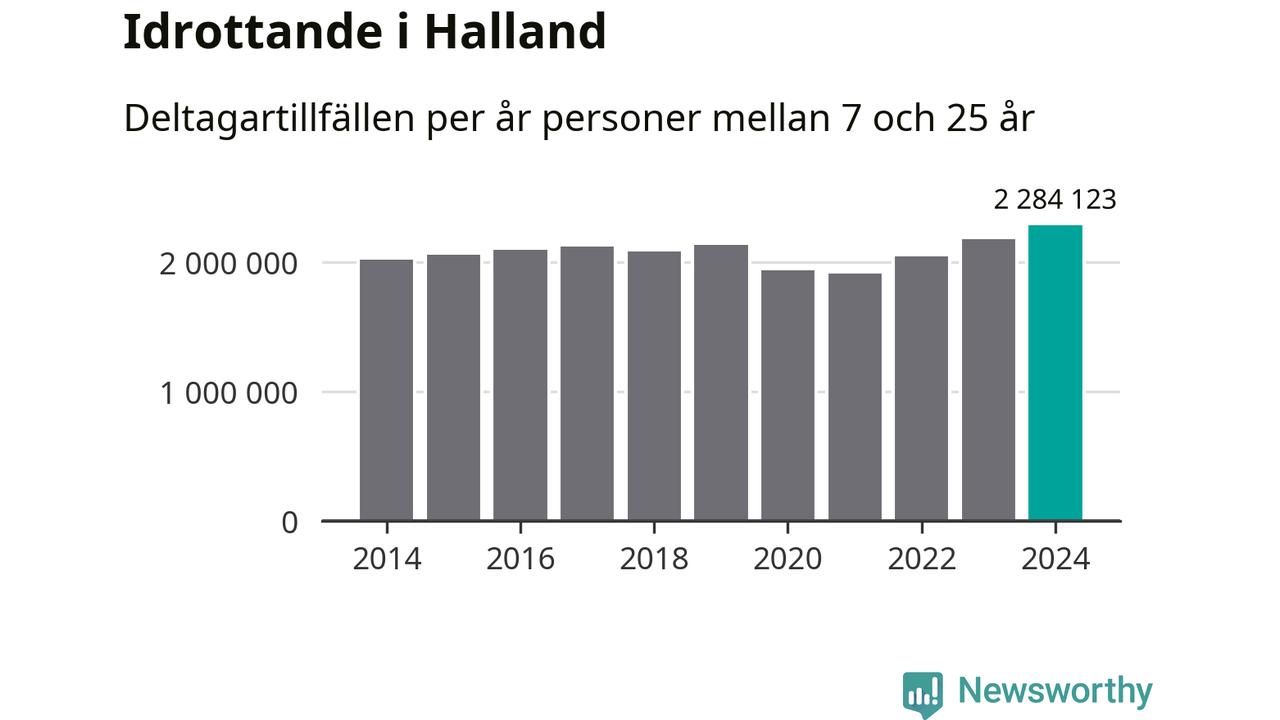 För tredje året i rad ökade aktiviteten inom ungdomsidrotten i Halland under 2024. Det visar nya siffror om utbetalt Lok-stöd, som delas ut till föreningar anslutna till Riksidrottsförbundet specialidrottsförbund. Stödet riktar sig till föreningar som bedriver verksamhet för deltagare i åldern 7-25 år. Under året rapporterade föreningarna i Halland runt 2 284 000 deltagartillfällen, vilket är en ökning med fem procent jämfört med 2023, och den högsta siffran i länet sedan åtminstone 2014. I riket som helhet ökade antalet deltagartillfällen med fem procent under 2024.