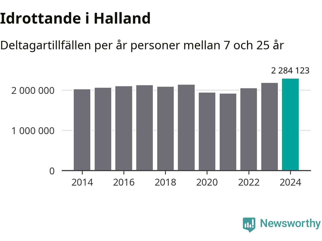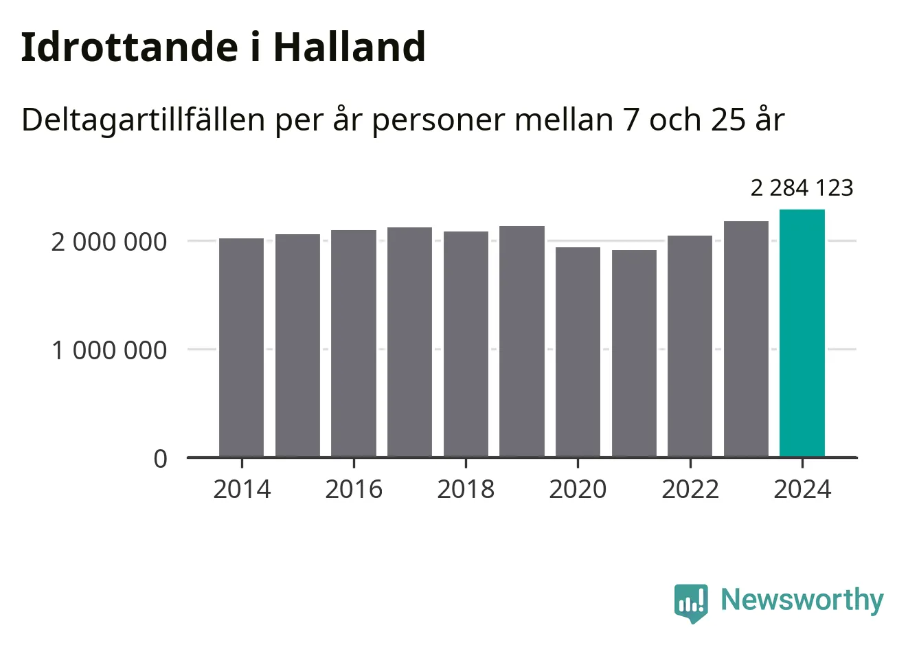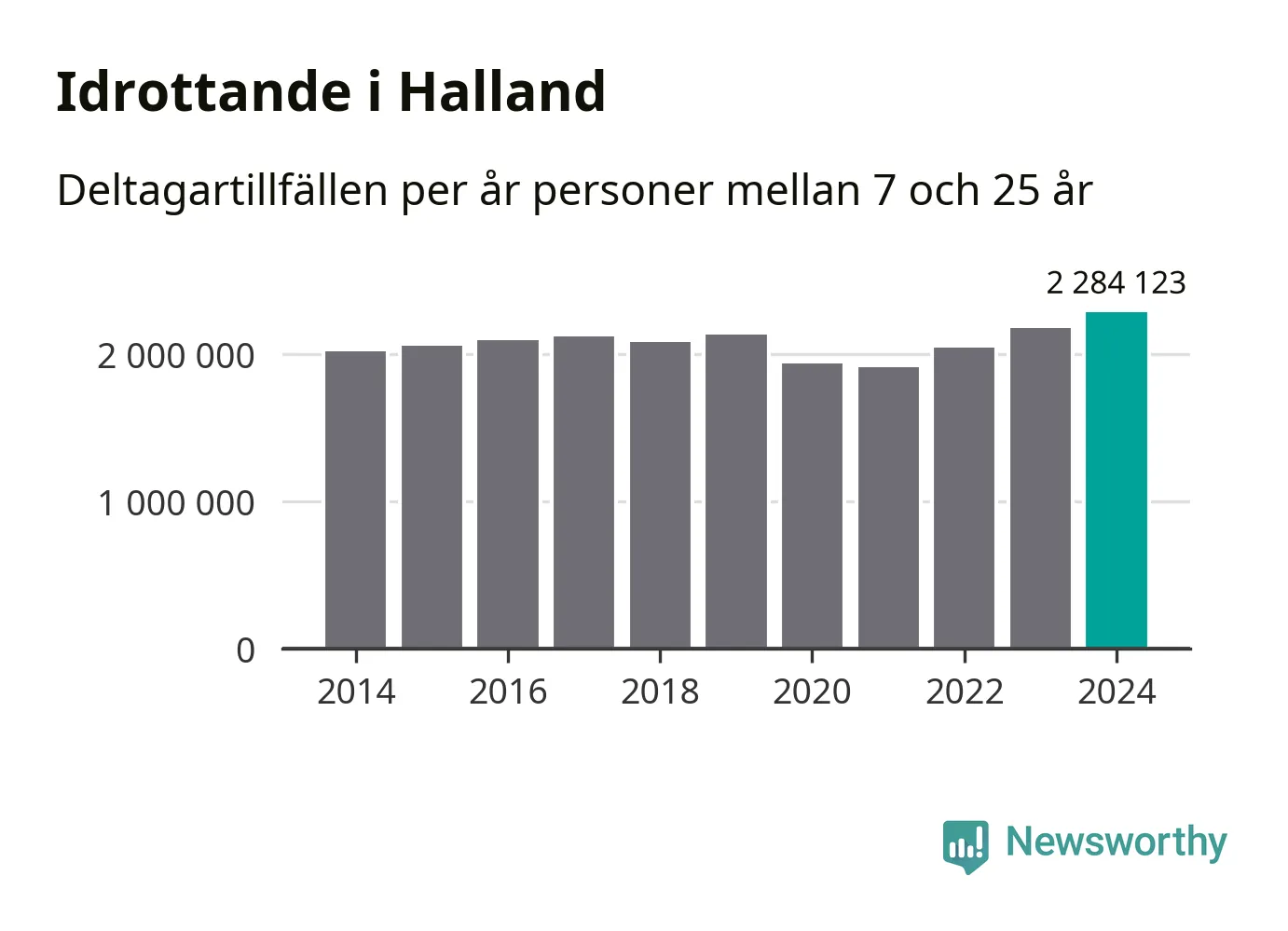 För tredje året i rad ökade aktiviteten inom ungdomsidrotten i Halland under 2024. Det visar nya siffror om utbetalt Lok-stöd, som delas ut till föreningar anslutna till Riksidrottsförbundet specialidrottsförbund. Stödet riktar sig till föreningar som bedriver verksamhet för deltagare i åldern 7-25 år. Under året rapporterade föreningarna i Halland runt 2 284 000 deltagartillfällen, vilket är en ökning med fem procent jämfört med 2023, och den högsta siffran i länet sedan åtminstone 2014. I riket som helhet ökade antalet deltagartillfällen med fem procent under 2024.