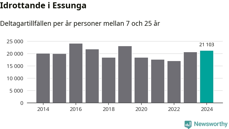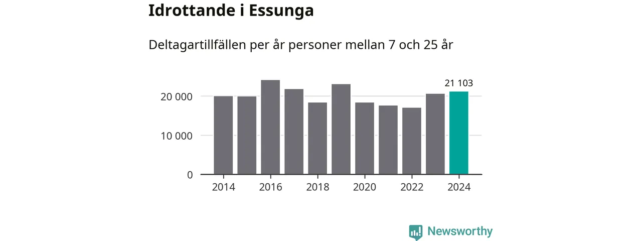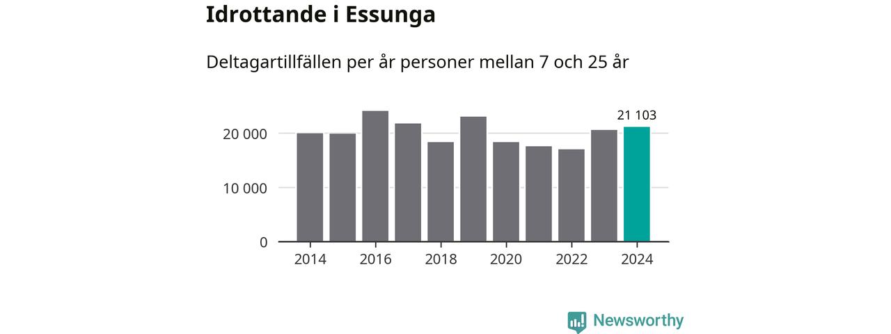 De 21 000 deltagartillfällen innebär att varje invånare i Essunga mellan 7 och 25 år i snitt deltog i 19 träningar, matcher eller turneringar under 2024. Flest deltagartillfällen per invånare i Västra Götaland hade Partille kommun med 39 deltagartillfällen per invånare. I andra änden av listan finns Svenljunga kommun, 11 deltagartillfällen per invånare. Värt att nämna är att deltagartillfällena räknas i den kommun föreningen finns, det kan alltså vara ungdomar från en annan kommun som deltar.