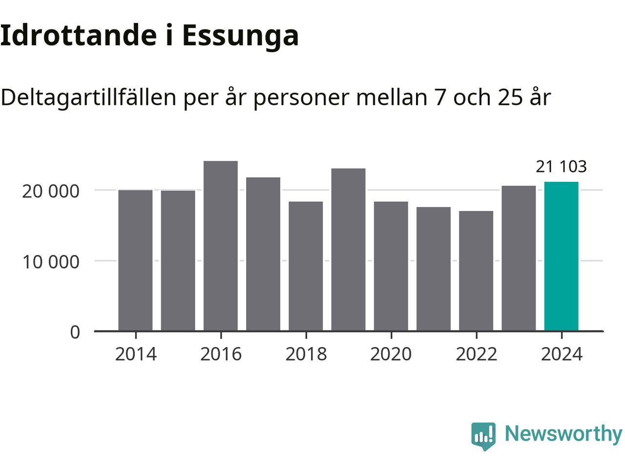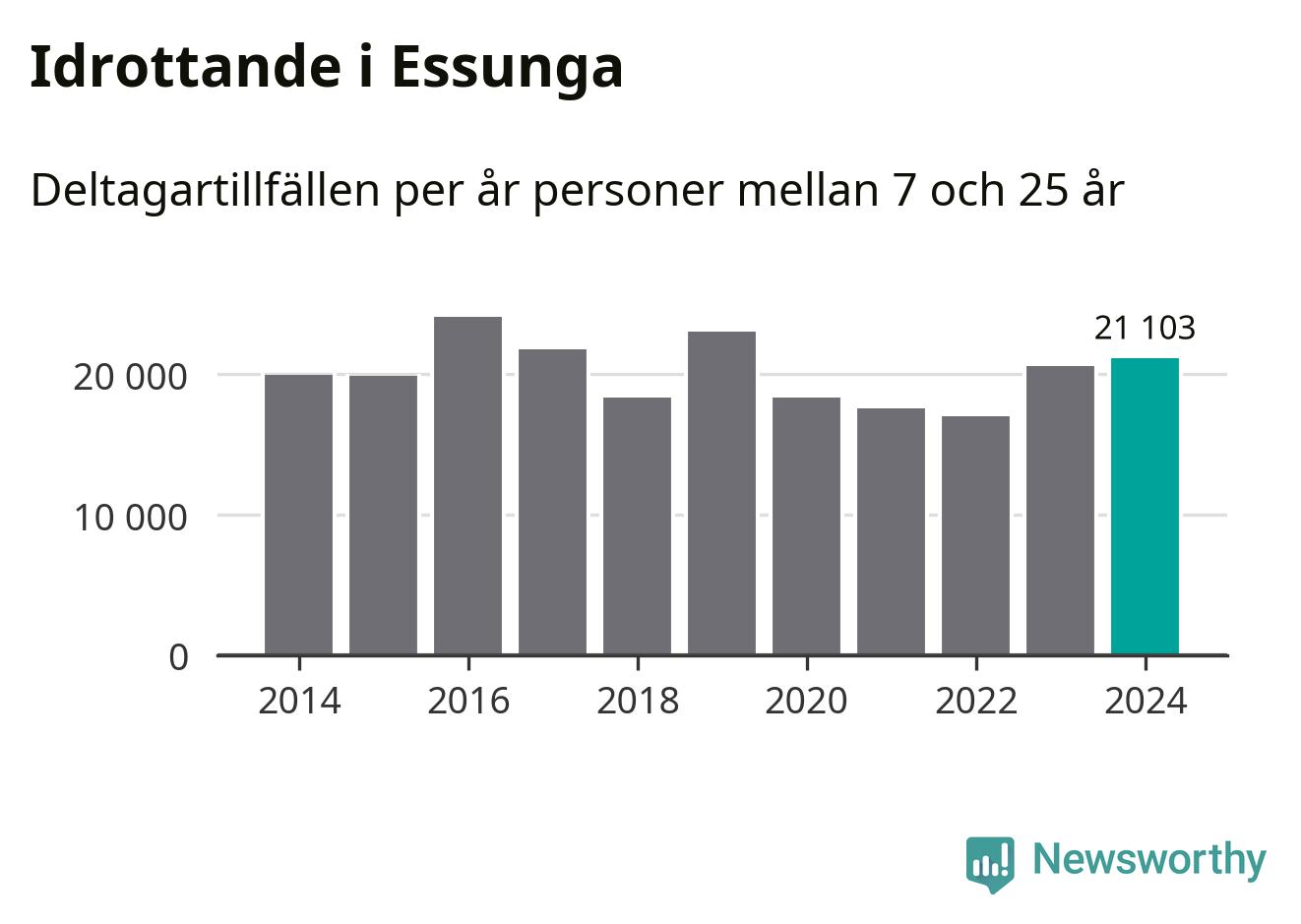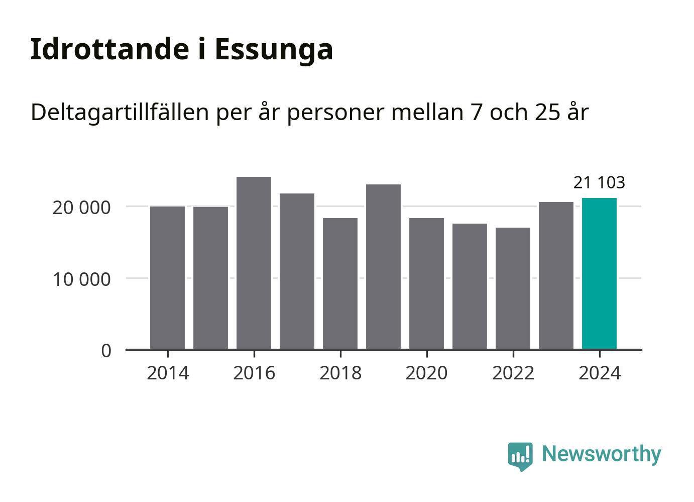 För andra året i rad ökade aktiviteten inom ungdomsidrotten i Essunga under 2024. Det visar nya siffror om utbetalt Lok-stöd, som delas ut till föreningar anslutna till Riksidrottsförbundet specialidrottsförbund. Stödet riktar sig till föreningar som bedriver verksamhet för deltagare i åldern 7-25 år. Under året rapporterade föreningarna i Essunga runt 21 000 deltagartillfällen, vilket är en ökning med tre procent jämfört med 2023. I riket som helhet ökade antalet deltagartillfällen med fem procent under 2024.