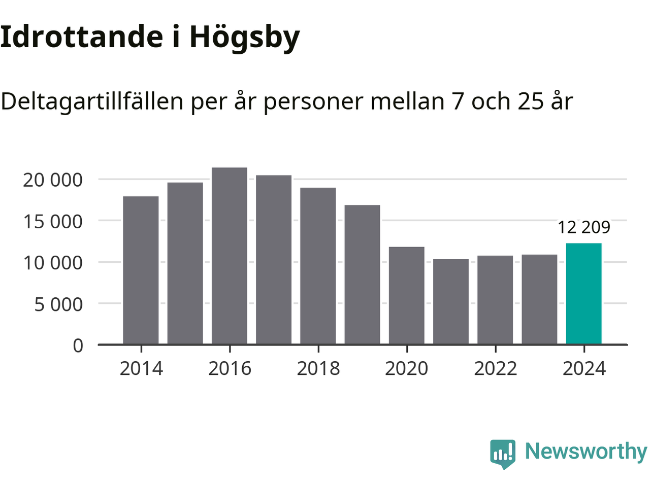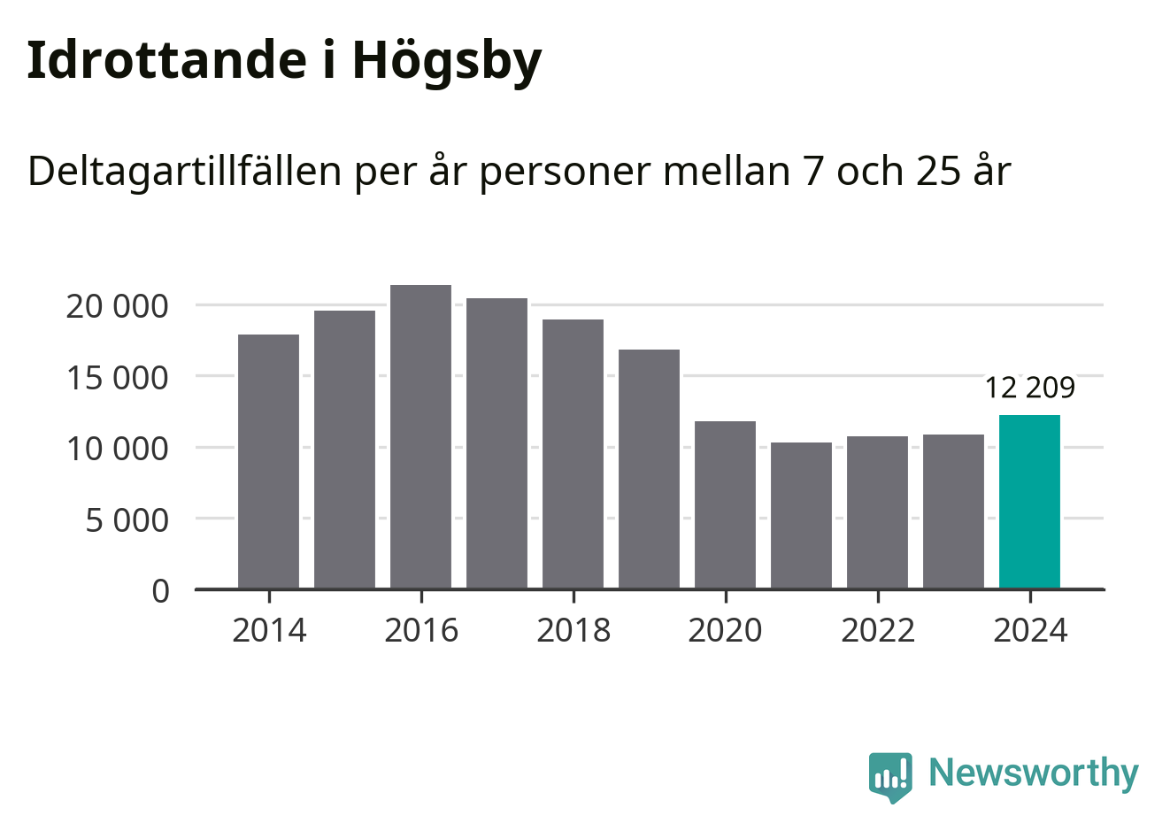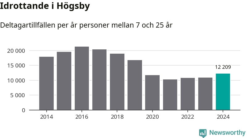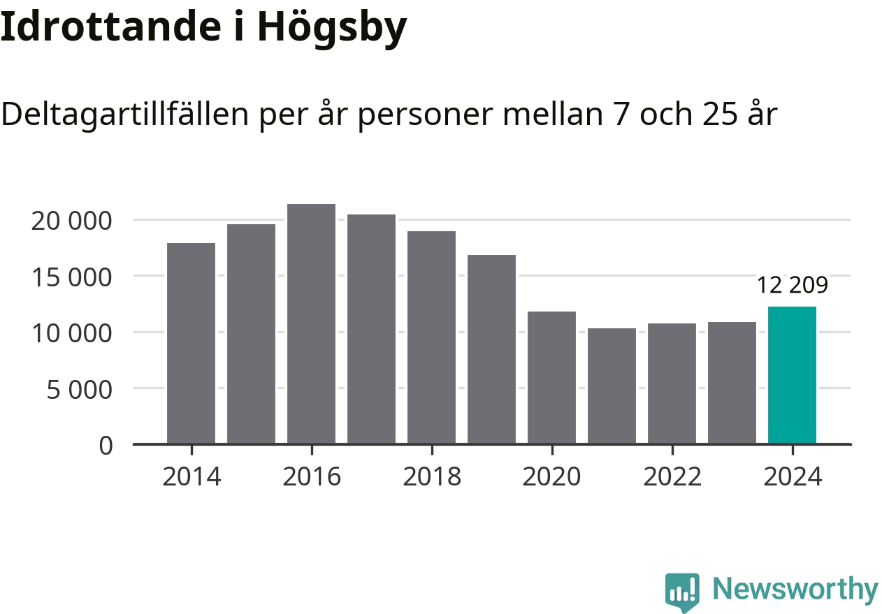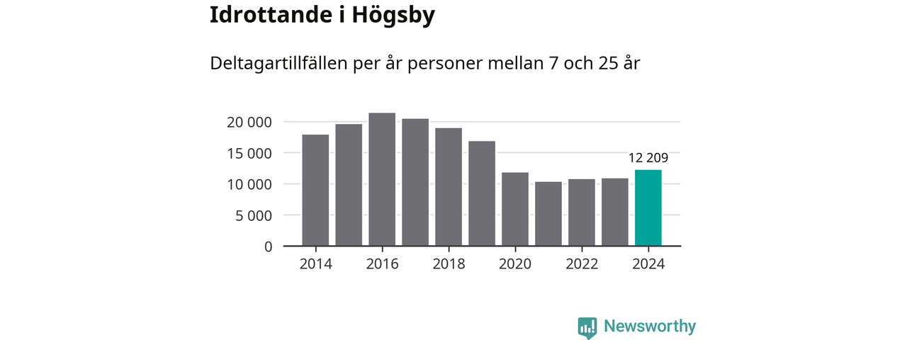 De drygt 12 000 deltagartillfällen innebär att varje invånare i Högsby mellan 7 och 25 år i snitt deltog i 12 träningar, matcher eller turneringar under 2024. Det är den lägsta siffran i Kalmar län. Flest deltagartillfällen per invånare i länet hade Mörbylånga kommun med 32 deltagartillfällen per invånare. Värt att nämna är att deltagartillfällena räknas i den kommun föreningen finns, det kan alltså vara ungdomar från en annan kommun som deltar.