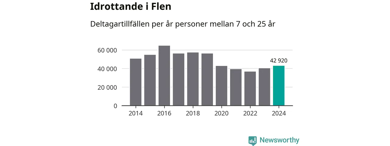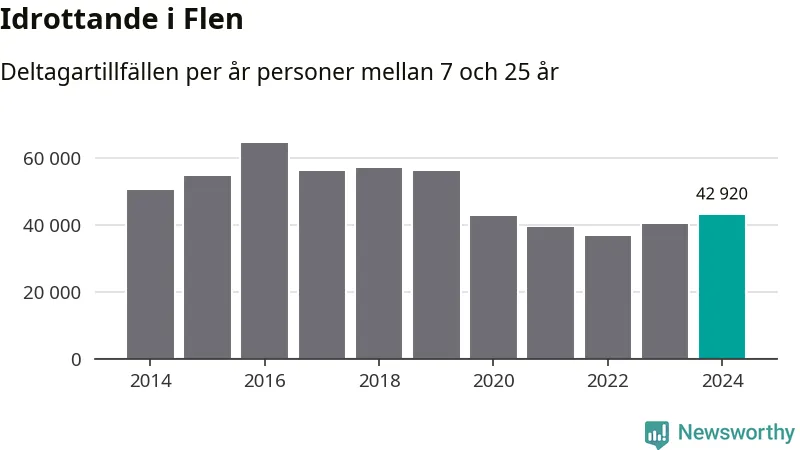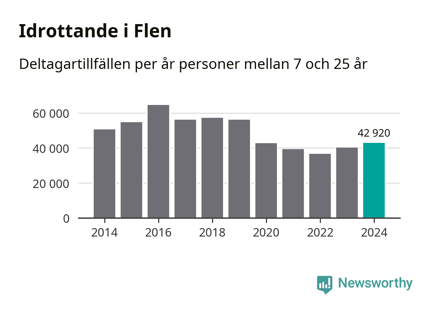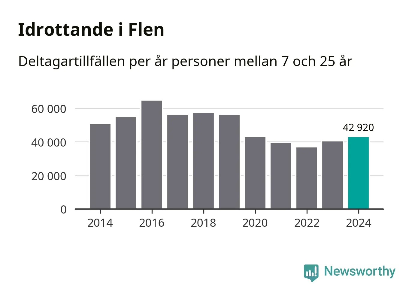 För andra året i rad ökade aktiviteten inom ungdomsidrotten i Flen under 2024. Det visar nya siffror om utbetalt Lok-stöd, som delas ut till föreningar anslutna till Riksidrottsförbundet specialidrottsförbund. Stödet riktar sig till föreningar som bedriver verksamhet för deltagare i åldern 7-25 år. Under året rapporterade föreningarna i Flen runt 43 000 deltagartillfällen, vilket är en ökning med sju procent jämfört med 2023. I riket som helhet ökade antalet deltagartillfällen med fem procent under 2024.