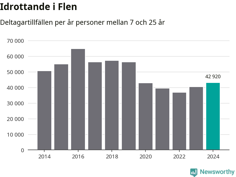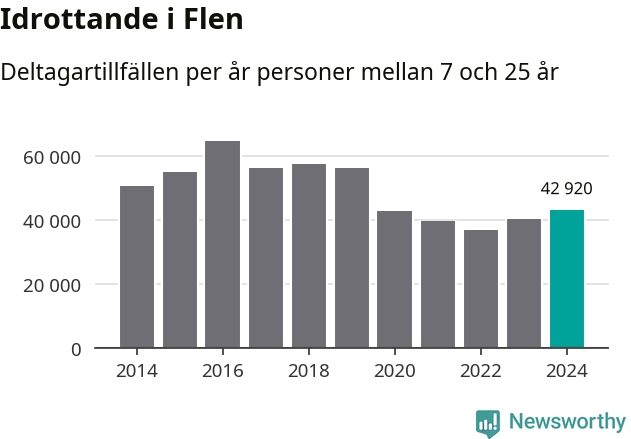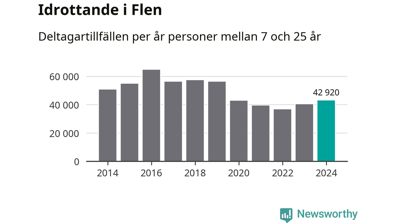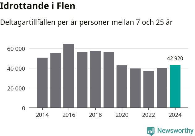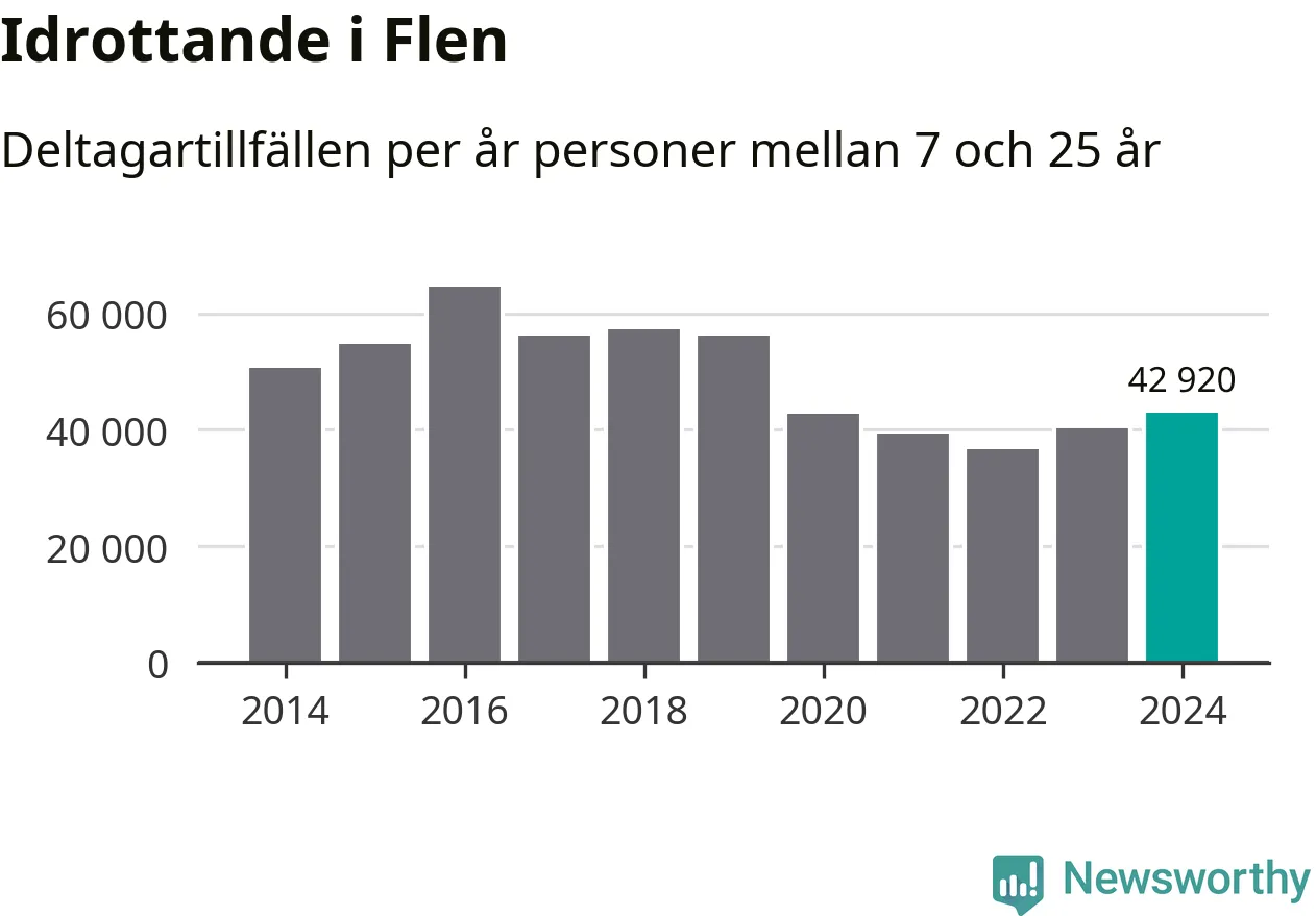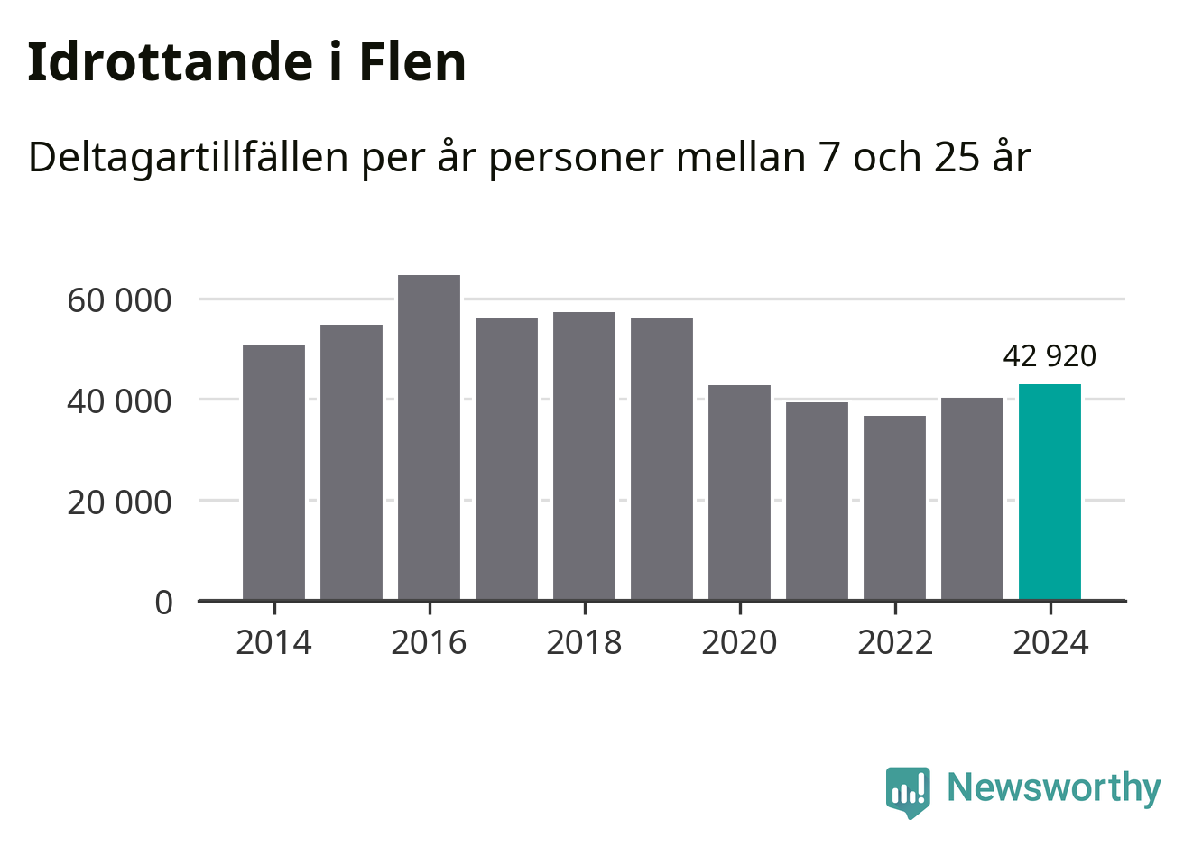 För andra året i rad ökade aktiviteten inom ungdomsidrotten i Flen under 2024. Det visar nya siffror om utbetalt Lok-stöd, som delas ut till föreningar anslutna till Riksidrottsförbundet specialidrottsförbund. Stödet riktar sig till föreningar som bedriver verksamhet för deltagare i åldern 7-25 år. Under året rapporterade föreningarna i Flen runt 43 000 deltagartillfällen, vilket är en ökning med sju procent jämfört med 2023. I riket som helhet ökade antalet deltagartillfällen med fem procent under 2024.