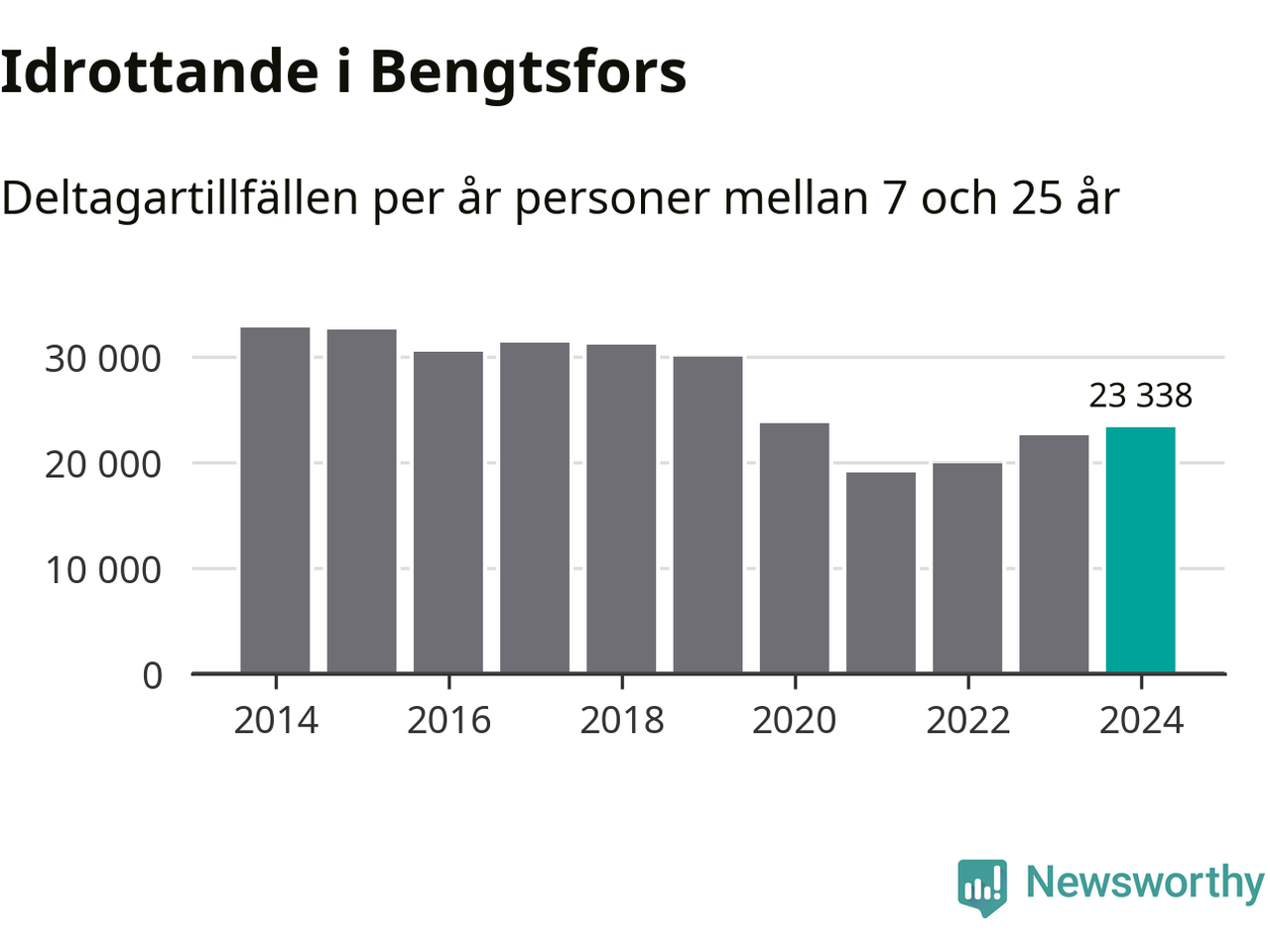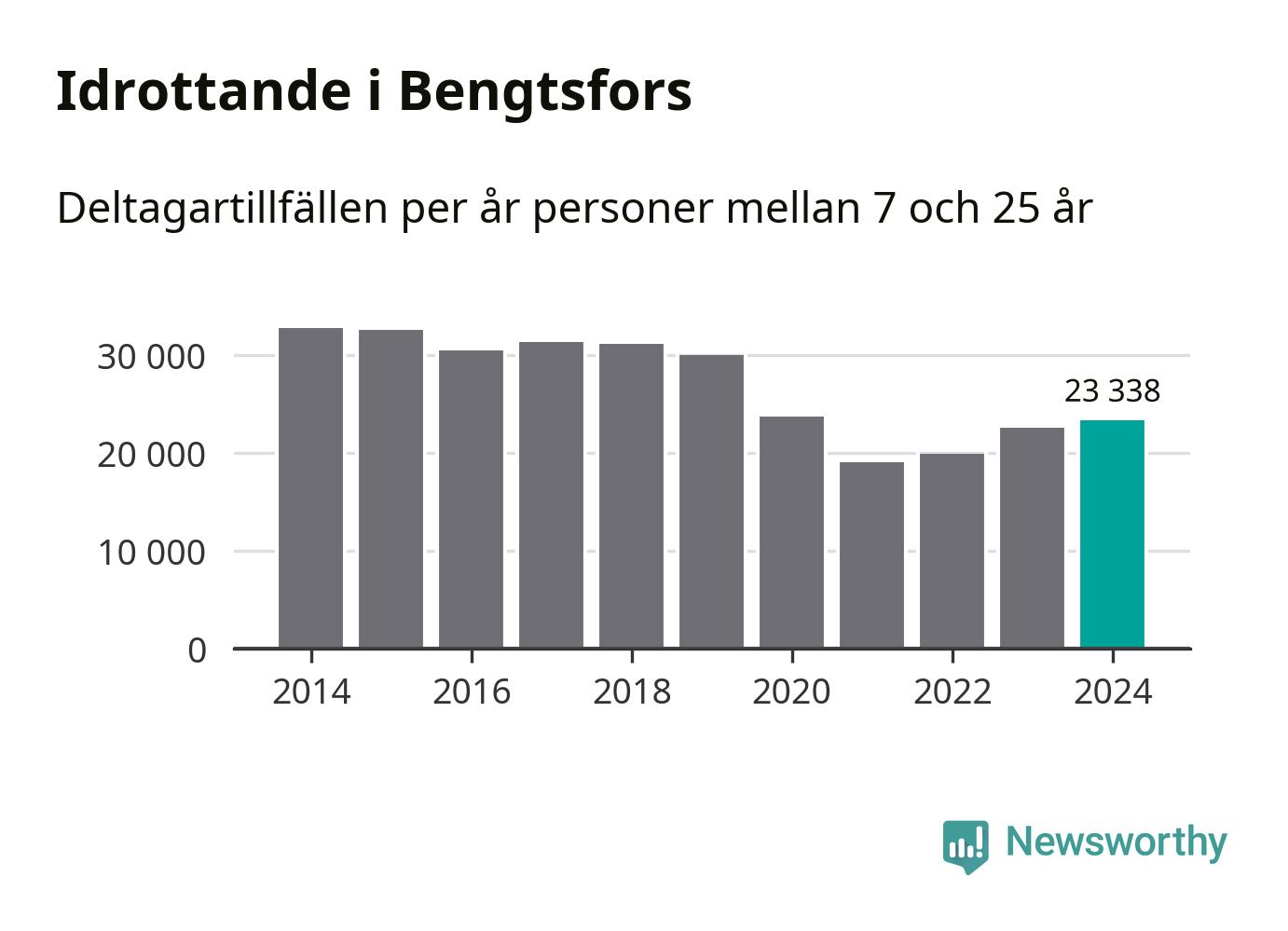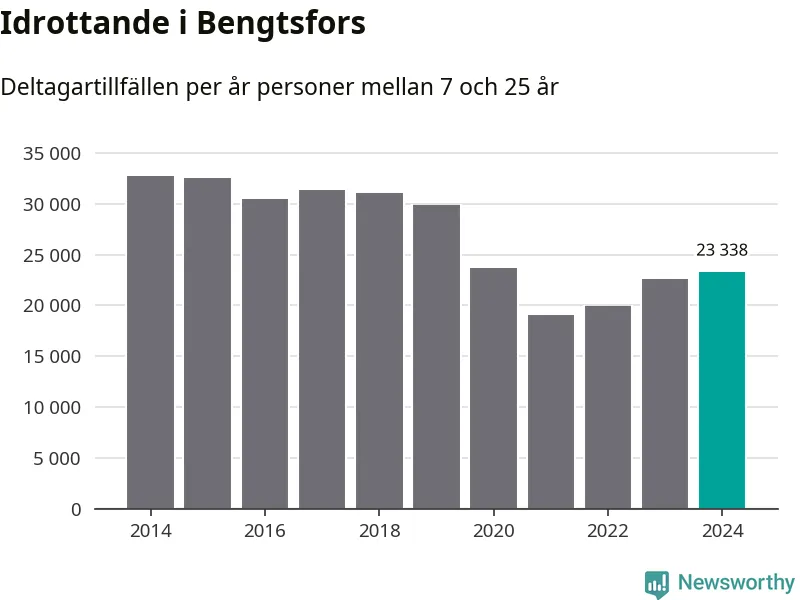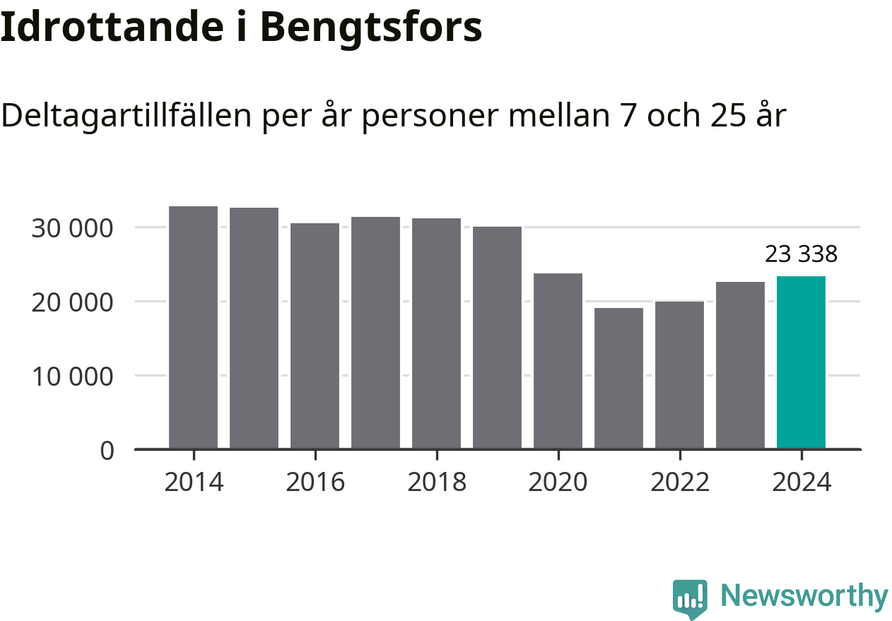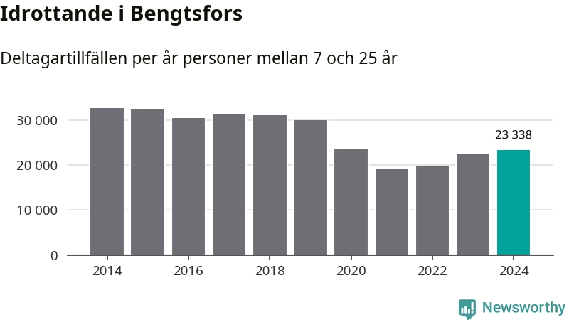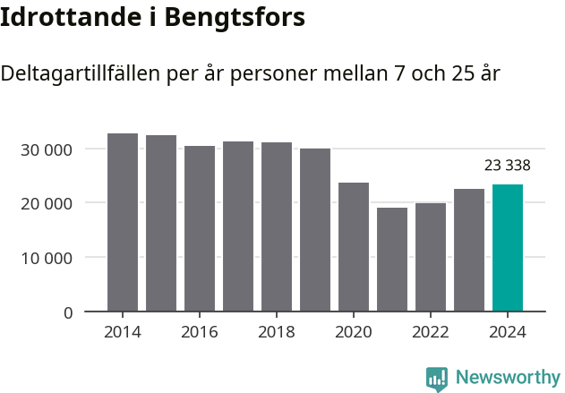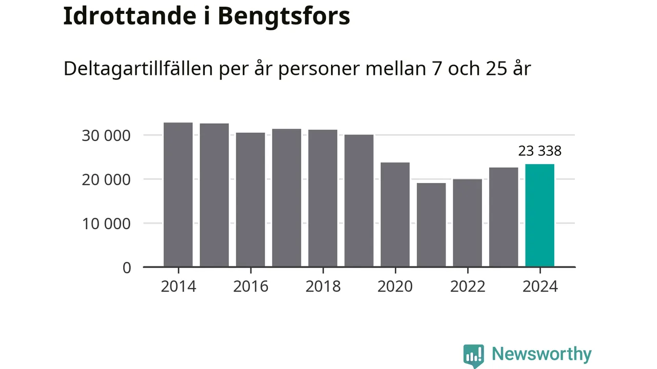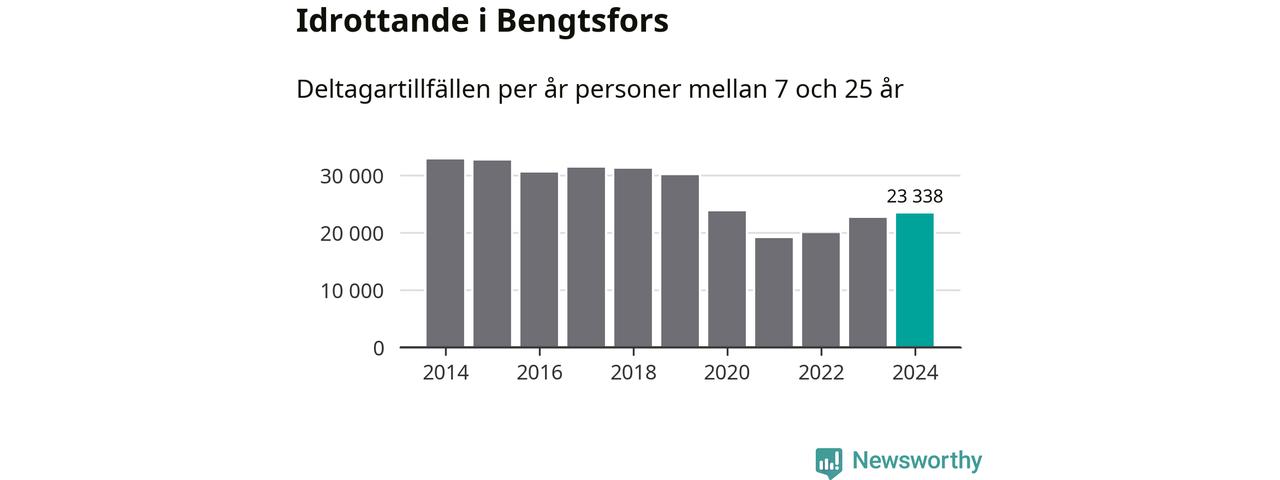 De drygt 23 000 deltagartillfällen innebär att varje invånare i Bengtsfors mellan 7 och 25 år i snitt deltog i 14 träningar, matcher eller turneringar under 2024. Det är den näst lägsta siffran i Västra Götaland. Flest deltagartillfällen per invånare i Västra Götaland hade Partille kommun med 39 deltagartillfällen per invånare. I andra änden av listan finns Svenljunga kommun, 11 deltagartillfällen per invånare. Värt att nämna är att deltagartillfällena räknas i den kommun föreningen finns, det kan alltså vara ungdomar från en annan kommun som deltar.