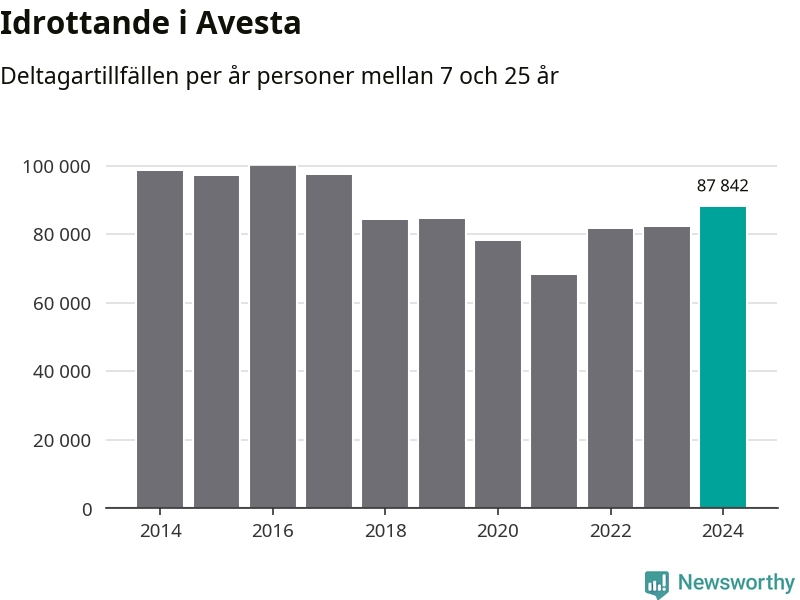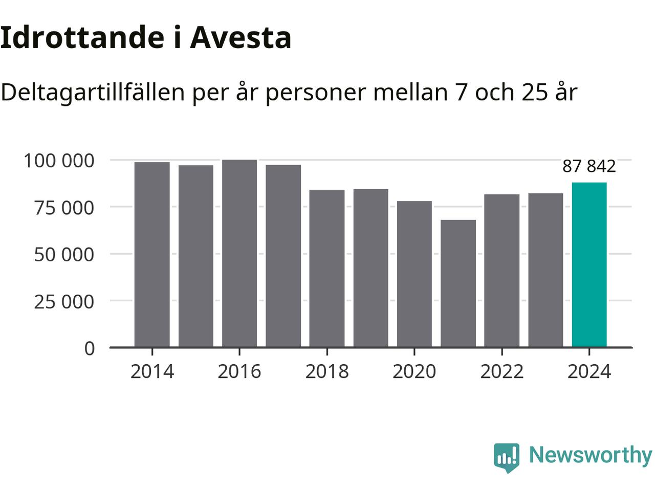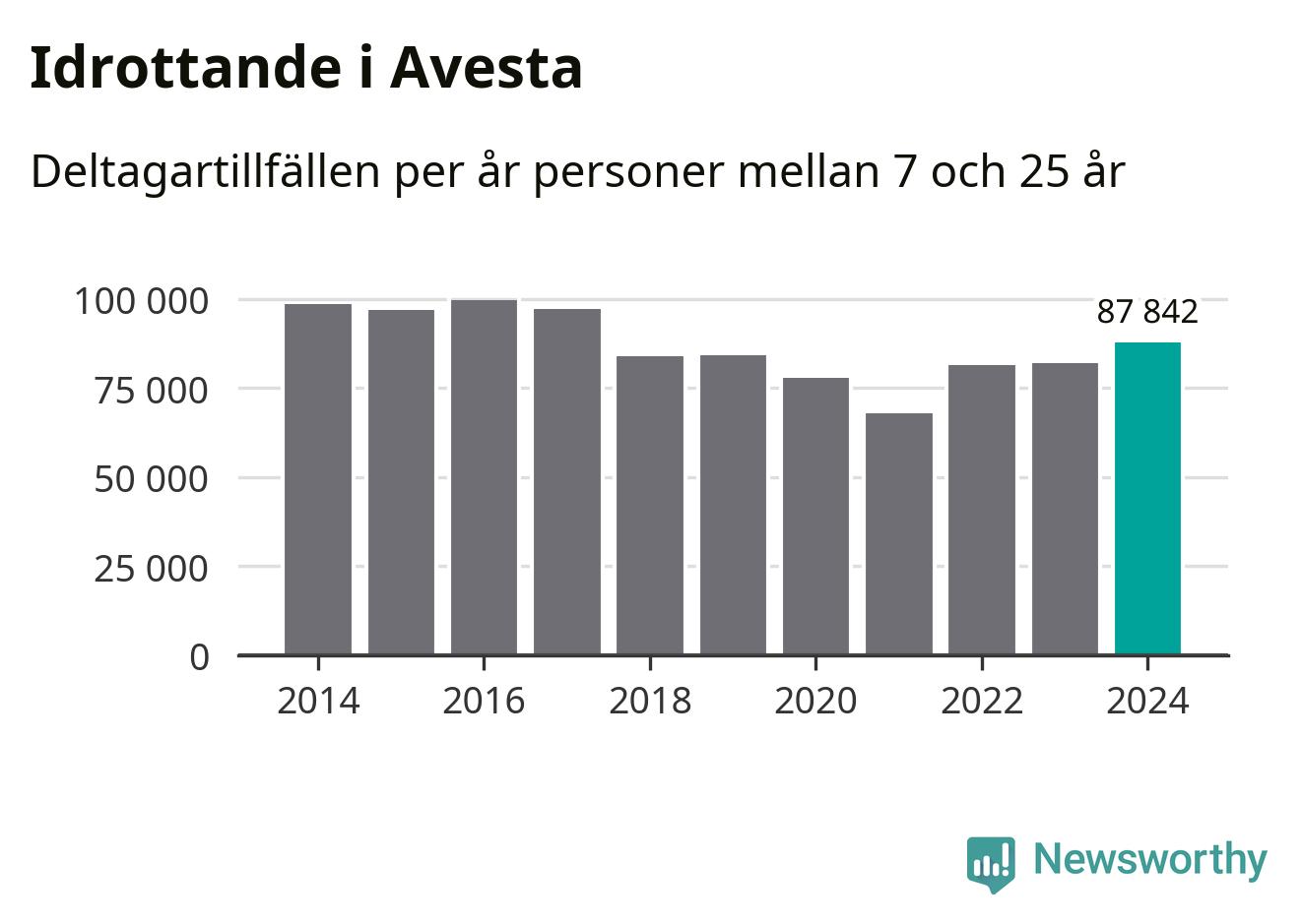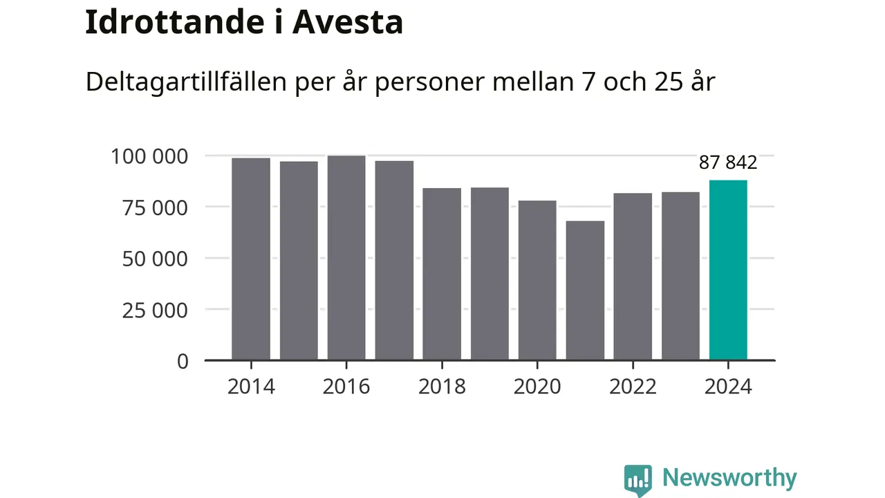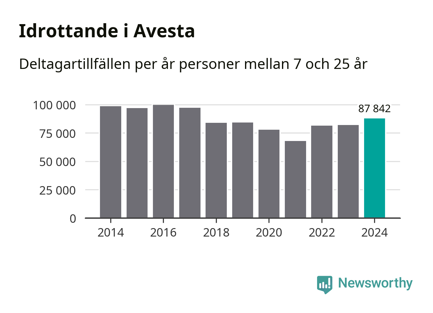 Avesta-ungdomarna idrottade mer under 2024. Det visar nya siffror om utbetalt Lok-stöd, som delas ut till föreningar anslutna till Riksidrottsförbundet specialidrottsförbund. Stödet riktar sig till föreningar som bedriver verksamhet för deltagare i åldern 7-25 år. Under året rapporterade föreningarna i Avesta runt 88 000 deltagartillfällen, vilket är en ökning med sju procent jämfört med 2023 och den högsta siffran i kommunen sedan 2017. I riket som helhet ökade antalet deltagartillfällen med fem procent under 2024.