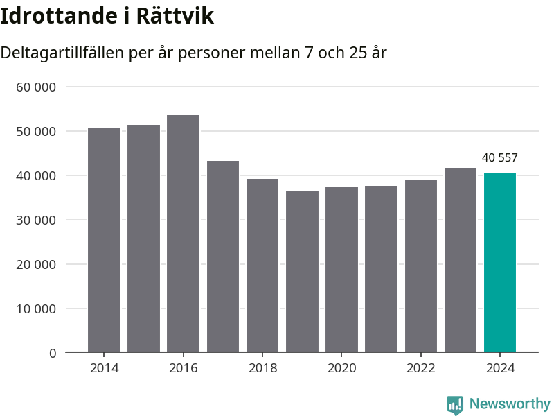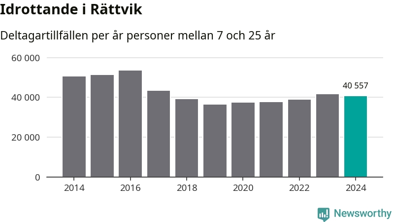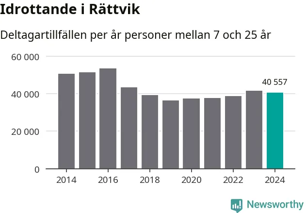 Rättviks-ungdomarna idrottade mindre under 2024. Det visar nya siffror om utbetalt Lok-stöd, som delas ut till föreningar anslutna till Riksidrottsförbundet specialidrottsförbund. Stödet riktar sig till föreningar som bedriver verksamhet för deltagare i åldern 7-25 år. Under året rapporterade föreningarna i Rättvik runt 41 000 deltagartillfällen, vilket är en minskning med två procent jämfört med 2023. I riket som helhet ökade antalet deltagartillfällen med fem procent under 2024.