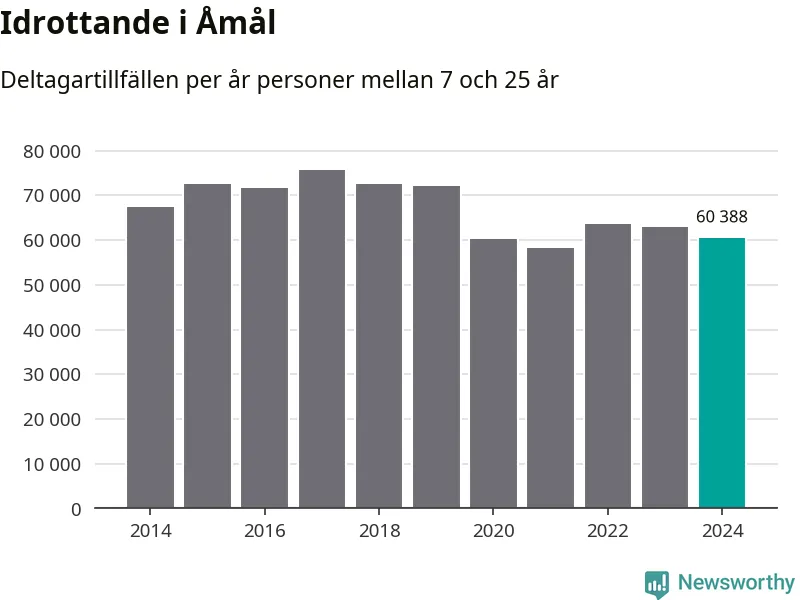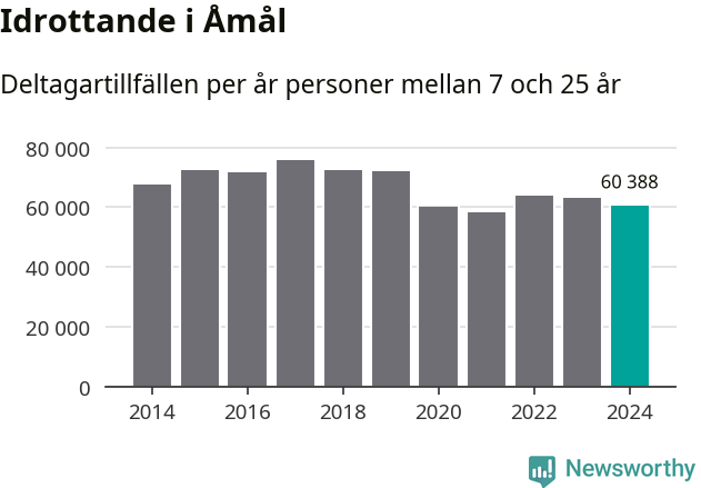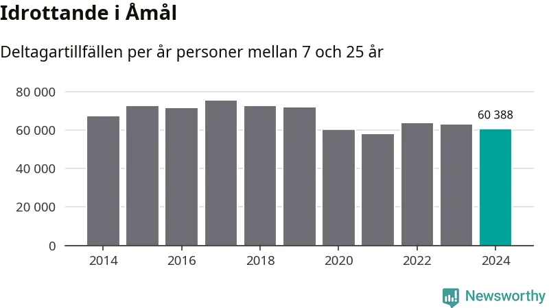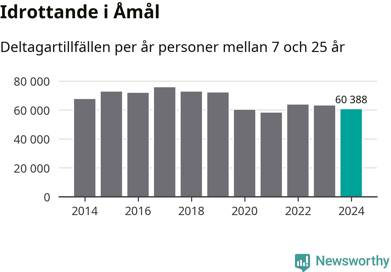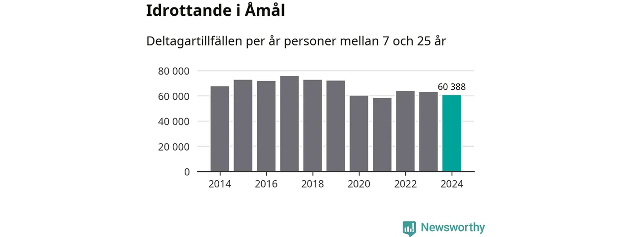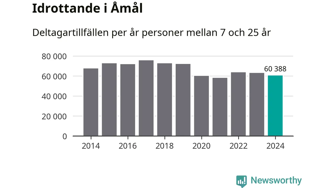 Åmåls-ungdomarna idrottade mindre under 2024. Det visar nya siffror om utbetalt Lok-stöd, som delas ut till föreningar anslutna till Riksidrottsförbundet specialidrottsförbund. Stödet riktar sig till föreningar som bedriver verksamhet för deltagare i åldern 7-25 år. Under året rapporterade föreningarna i Åmål runt 60 000 deltagartillfällen, vilket är en minskning med fyra procent jämfört med 2023. I riket som helhet ökade antalet deltagartillfällen med fem procent under 2024.