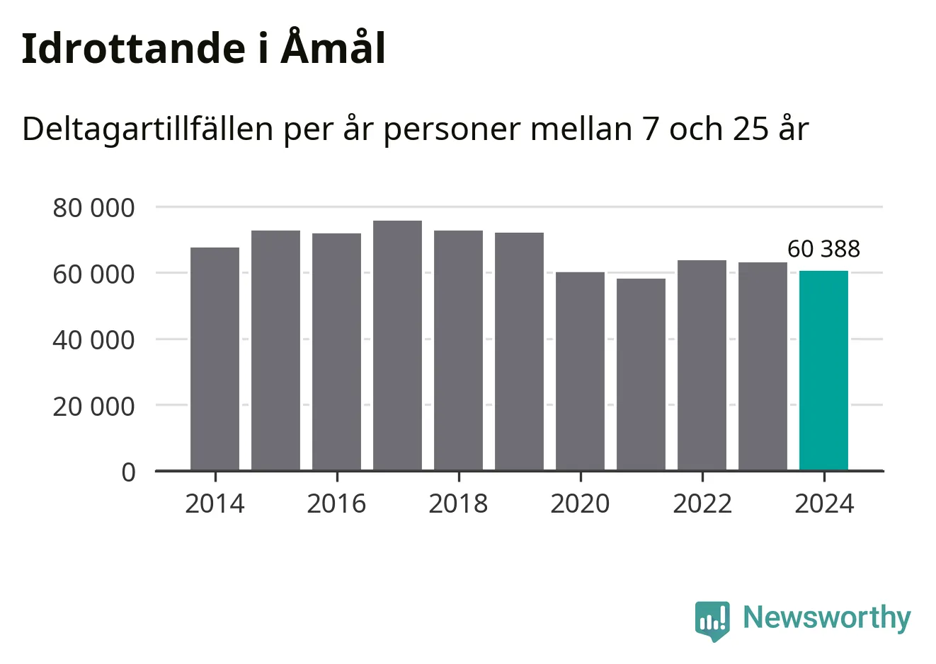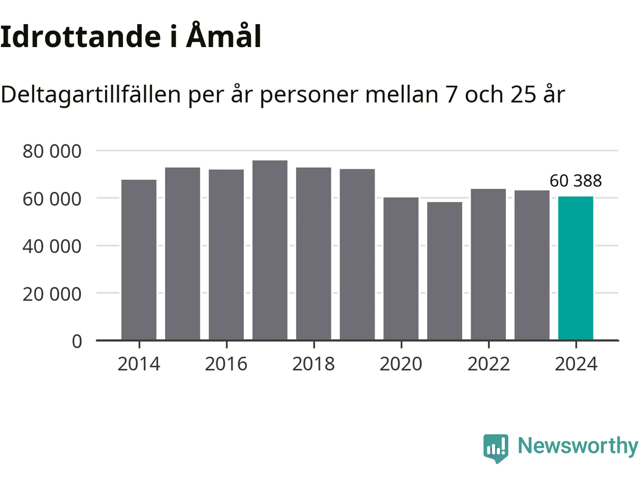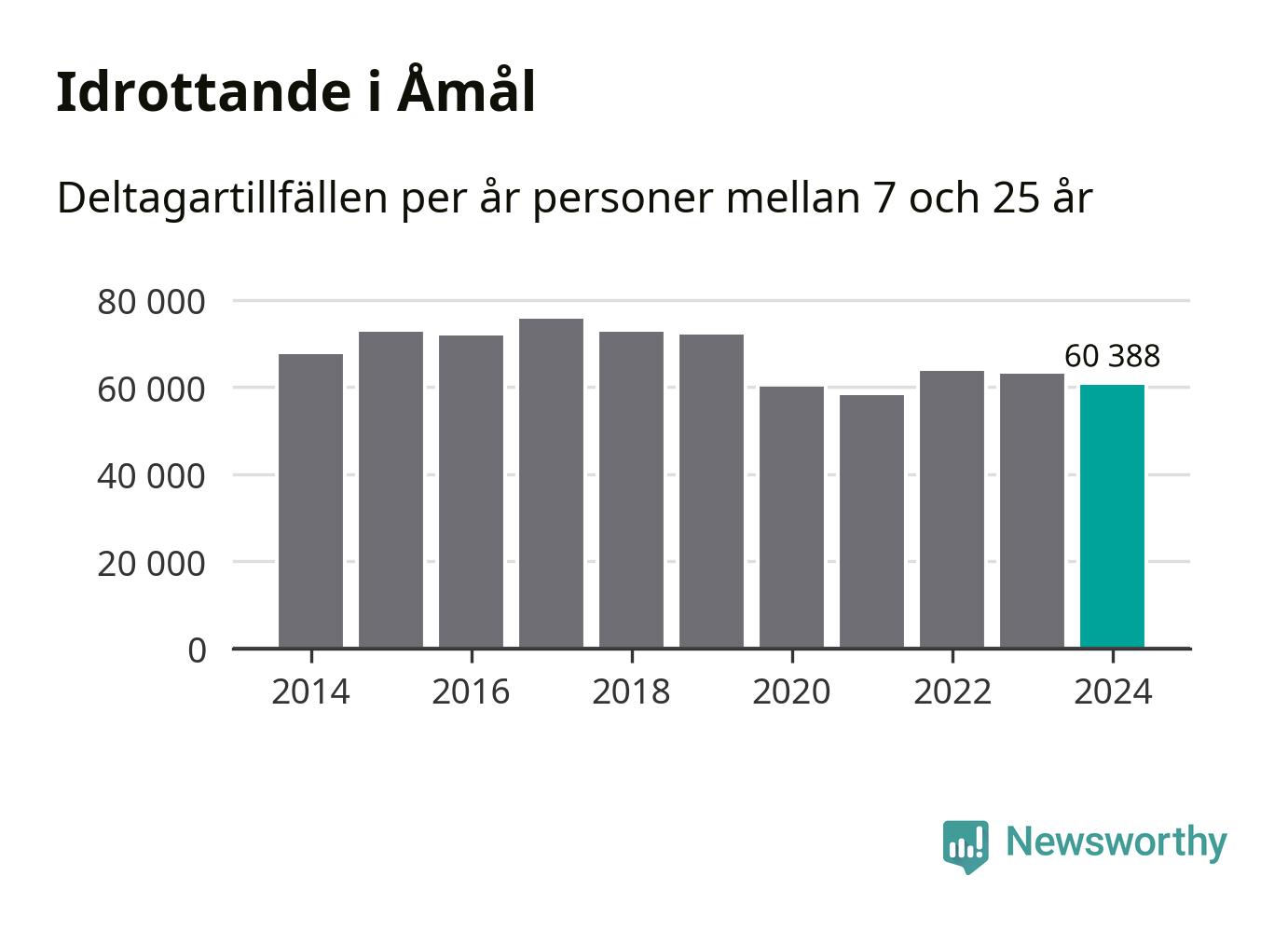De 60 000 deltagartillfällen innebär att varje invånare i Åmål mellan 7 och 25 år i snitt deltog i 25 träningar, matcher eller turneringar under 2024. Flest deltagartillfällen per invånare i Västra Götaland hade Partille kommun med 39 deltagartillfällen per invånare. I andra änden av listan finns Svenljunga kommun, 11 deltagartillfällen per invånare. Värt att nämna är att deltagartillfällena räknas i den kommun föreningen finns, det kan alltså vara ungdomar från en annan kommun som deltar.