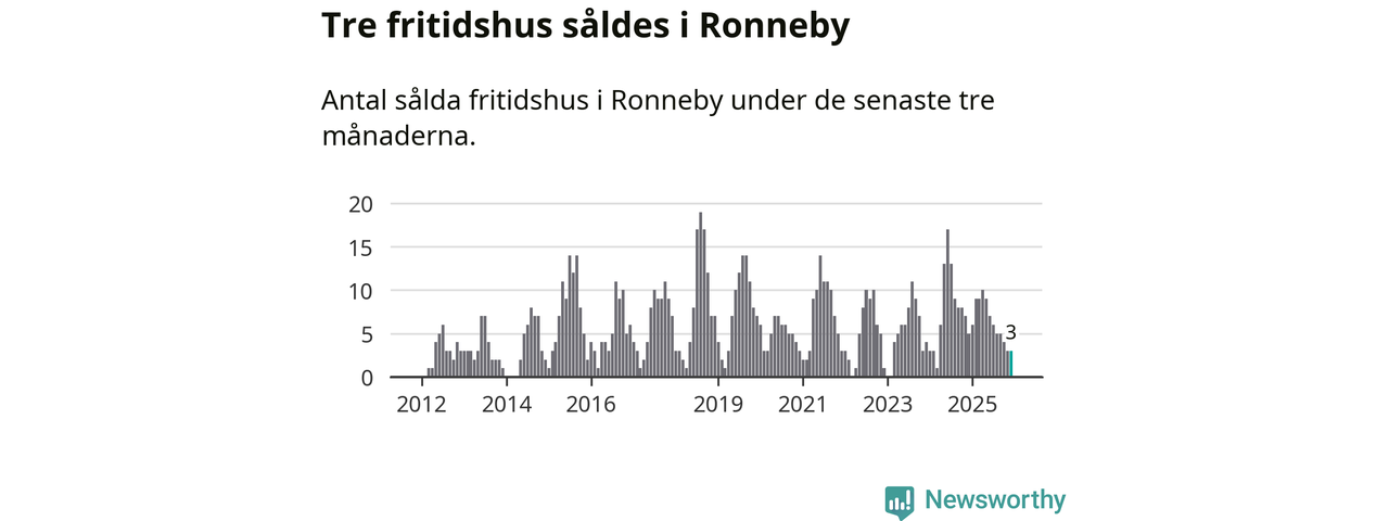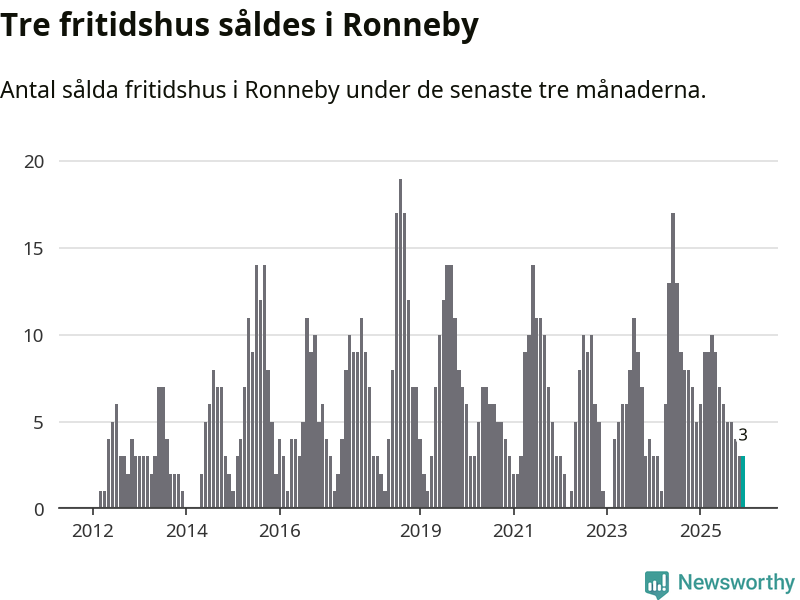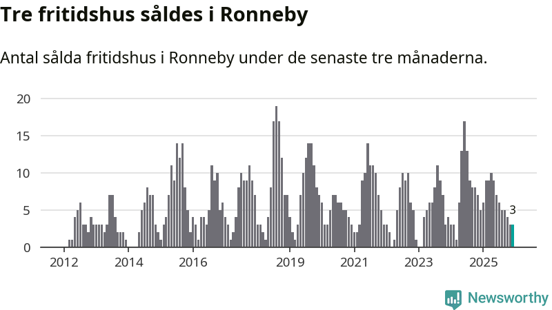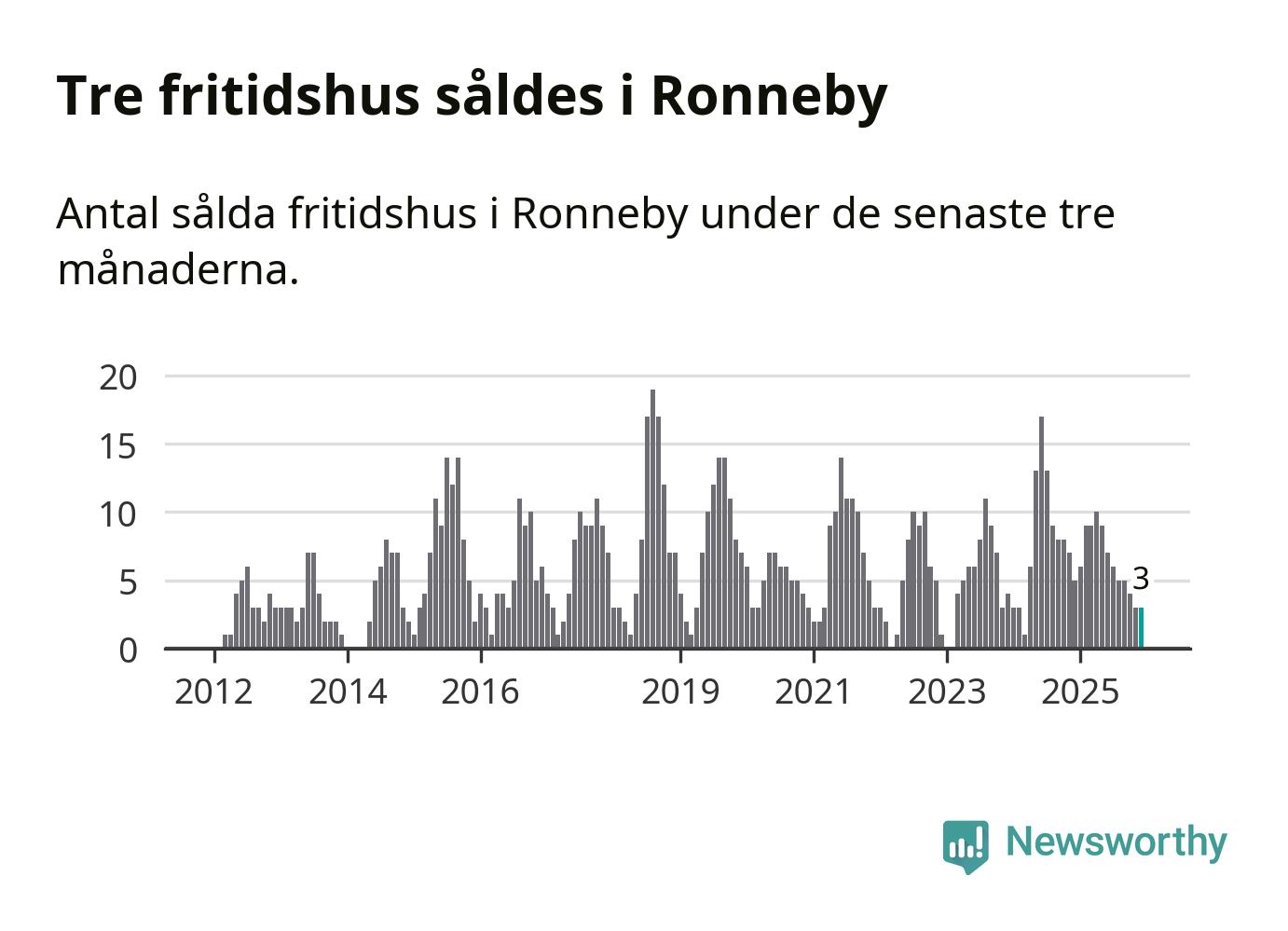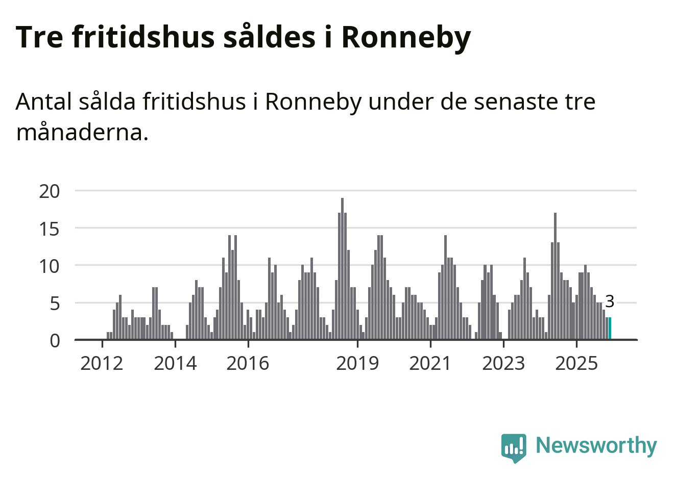 Mellan oktober och december gjordes sammanlagt tre affärer med fritidshus i Ronneby kommun. Det kan jämföras med fem vid motsvarande tid i fjol.