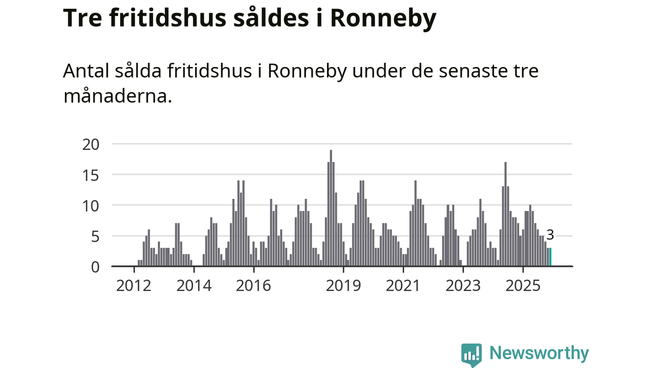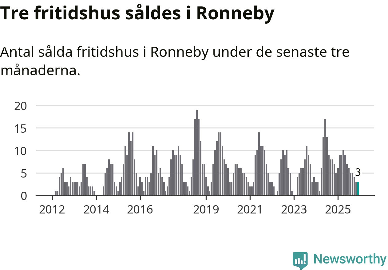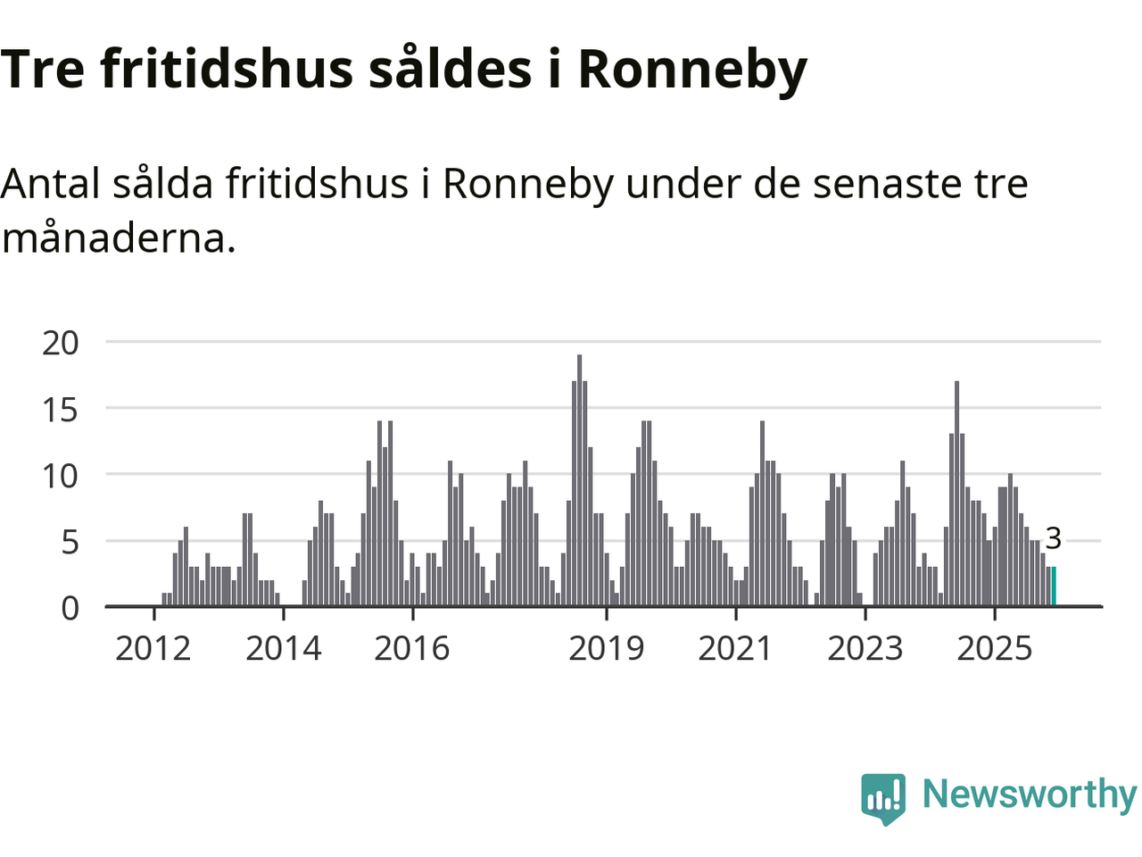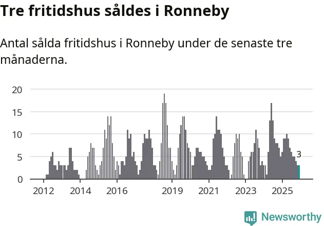 Mellan oktober och december gjordes sammanlagt tre affärer med fritidshus i Ronneby kommun. Det kan jämföras med fem vid motsvarande tid i fjol.