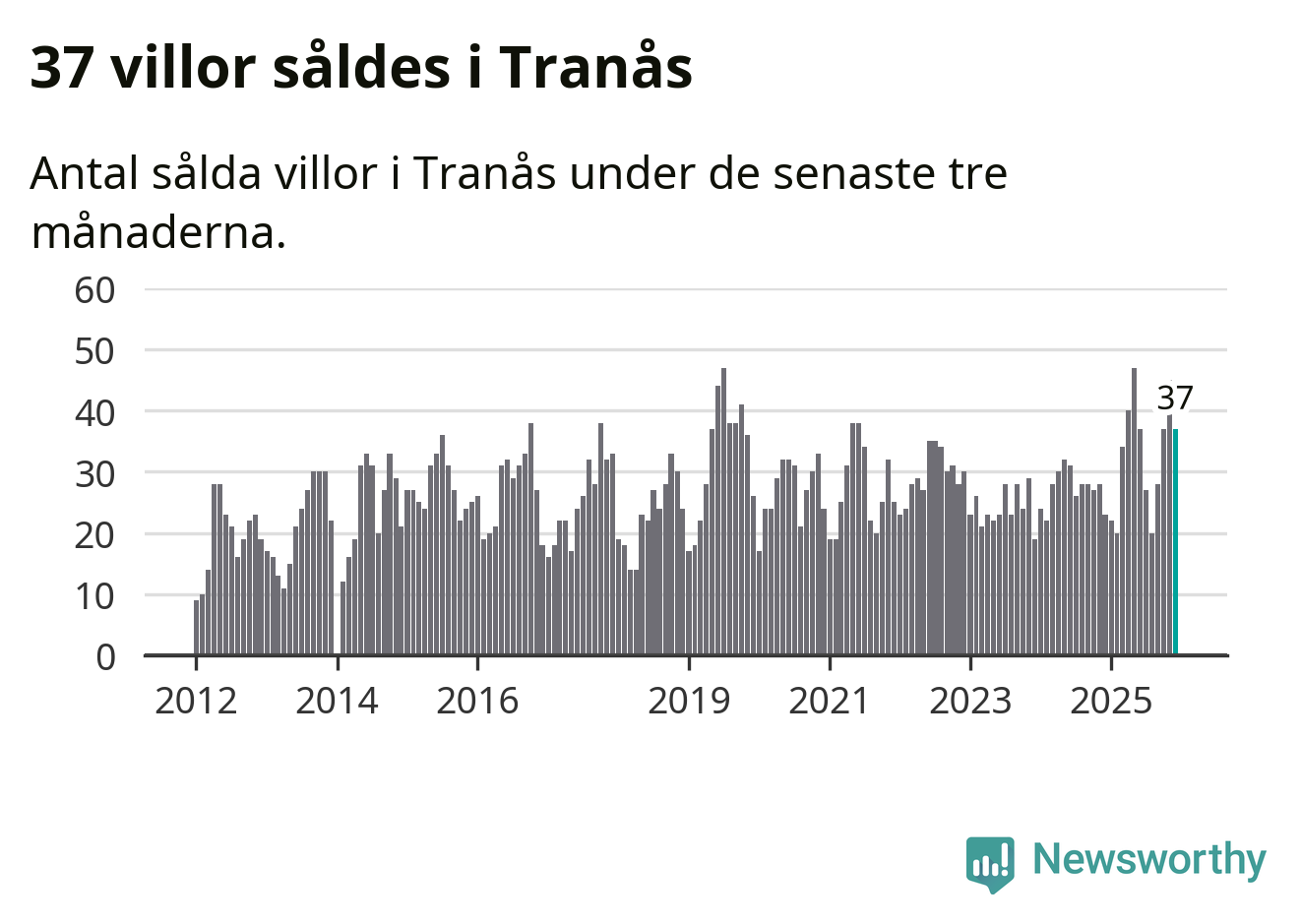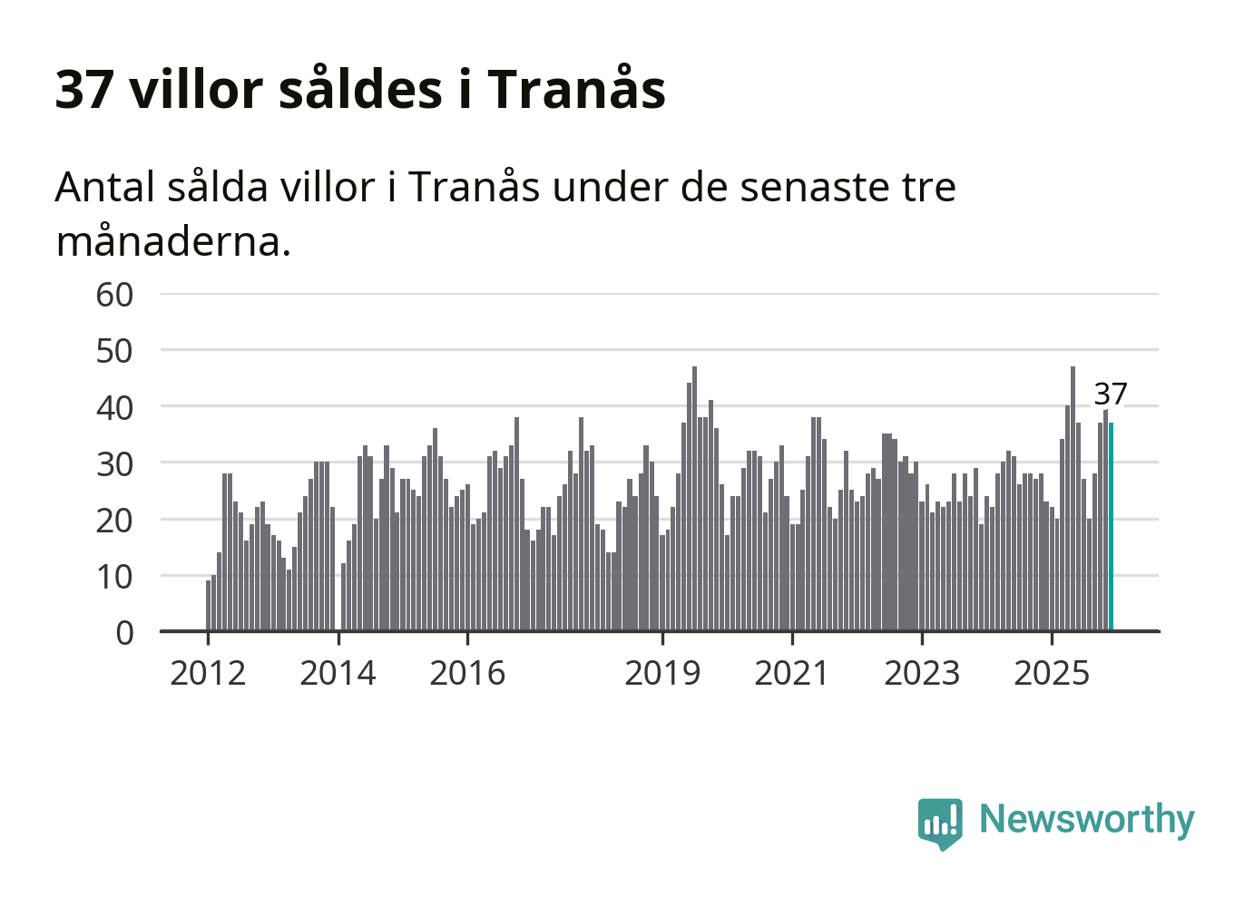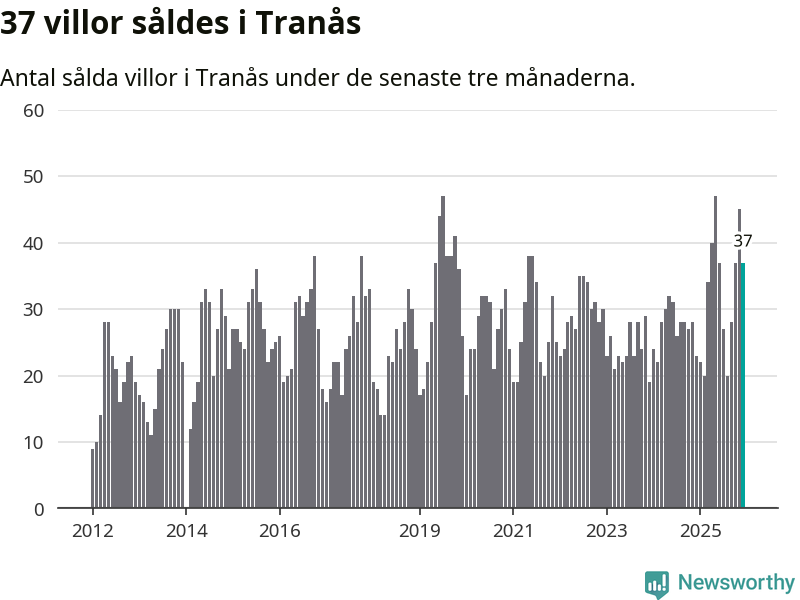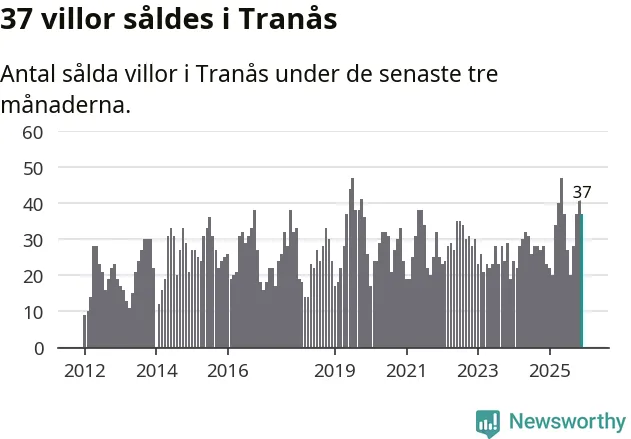 Mellan oktober och december gjordes sammanlagt 37 affärer med villor i Tranås kommun. Det kan jämföras med 23 vid motsvarande tid i fjol.