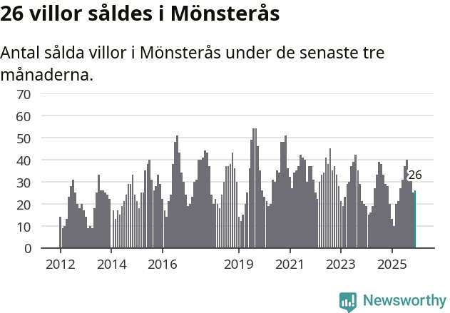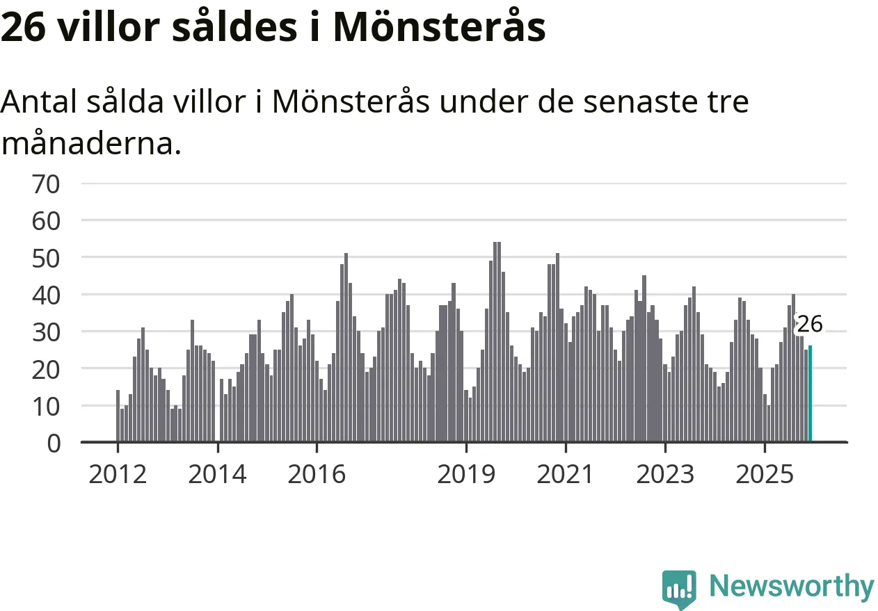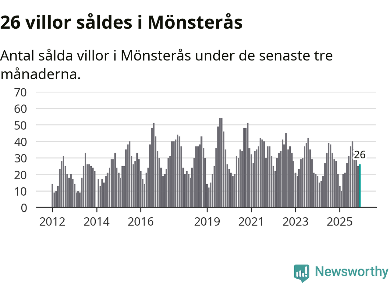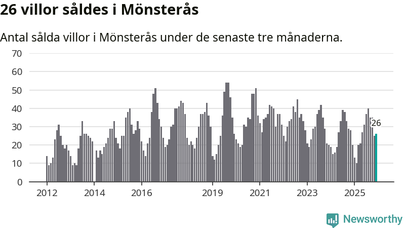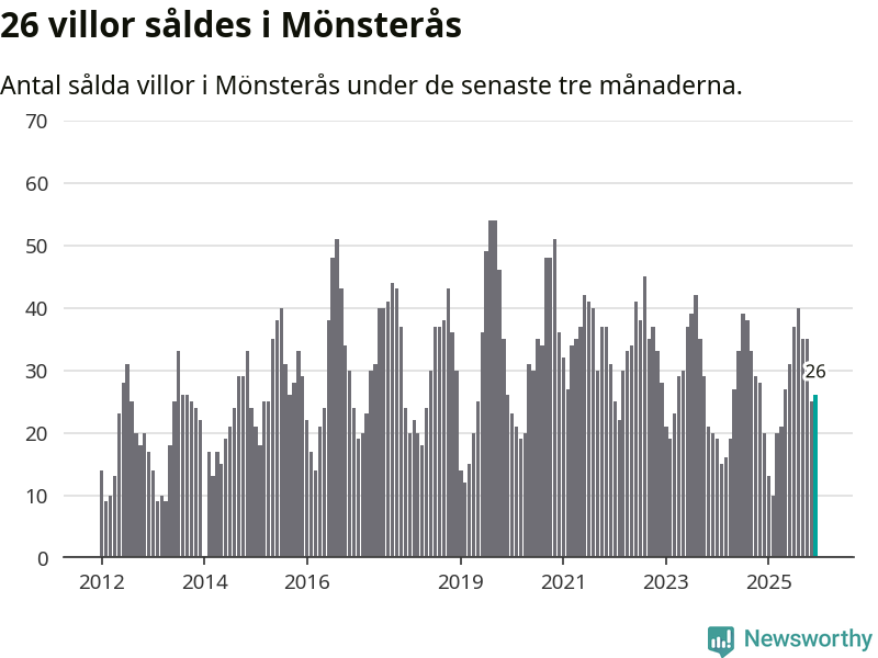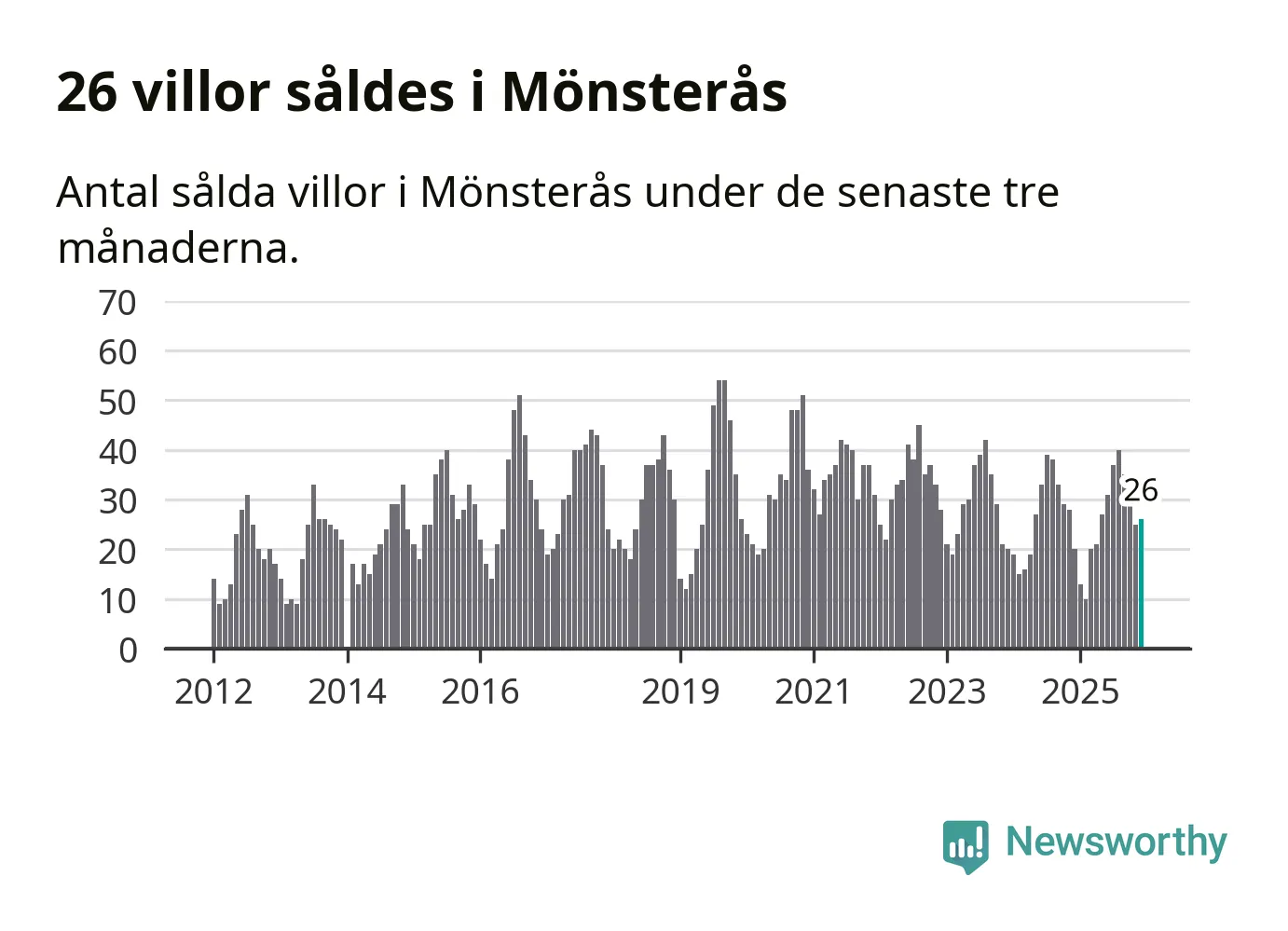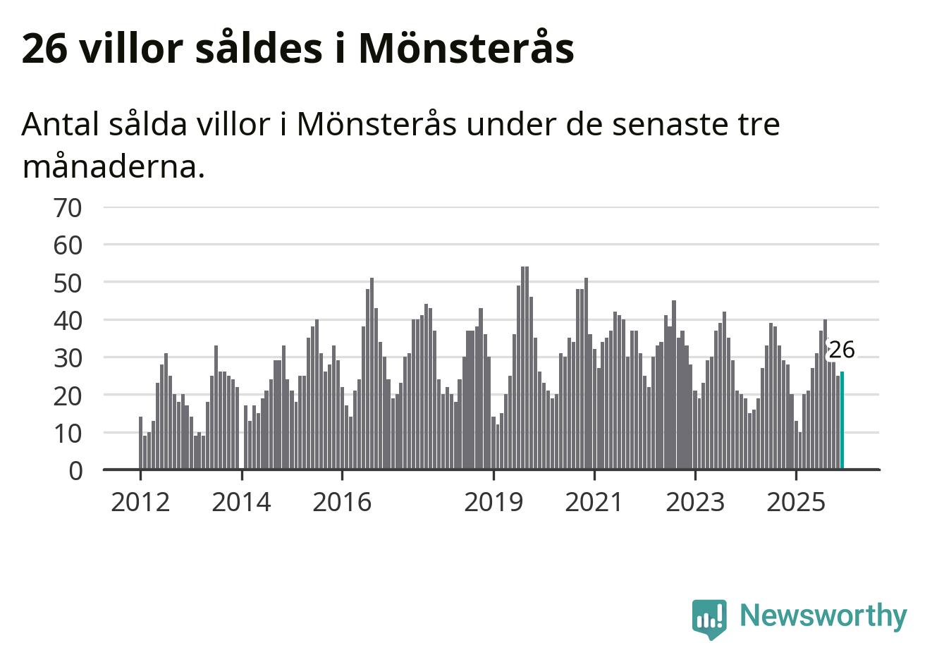Mellan oktober och december gjordes sammanlagt 26 affärer med villor i Mönsterås kommun. Det kan jämföras med 20 vid motsvarande tid i fjol.