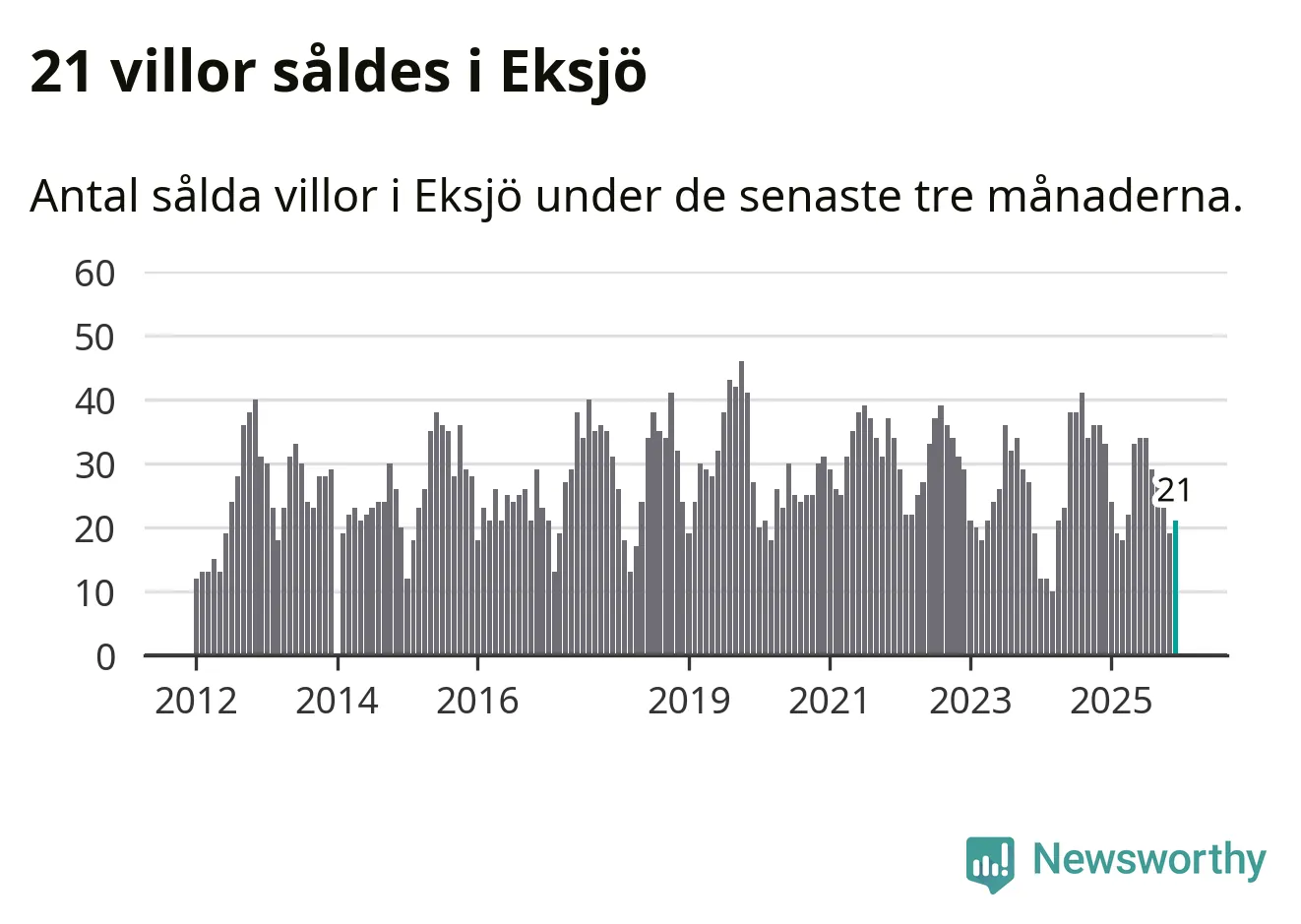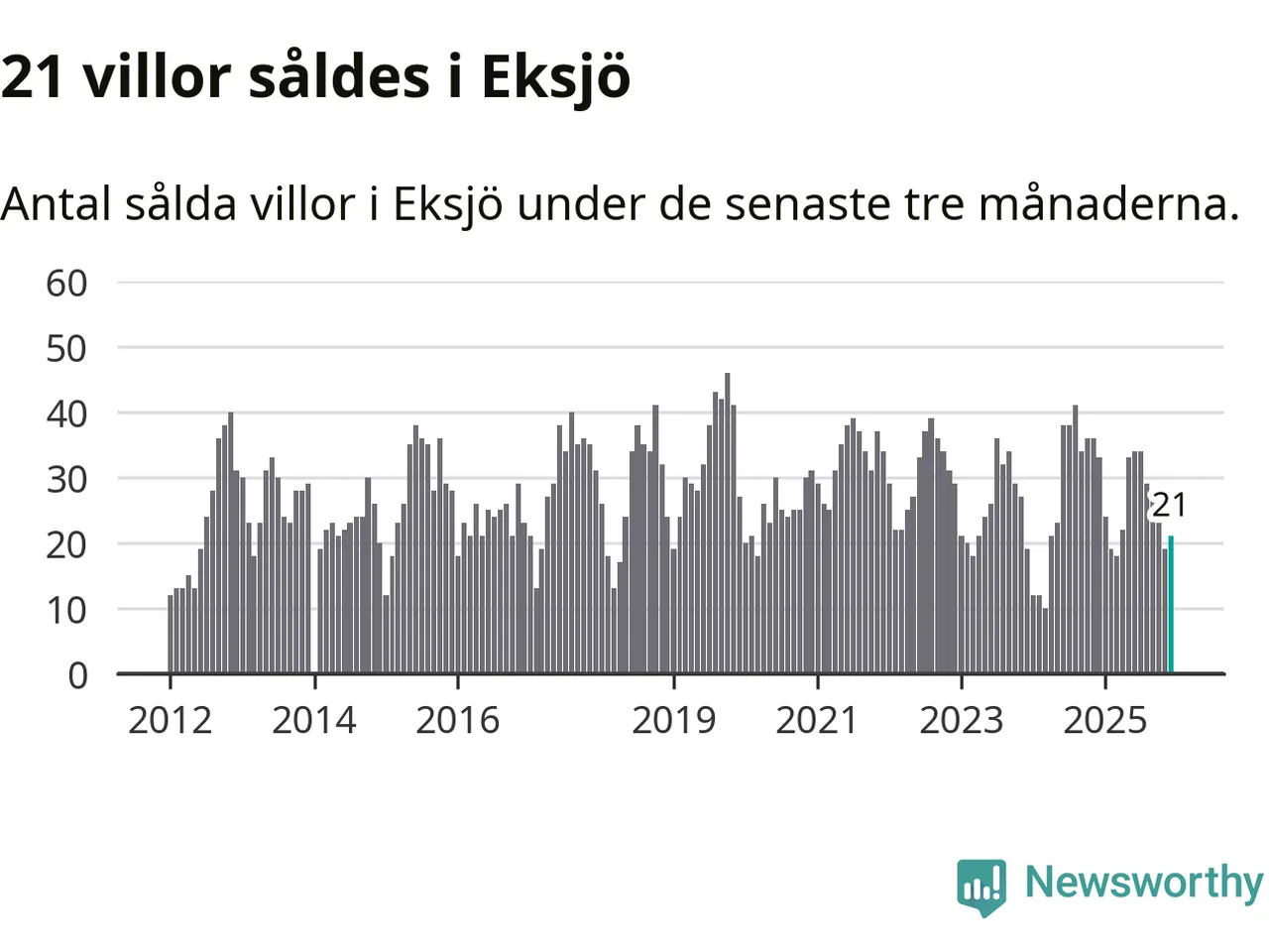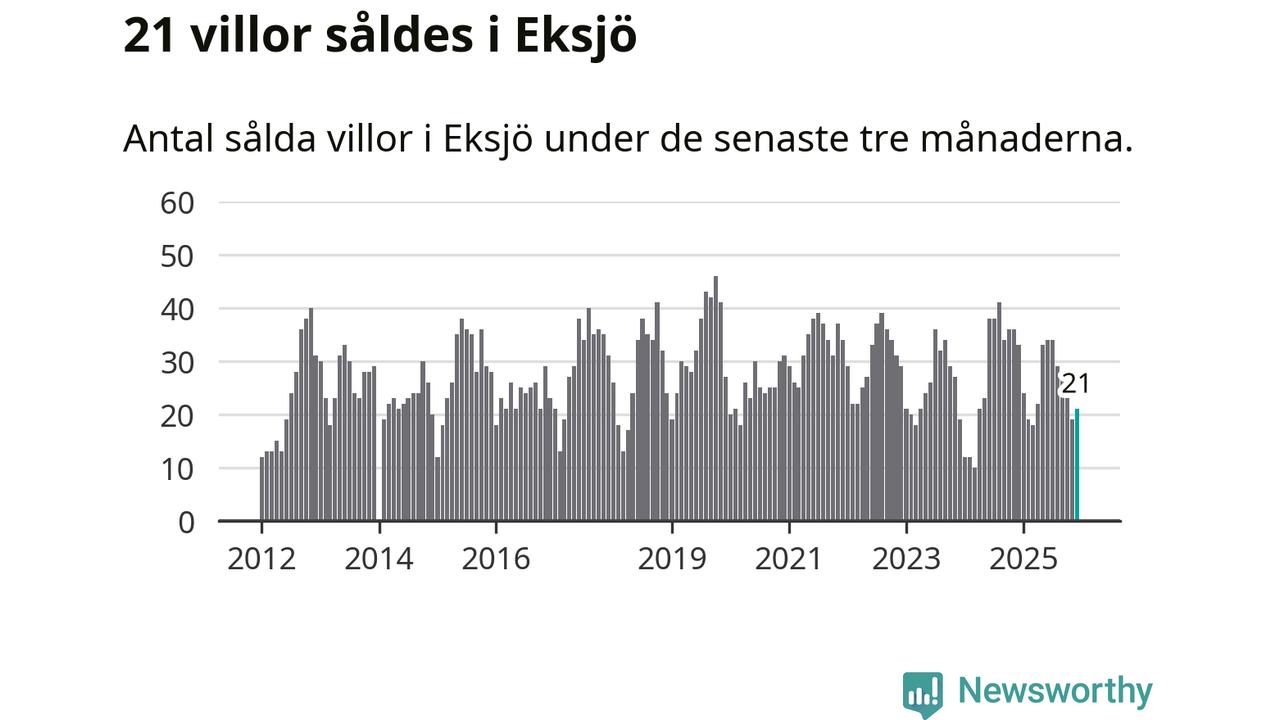 Mellan oktober och december gjordes sammanlagt 21 affärer med villor i Eksjö kommun. Det kan jämföras med 33 vid motsvarande tid i fjol.