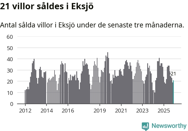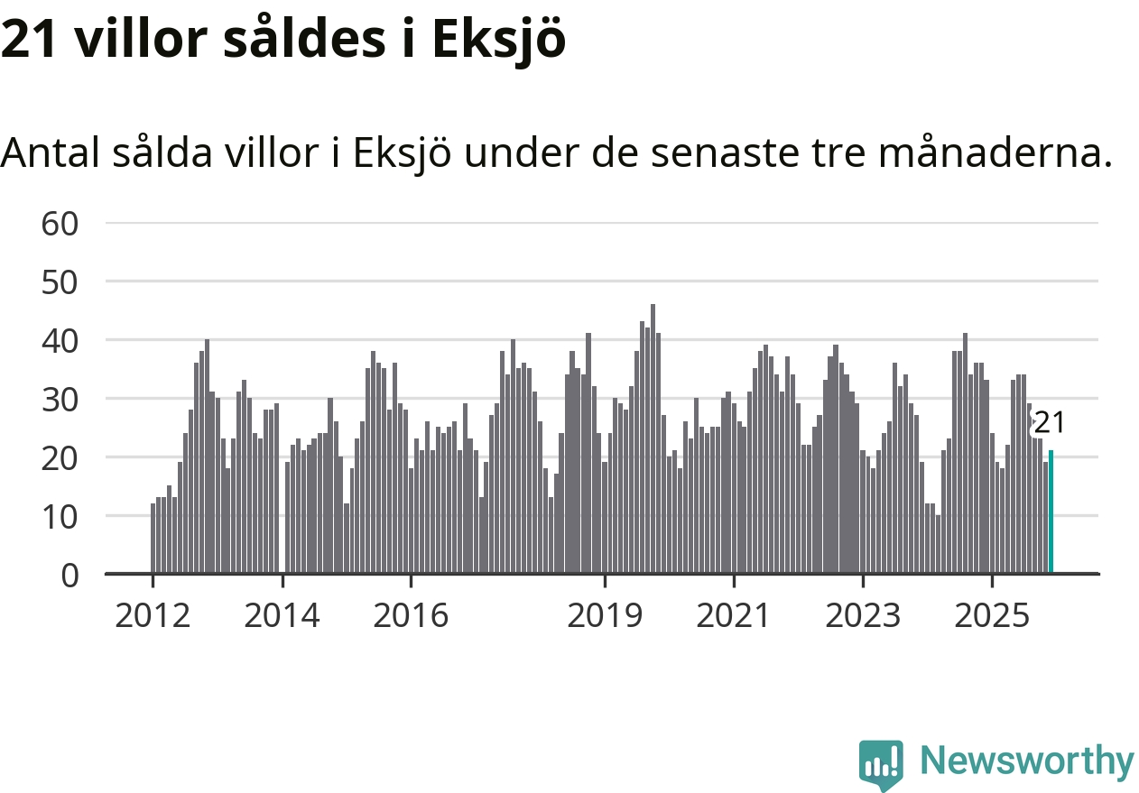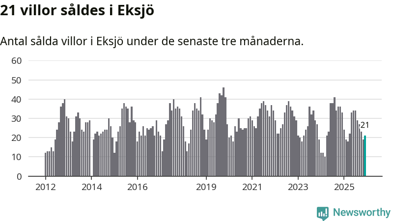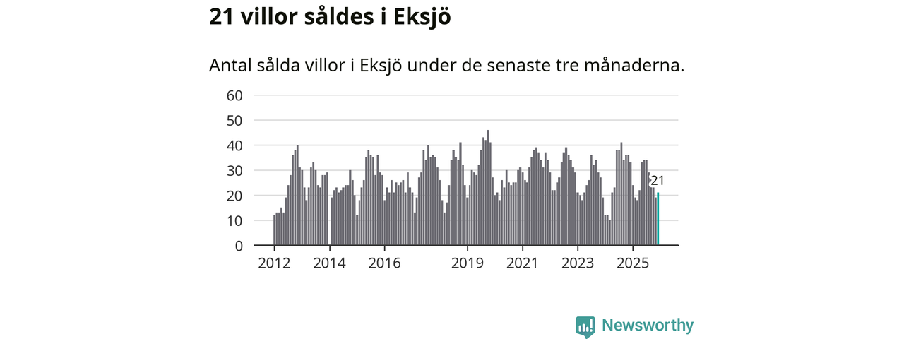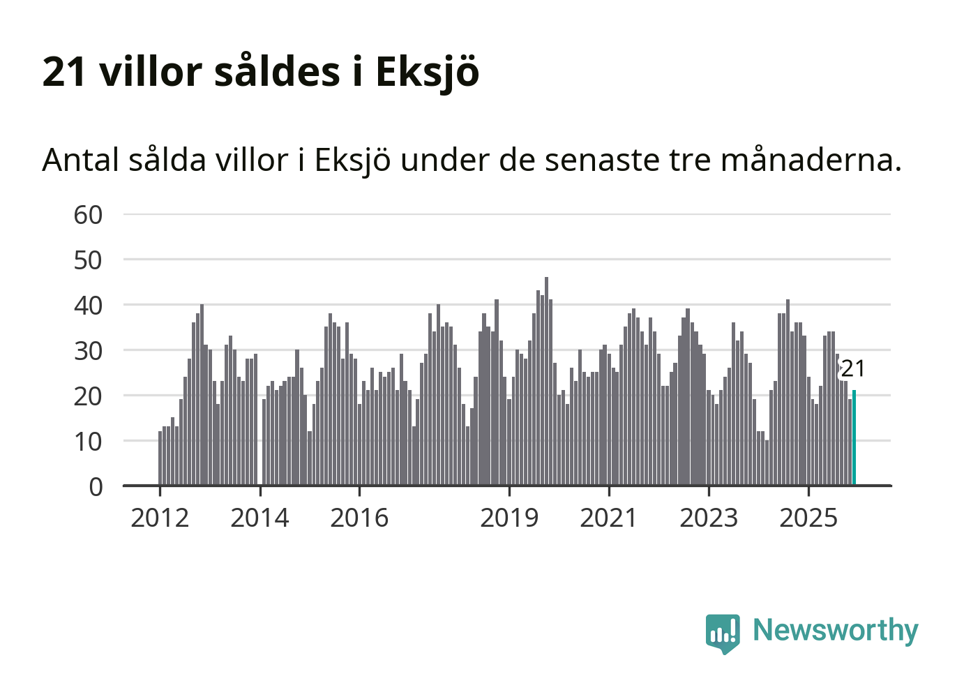 Mellan oktober och december gjordes sammanlagt 21 affärer med villor i Eksjö kommun. Det kan jämföras med 33 vid motsvarande tid i fjol.