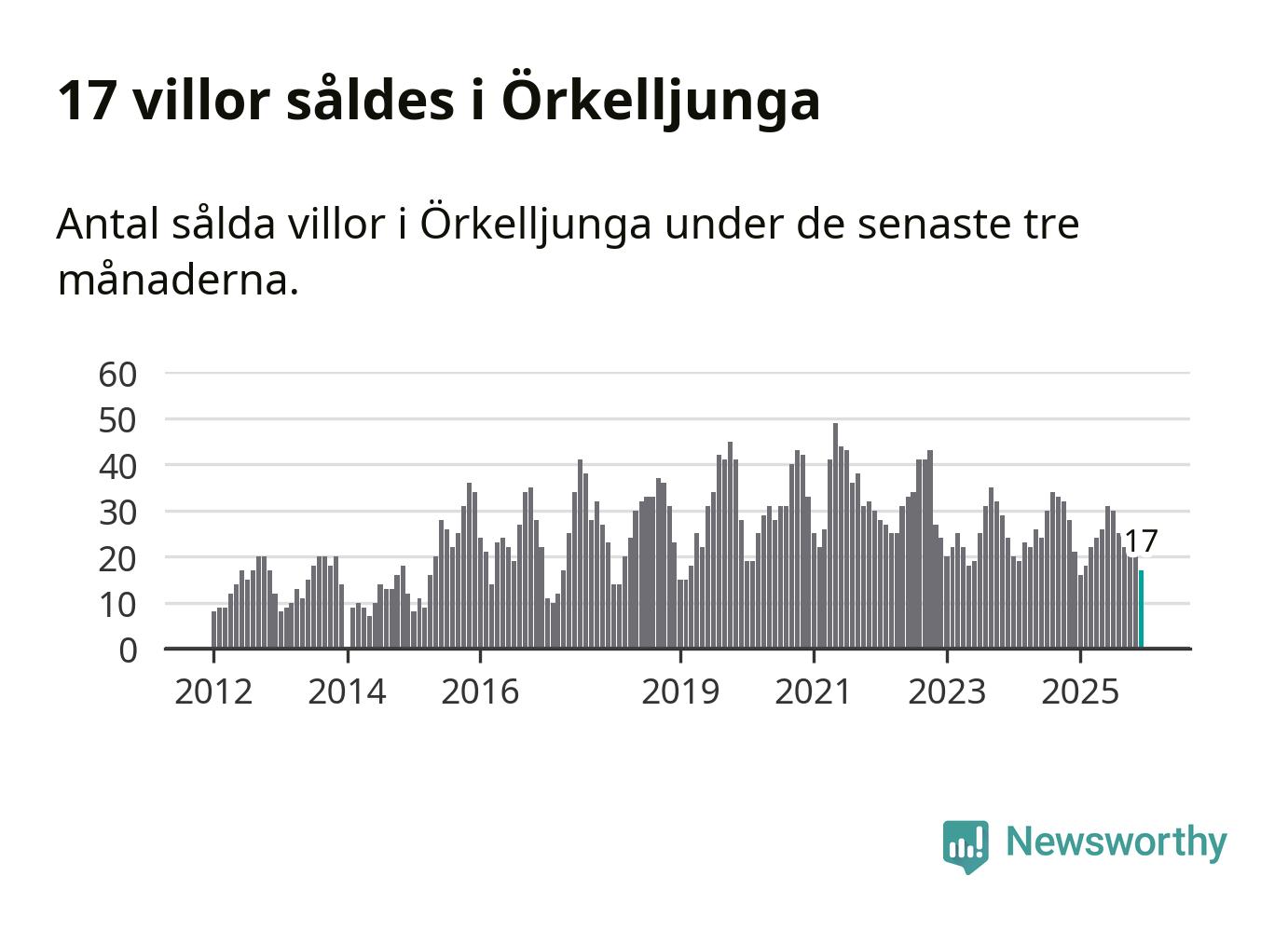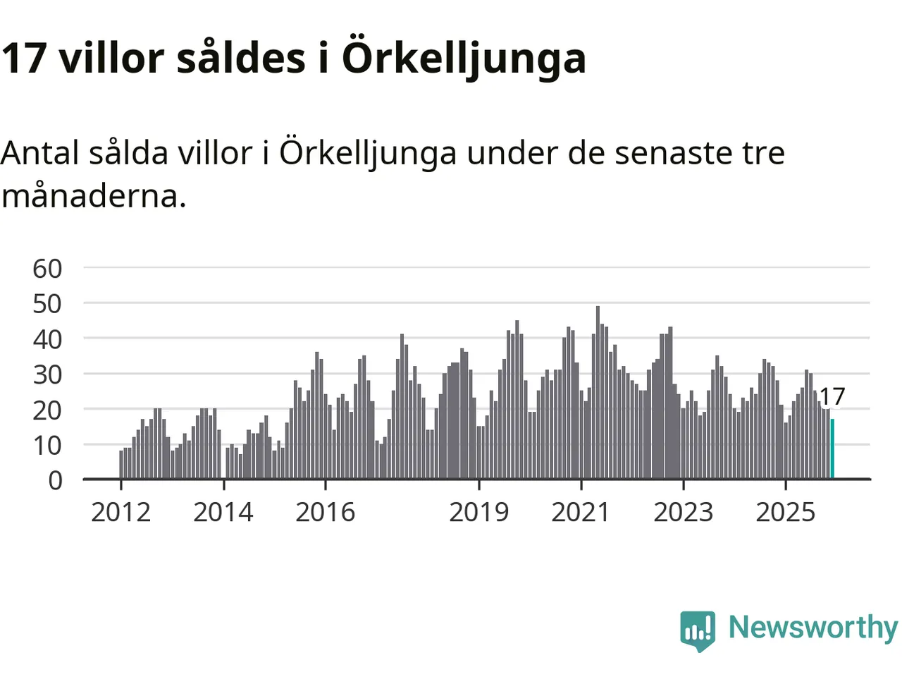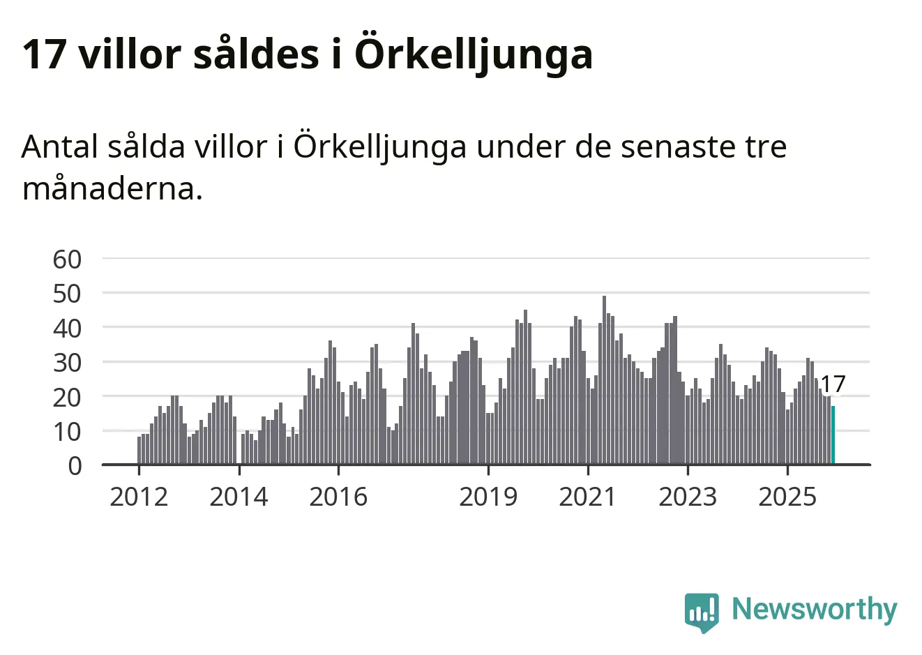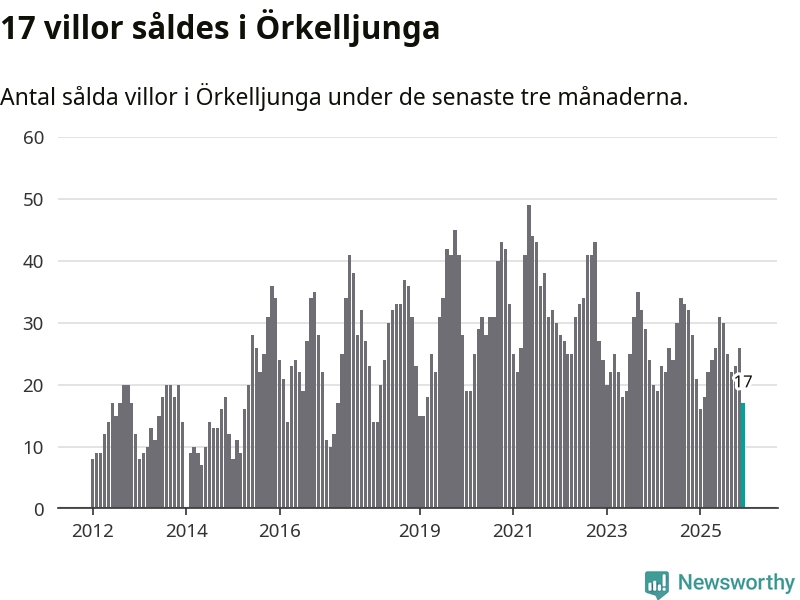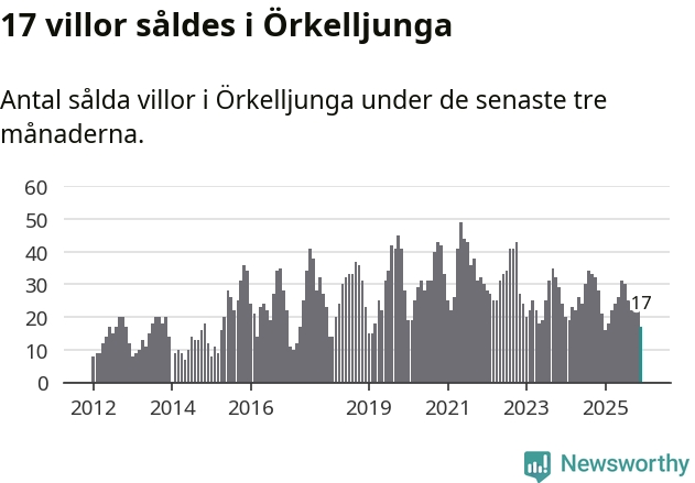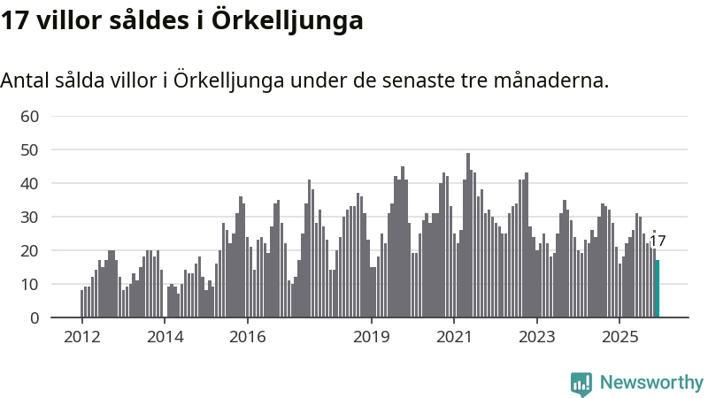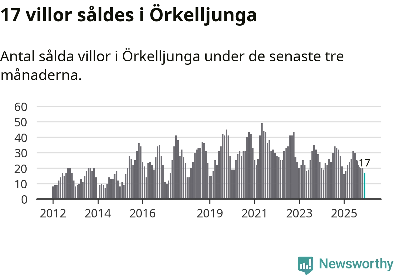 Mellan oktober och december gjordes sammanlagt 17 affärer med villor i Örkelljunga kommun. Det kan jämföras med 21 vid motsvarande tid i fjol.