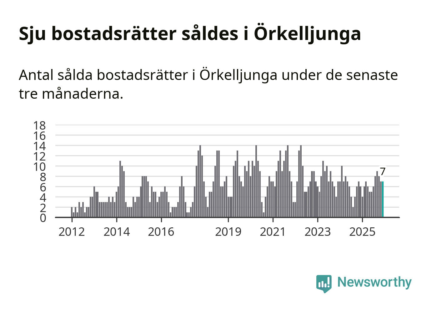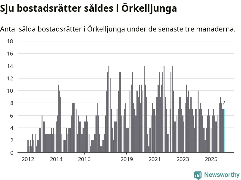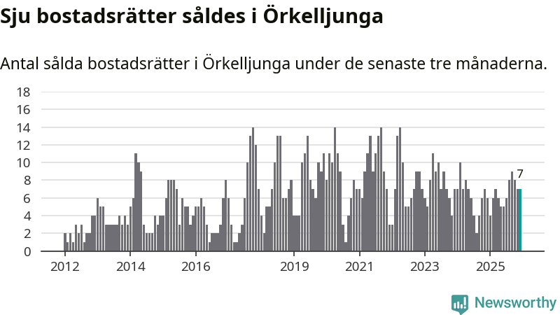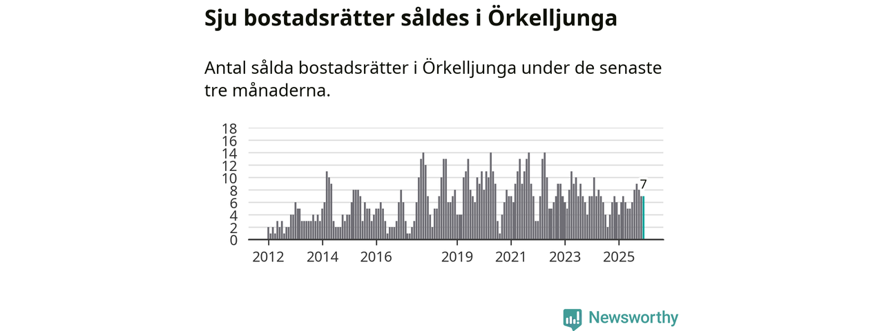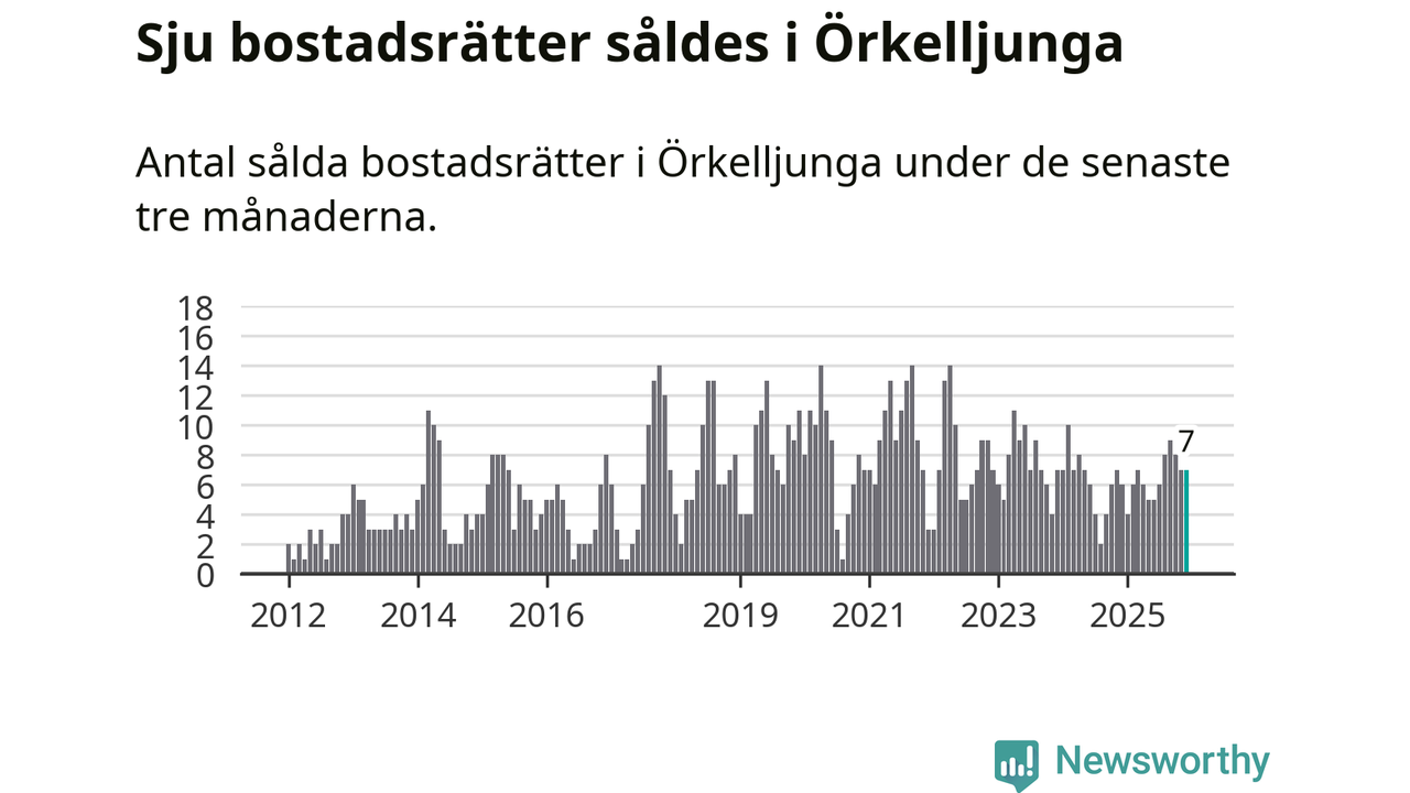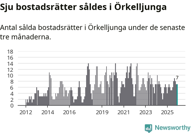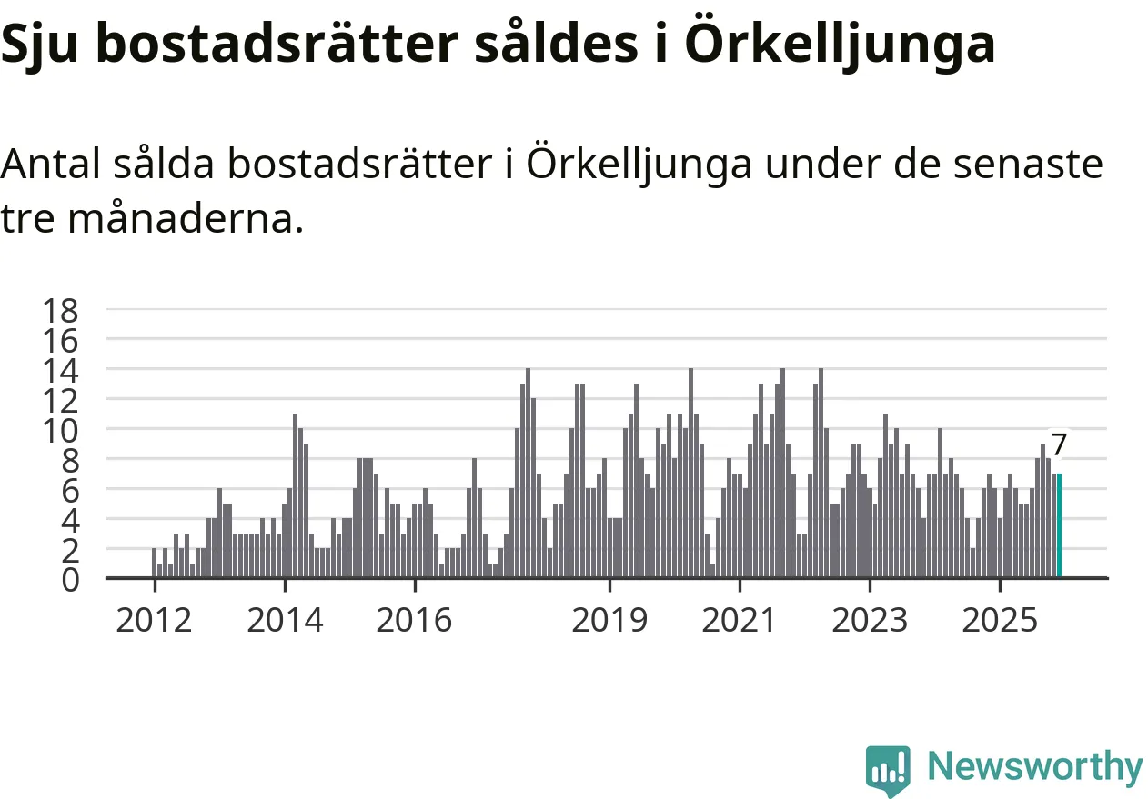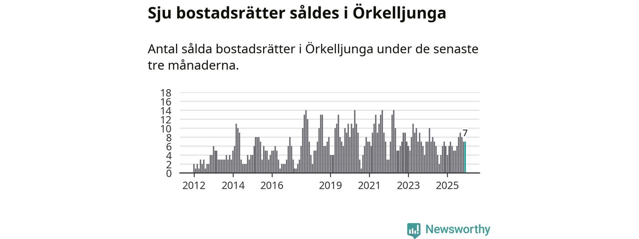 Mellan oktober och december gjordes sammanlagt sju affärer med bostadsrätter i Örkelljunga kommun. Det kan jämföras med sex vid motsvarande tid i fjol.