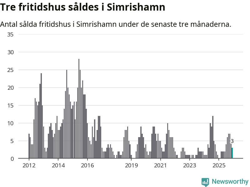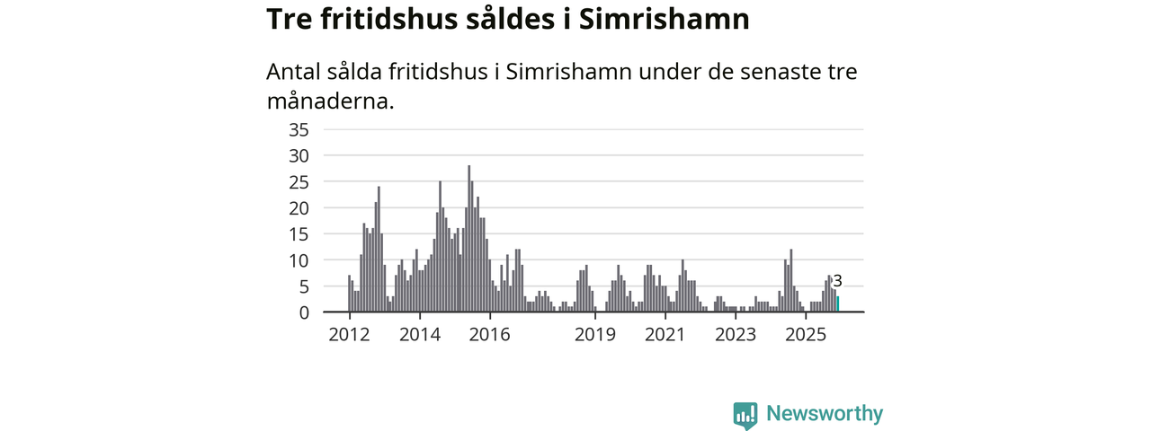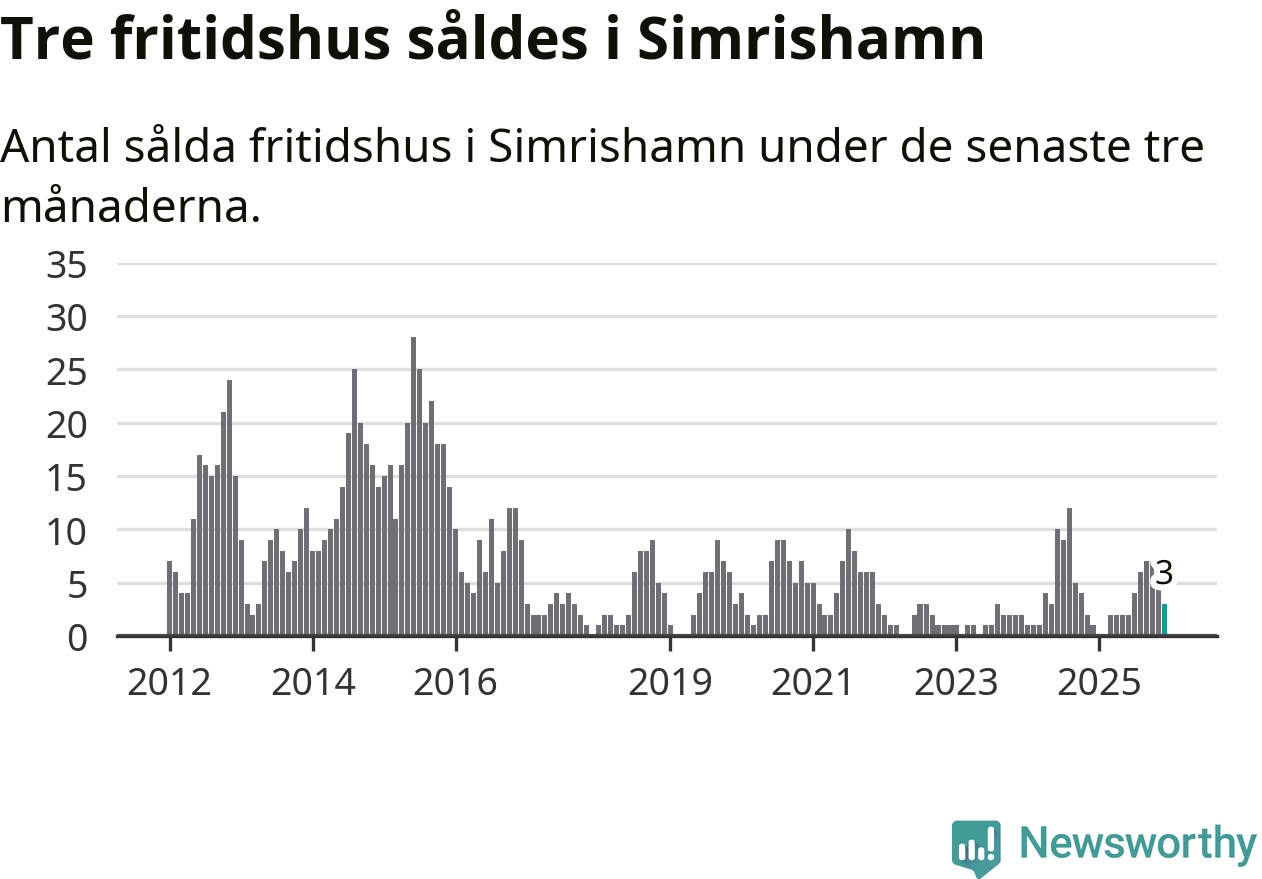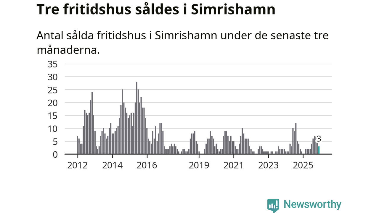 Mellan oktober och december gjordes sammanlagt tre affärer med fritidshus i Simrishamns kommun. Det kan jämföras med ett vid motsvarande tid i fjol.