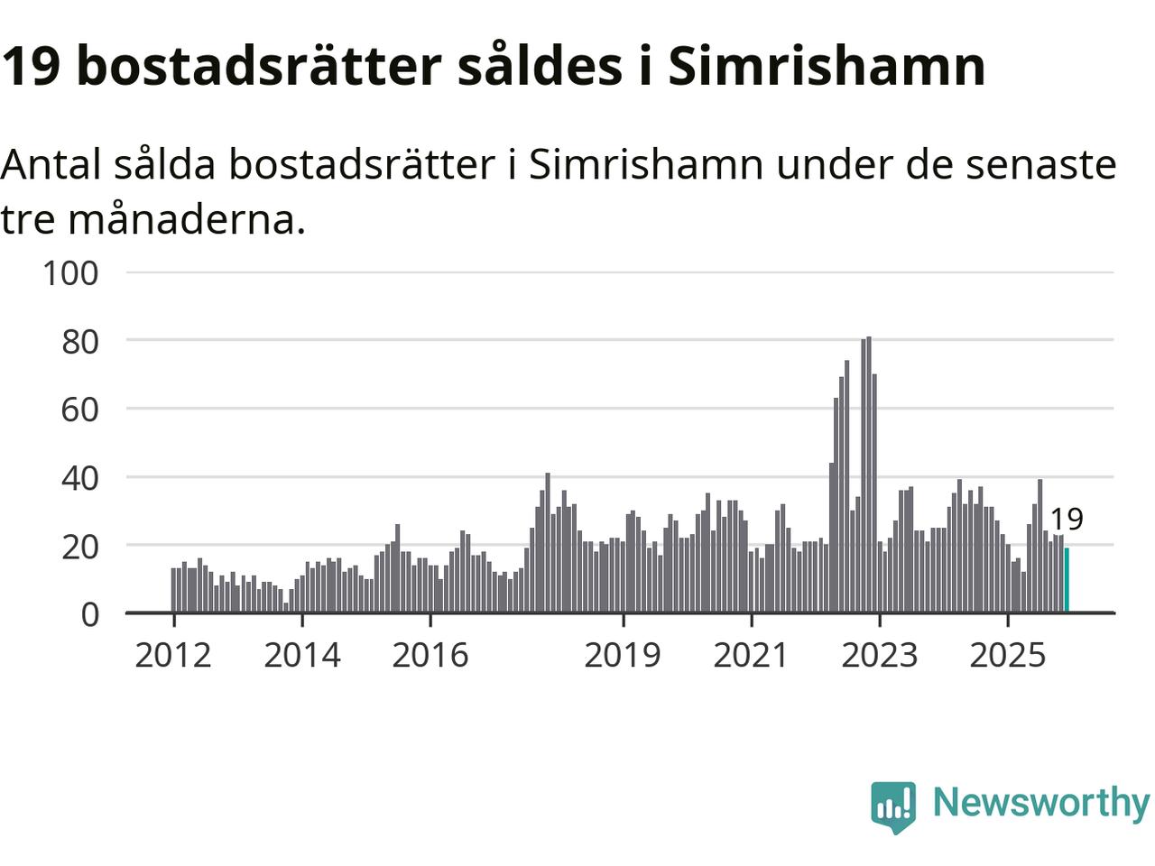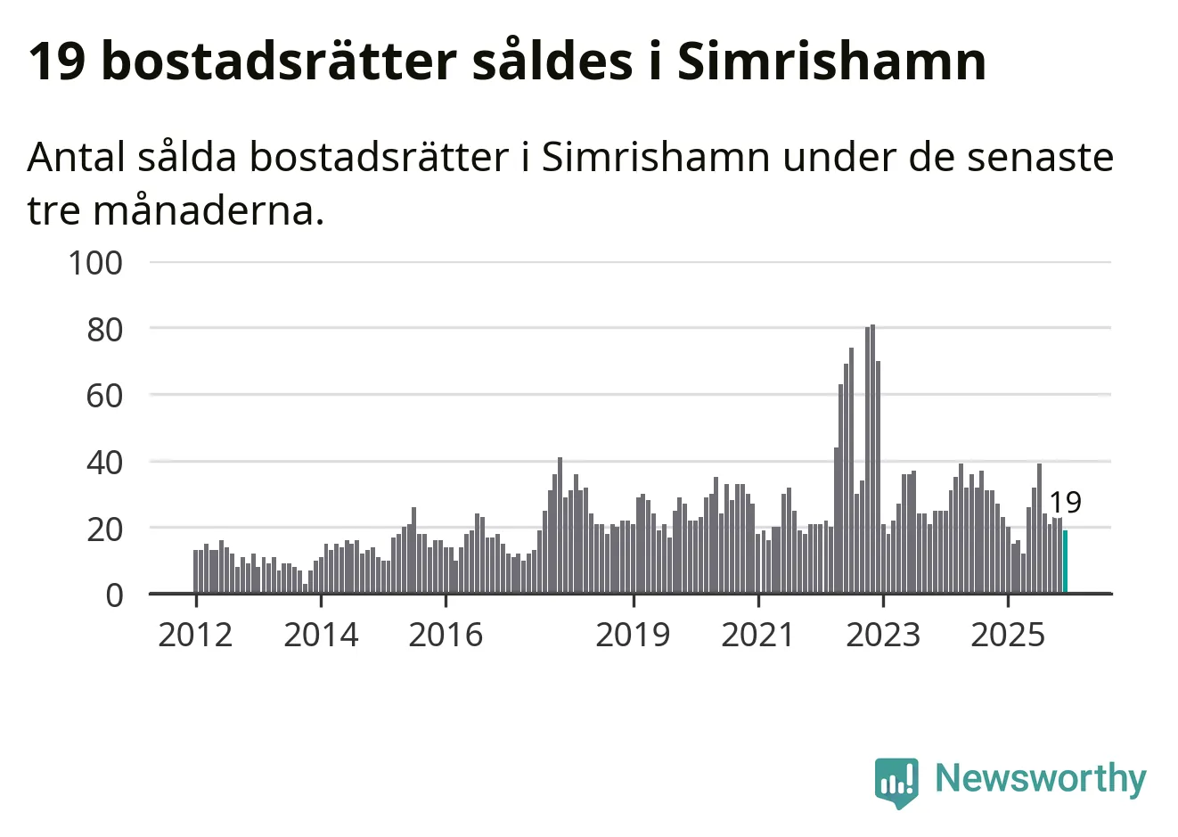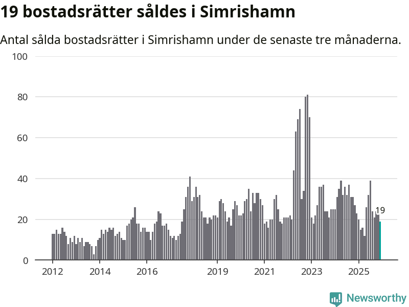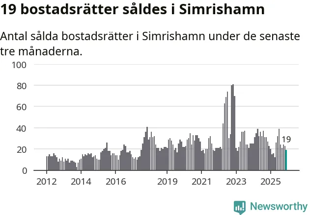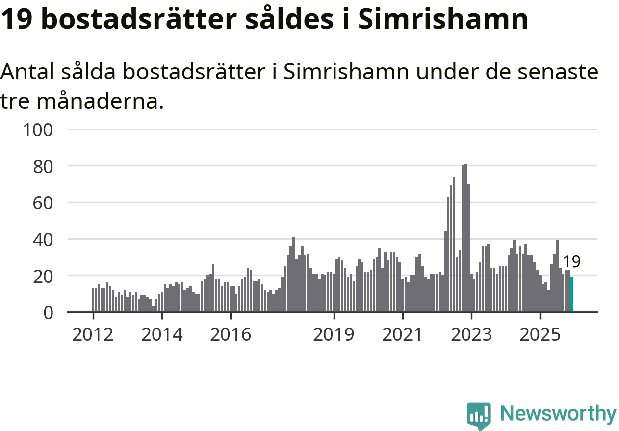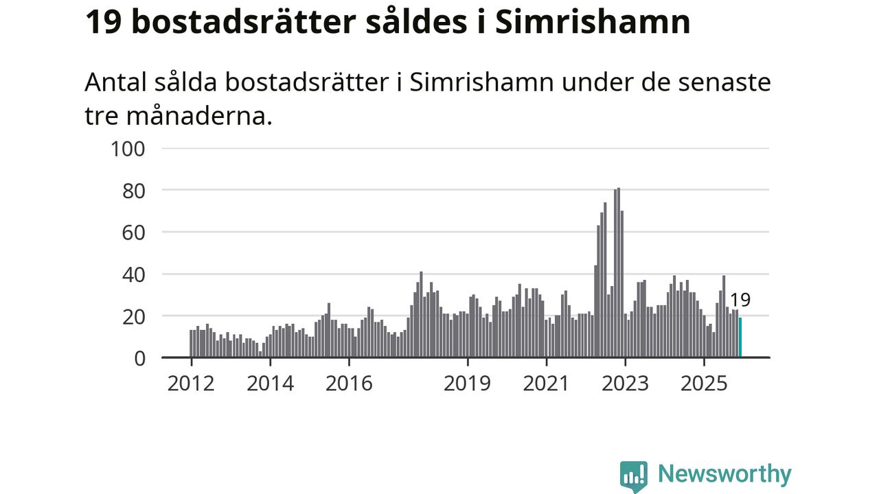 Mellan oktober och december gjordes sammanlagt 19 affärer med bostadsrätter i Simrishamns kommun. Det kan jämföras med 23 vid motsvarande tid i fjol.