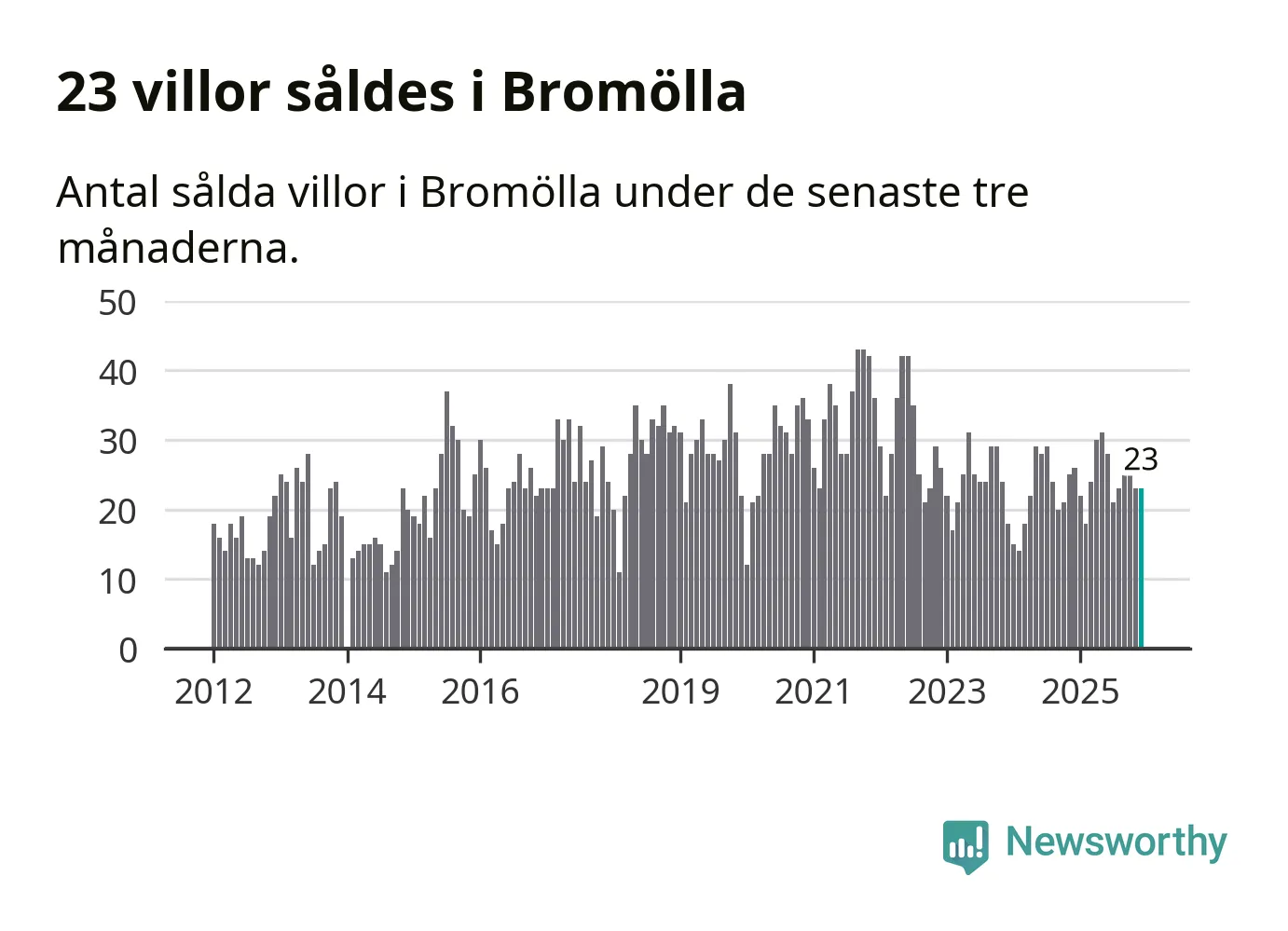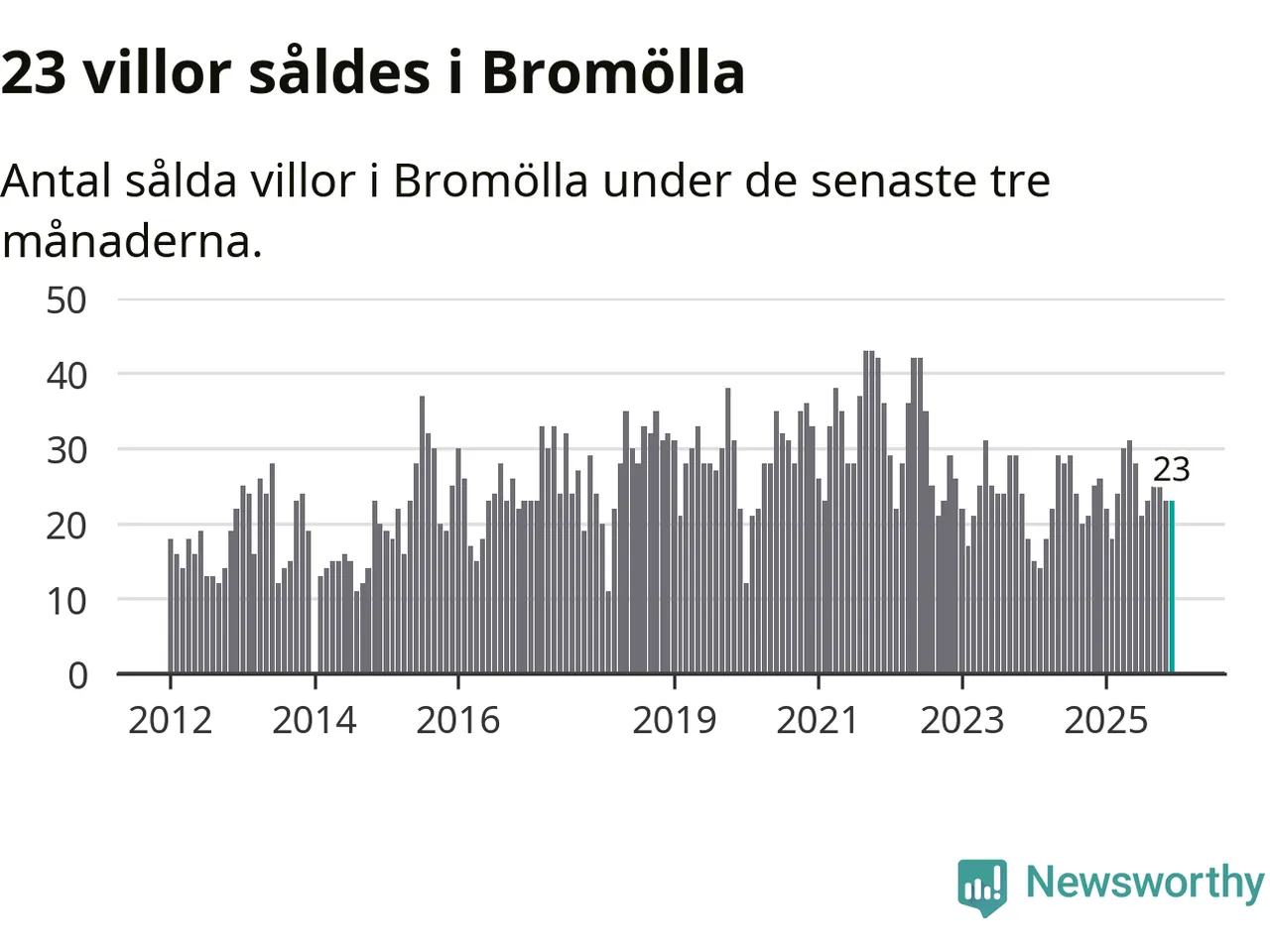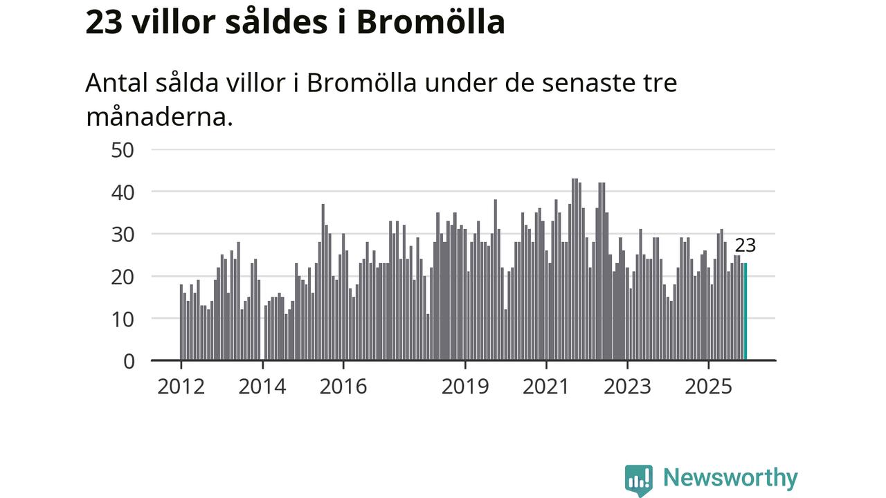 Mellan oktober och december gjordes sammanlagt 23 affärer med villor i Bromölla kommun. Det kan jämföras med 26 vid motsvarande tid i fjol.