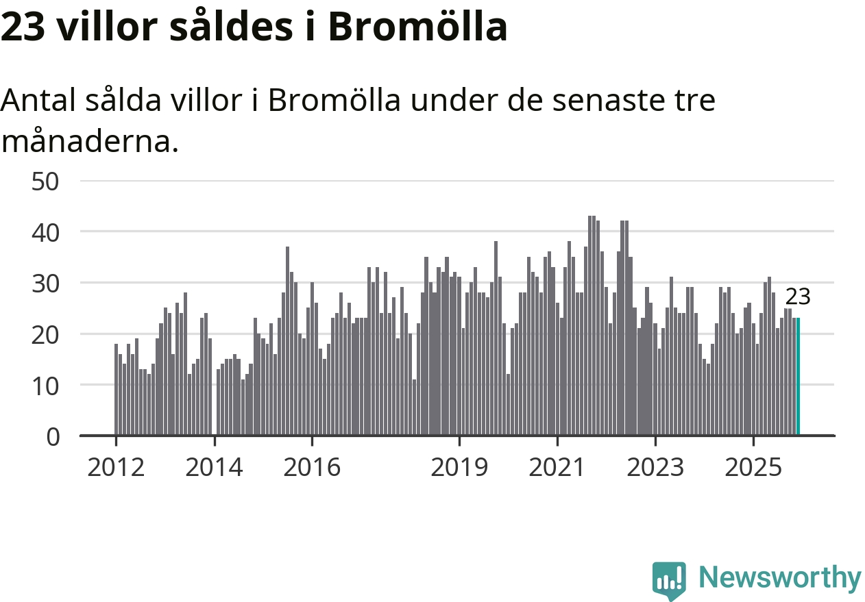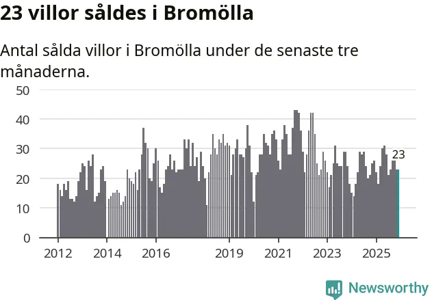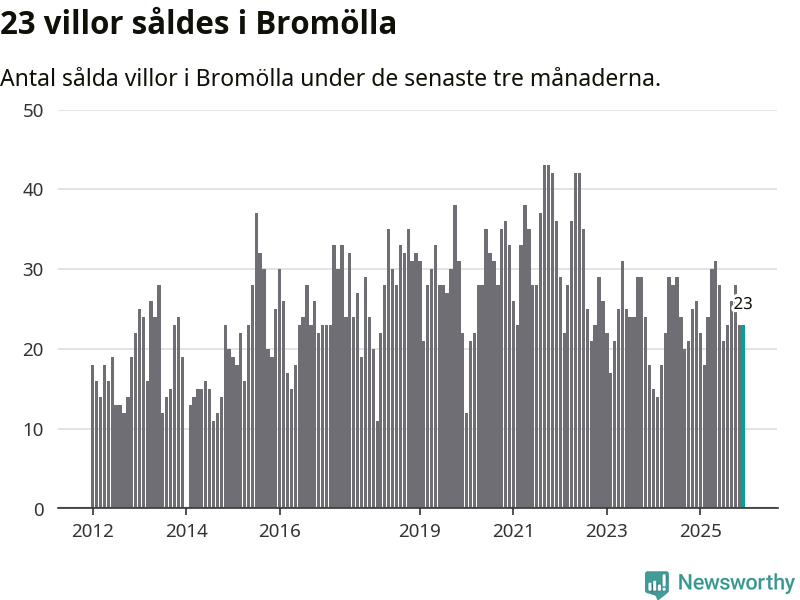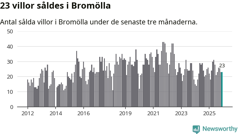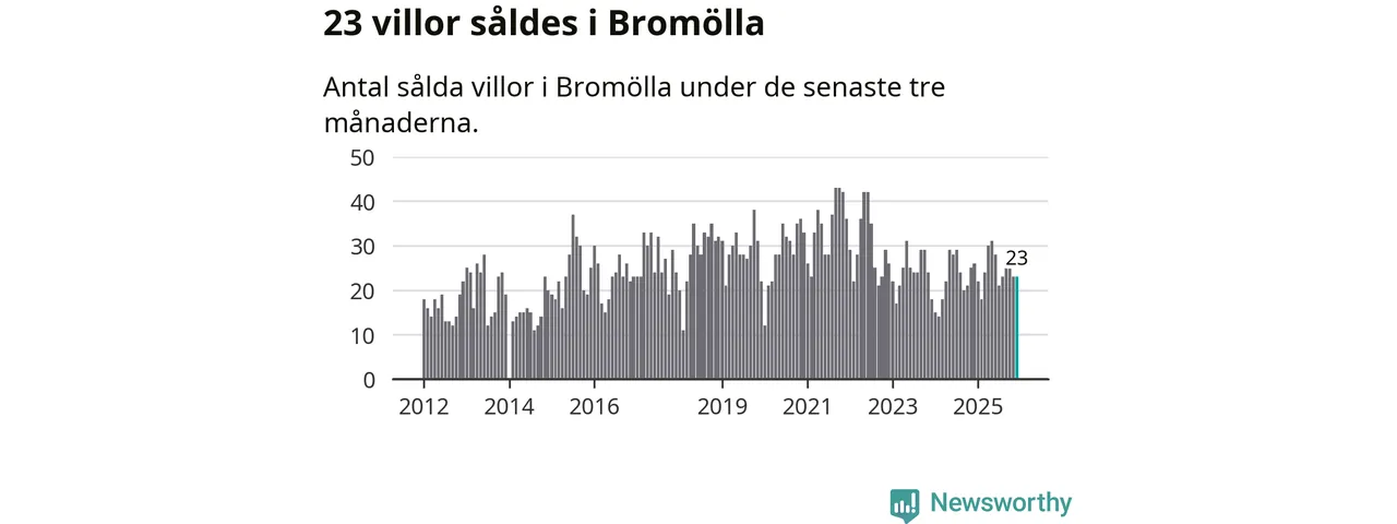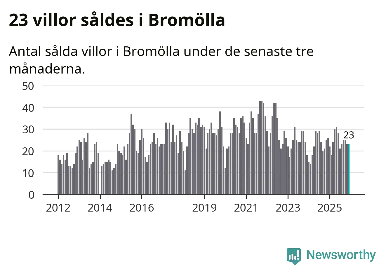 Mellan oktober och december gjordes sammanlagt 23 affärer med villor i Bromölla kommun. Det kan jämföras med 26 vid motsvarande tid i fjol.