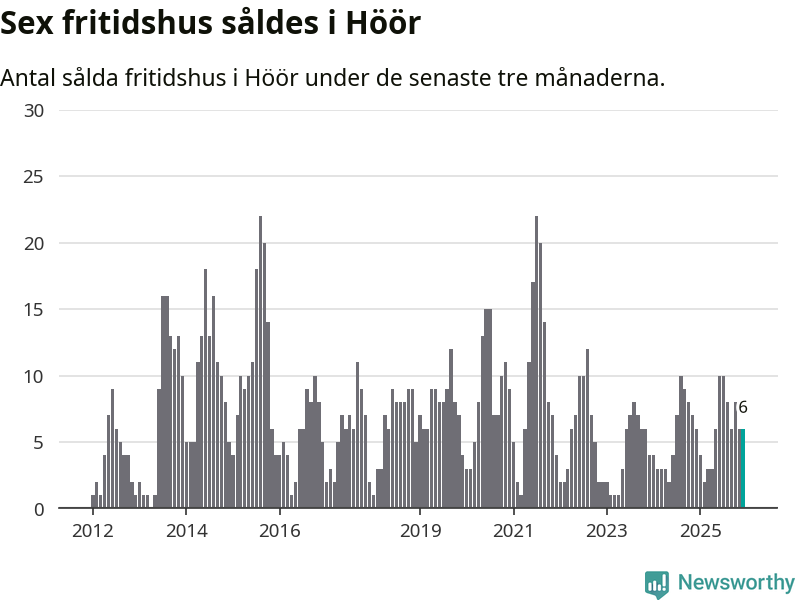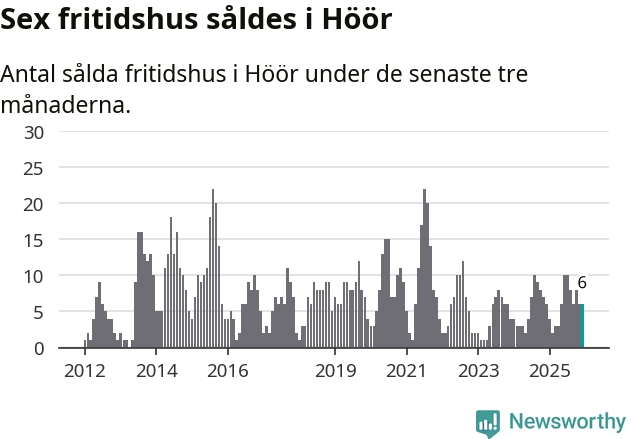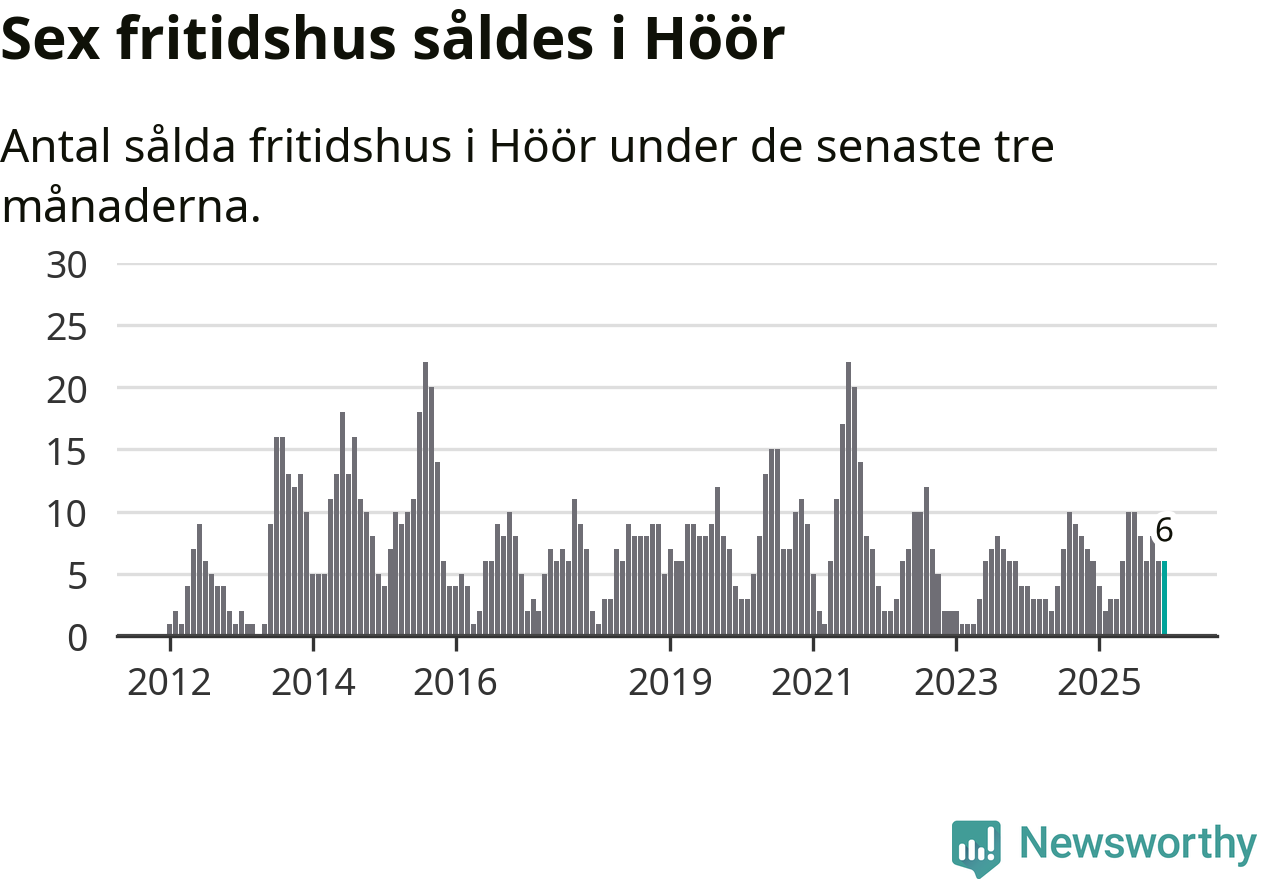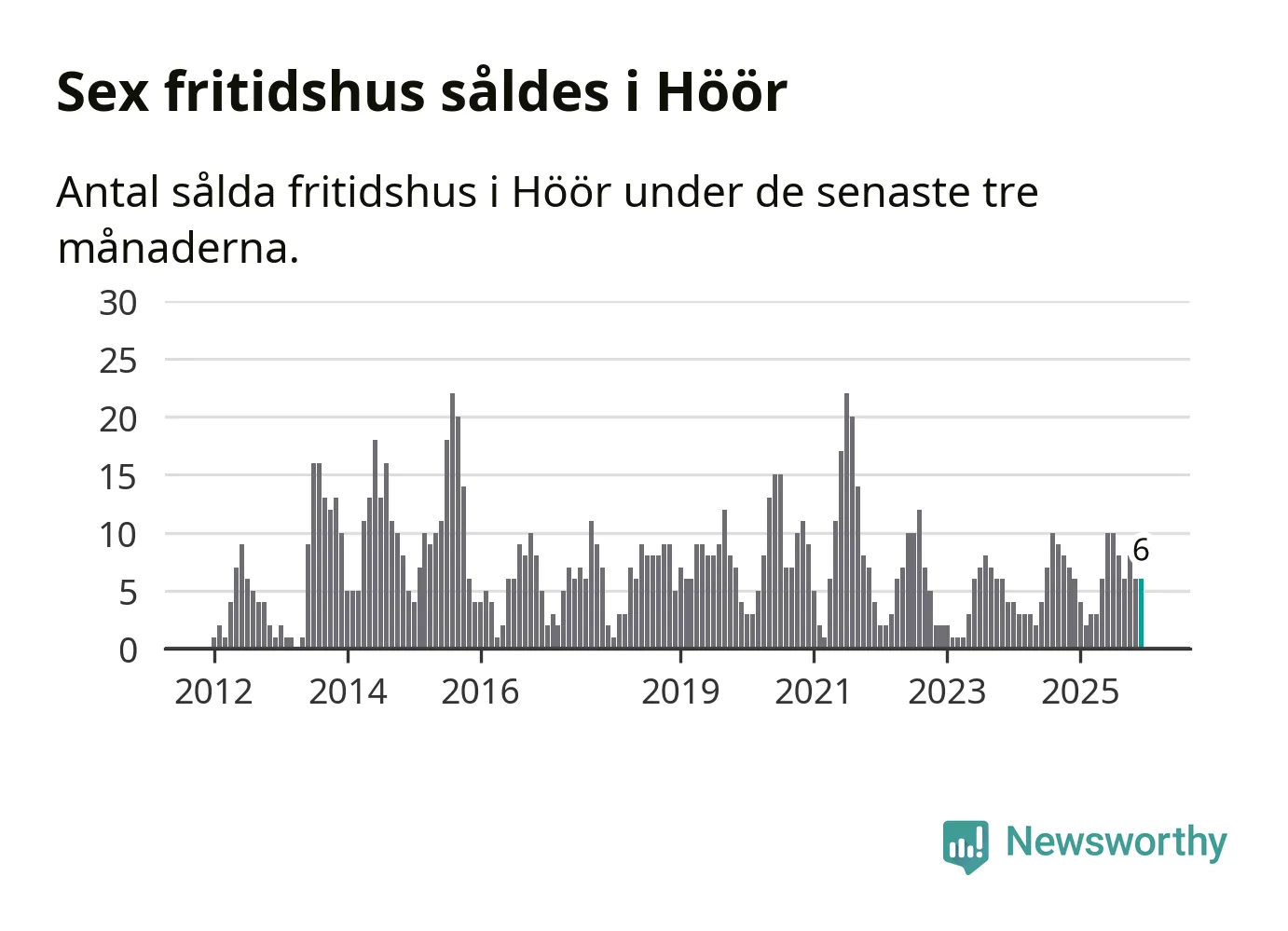 Mellan oktober och december gjordes sammanlagt sex affärer med fritidshus i Höörs kommun. Det är lika många affärer som vid motsvarande tid i fjol.