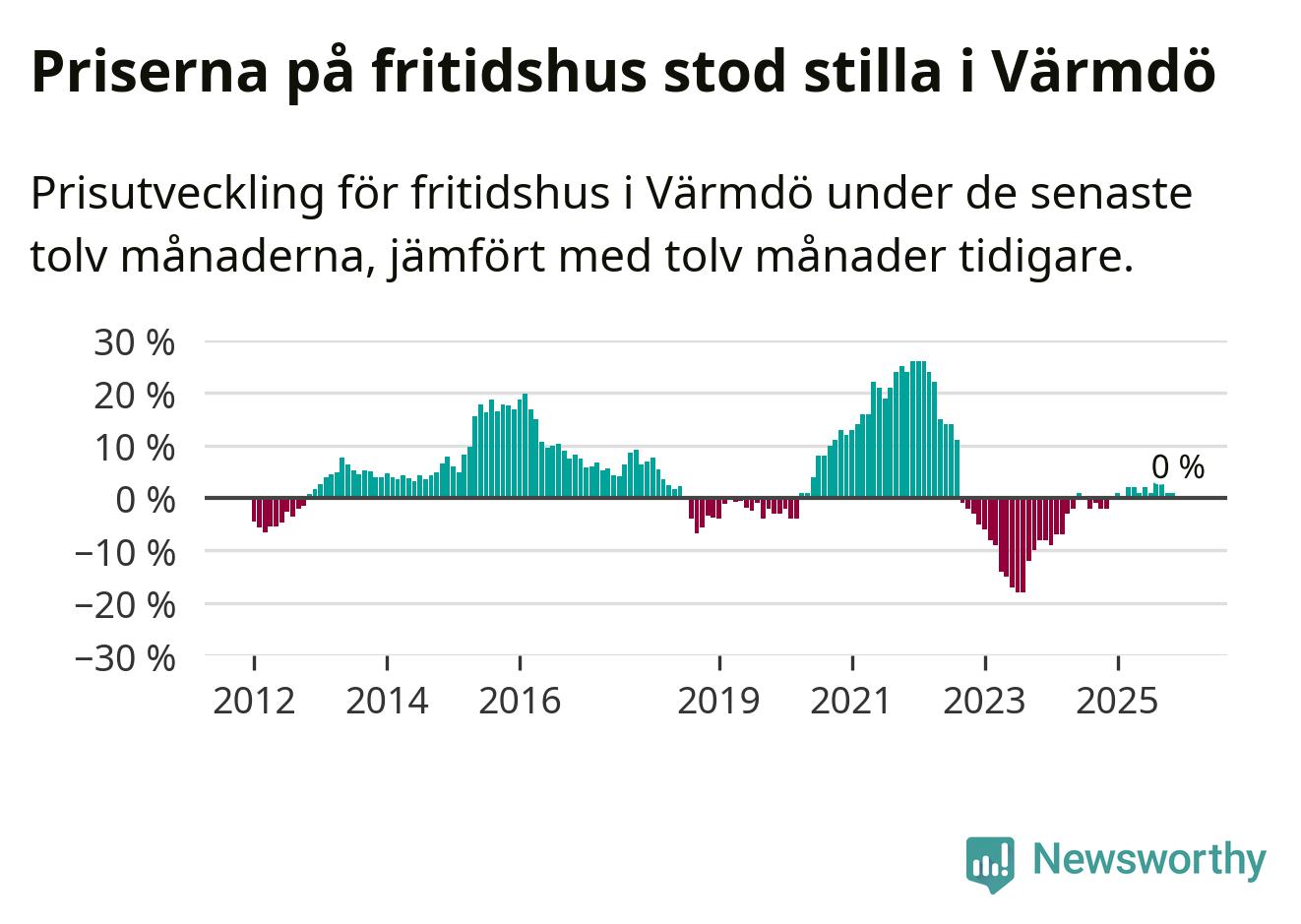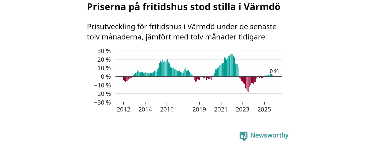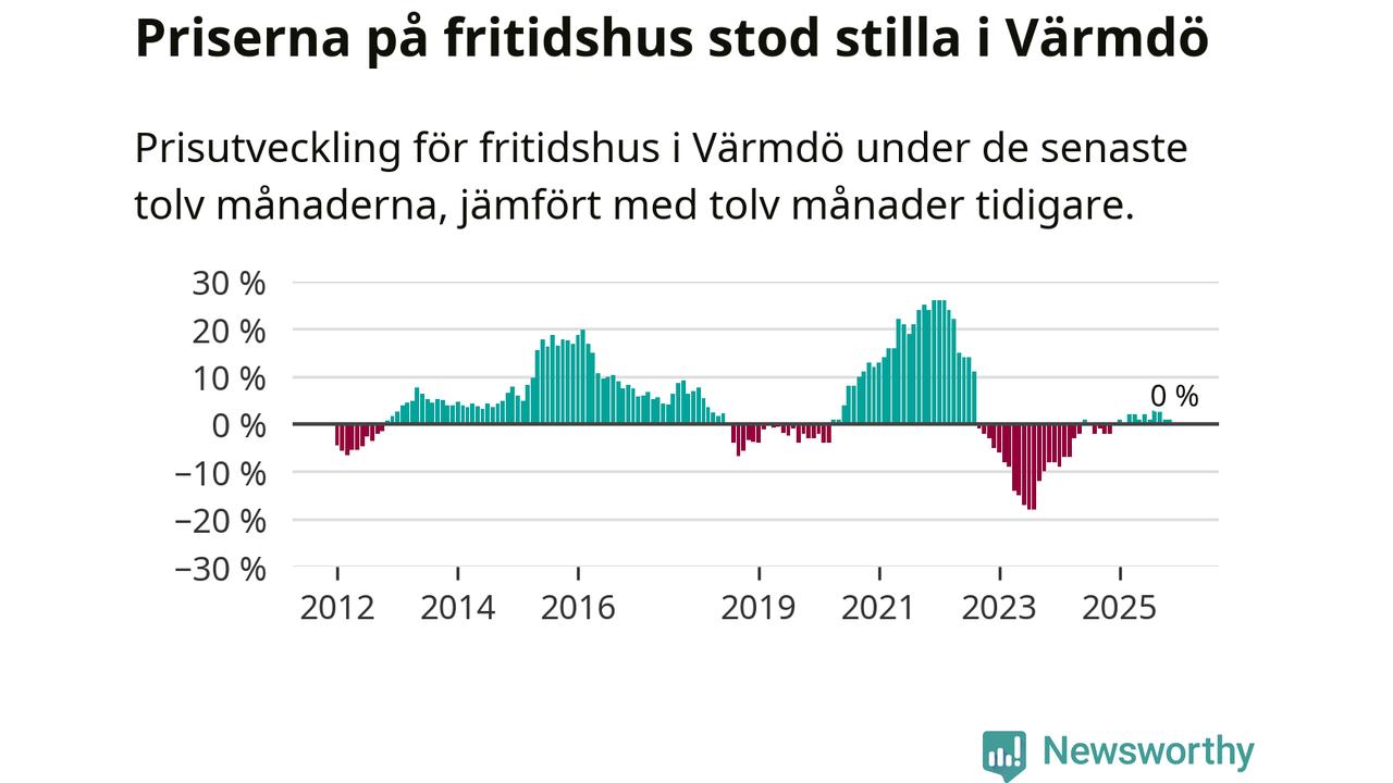 Sammanlagt såldes 14 fritidshus i Värmdö kommun mellan oktober 2025 och december 2025 till ett genomsnittligt pris på 5,6 miljoner kronor. I fjol gjordes 26 affärer vid den här tiden på året.