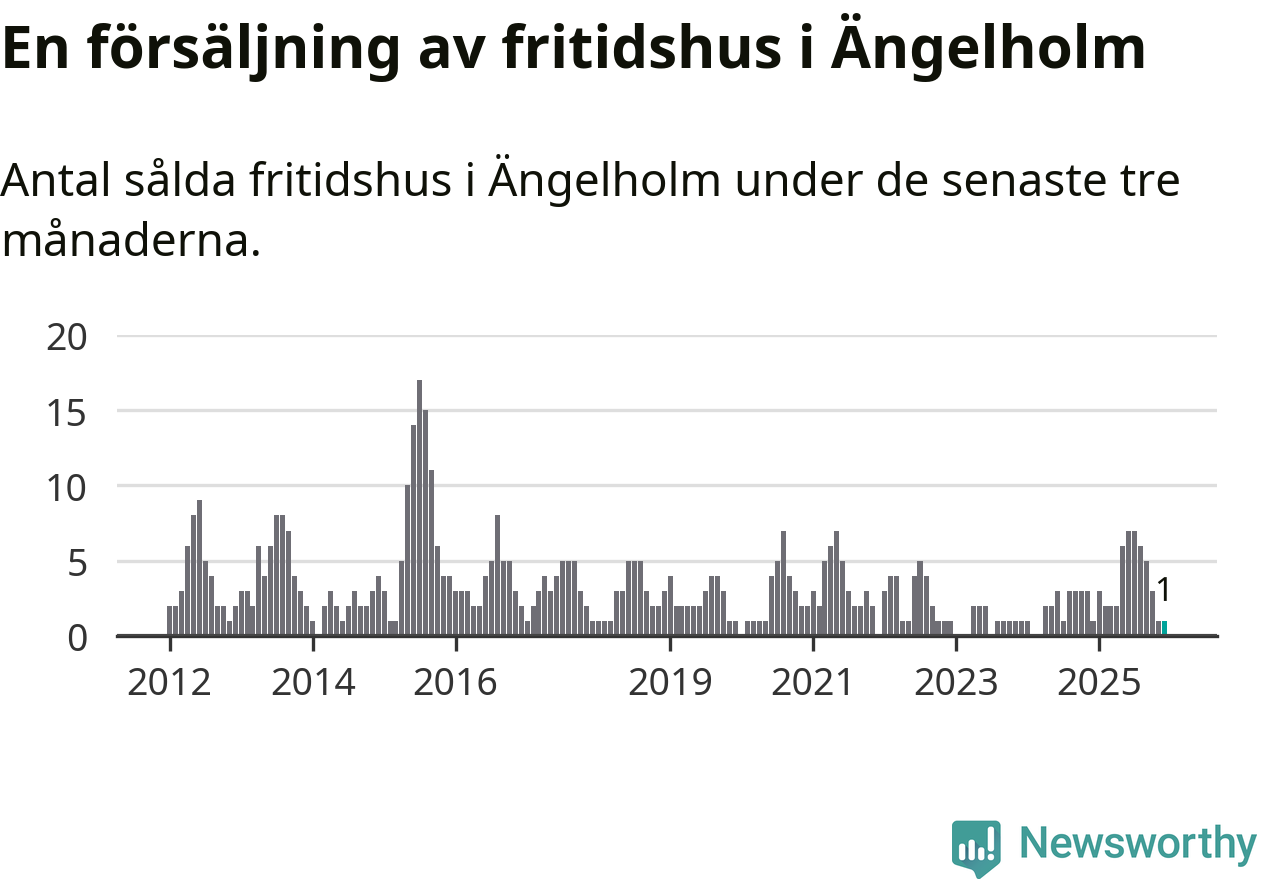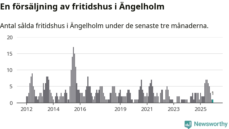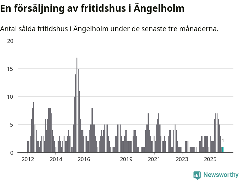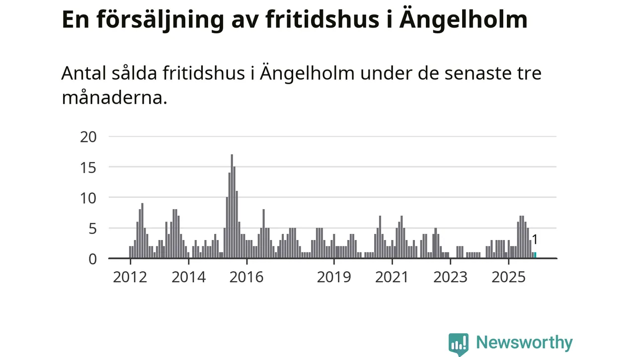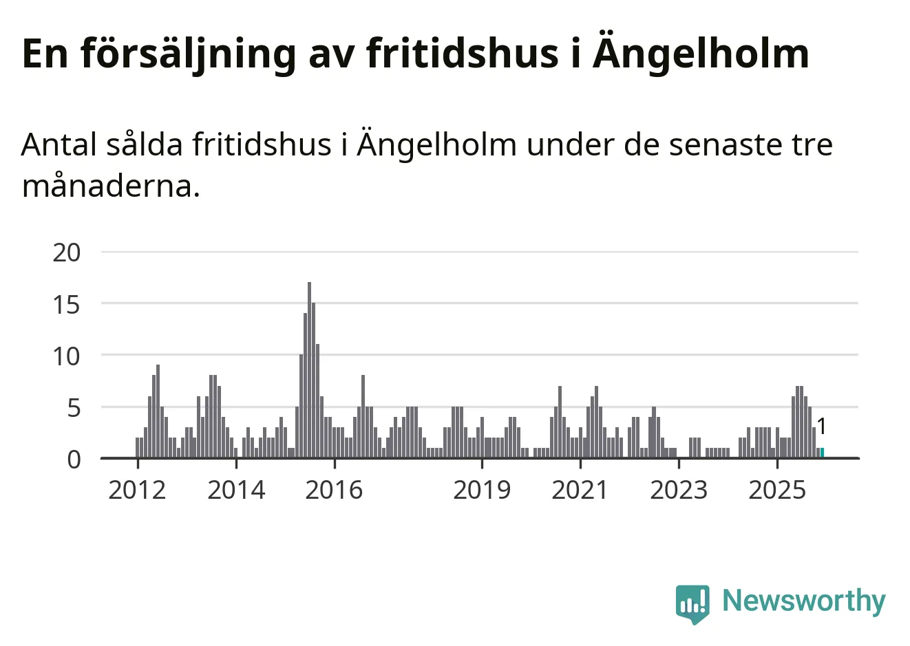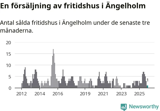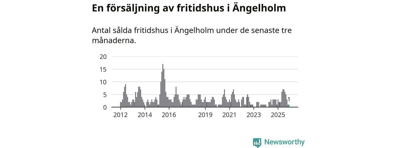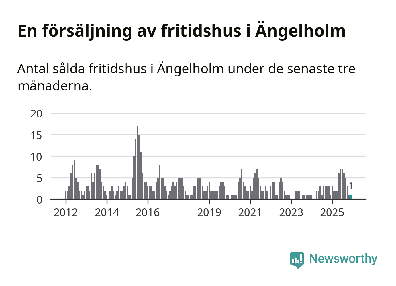 Mellan oktober och december gjordes sammanlagt en affär med fritidshus i Ängelholms kommun. Det är lika många affärer som vid motsvarande tid i fjol.