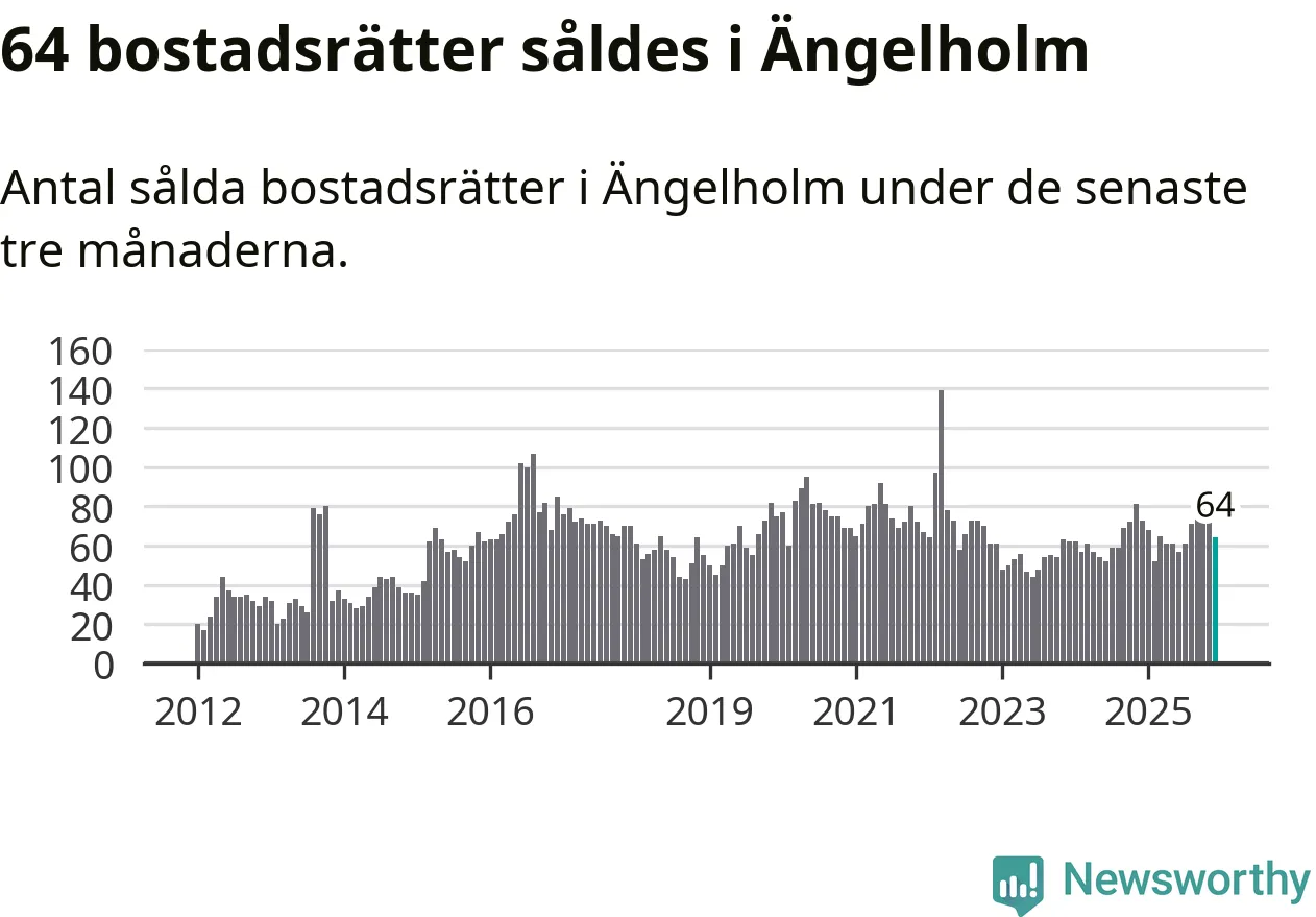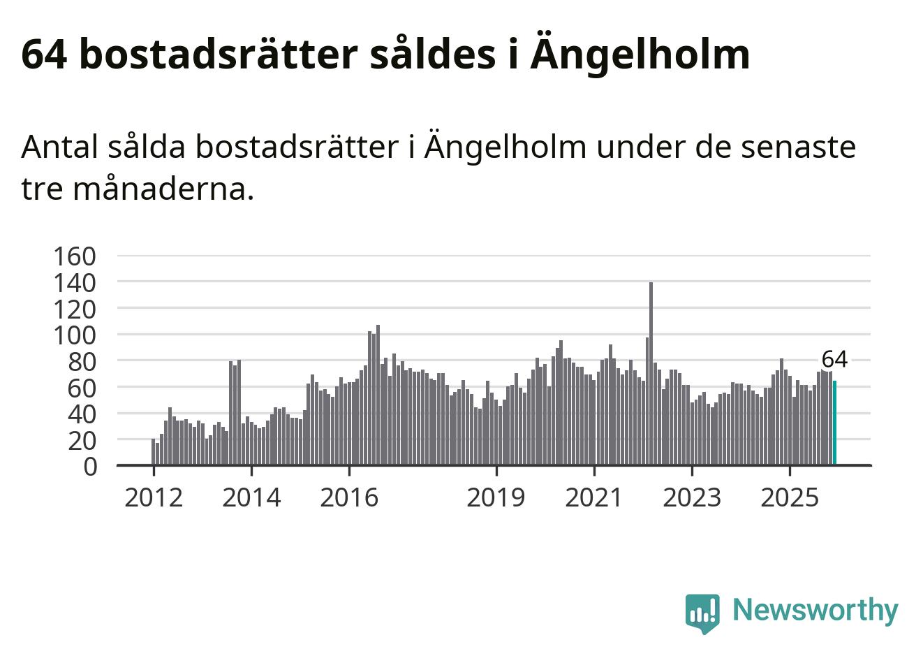 Graf: Antal sålda bostadsrätter i Ängelholms kommun