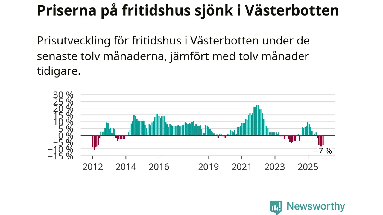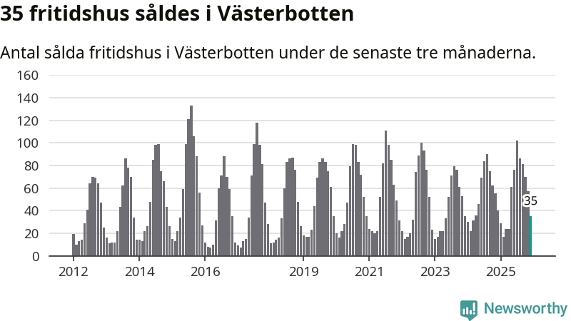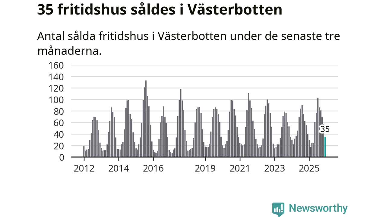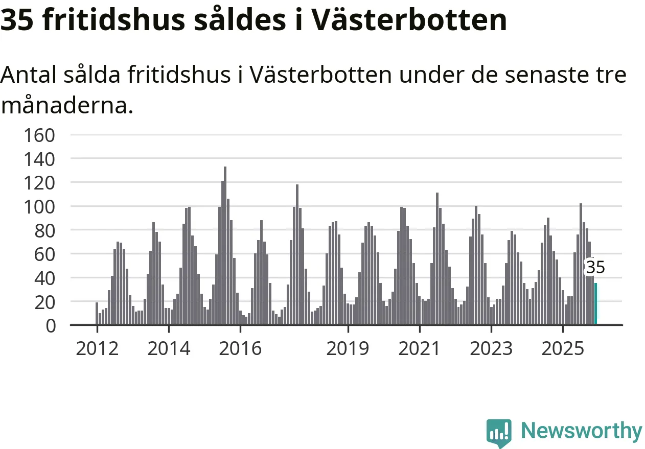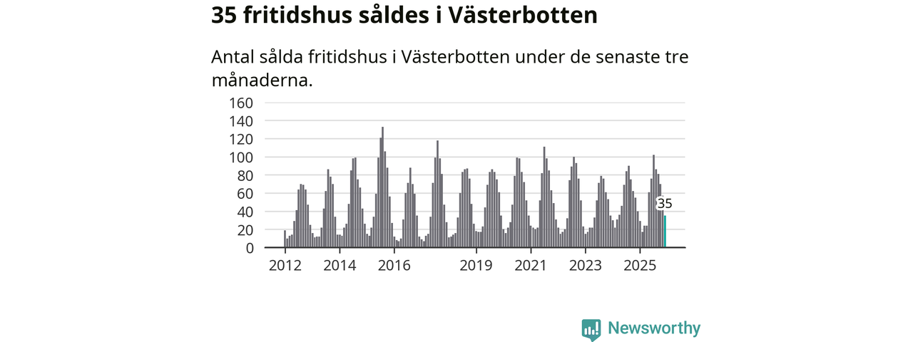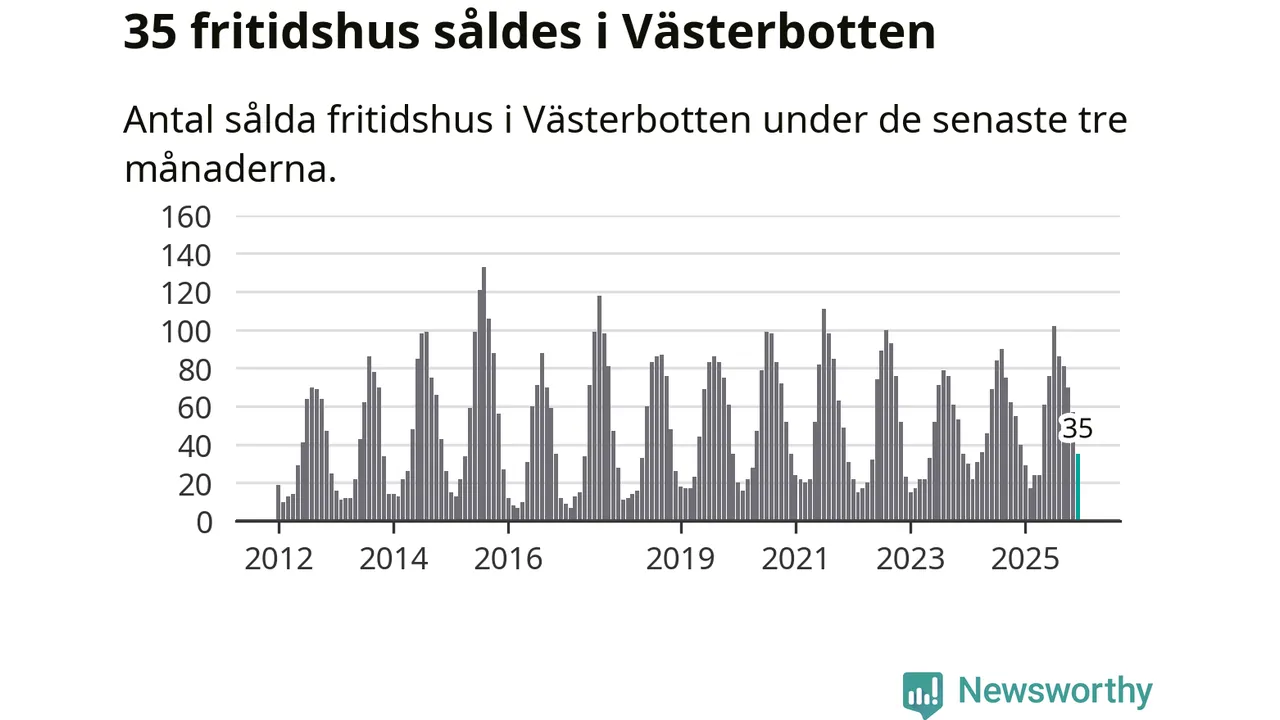 Sammanlagt såldes 35 fritidshus i Västerbottens län mellan oktober 2025 och december 2025 till ett genomsnittligt pris på 1,8 miljoner kronor. I fjol gjordes 40 affärer vid den här tiden på året.