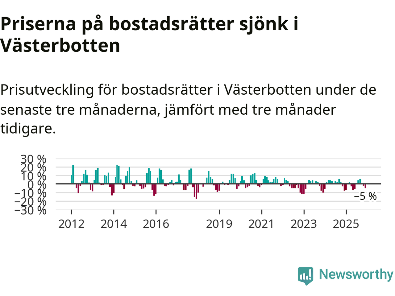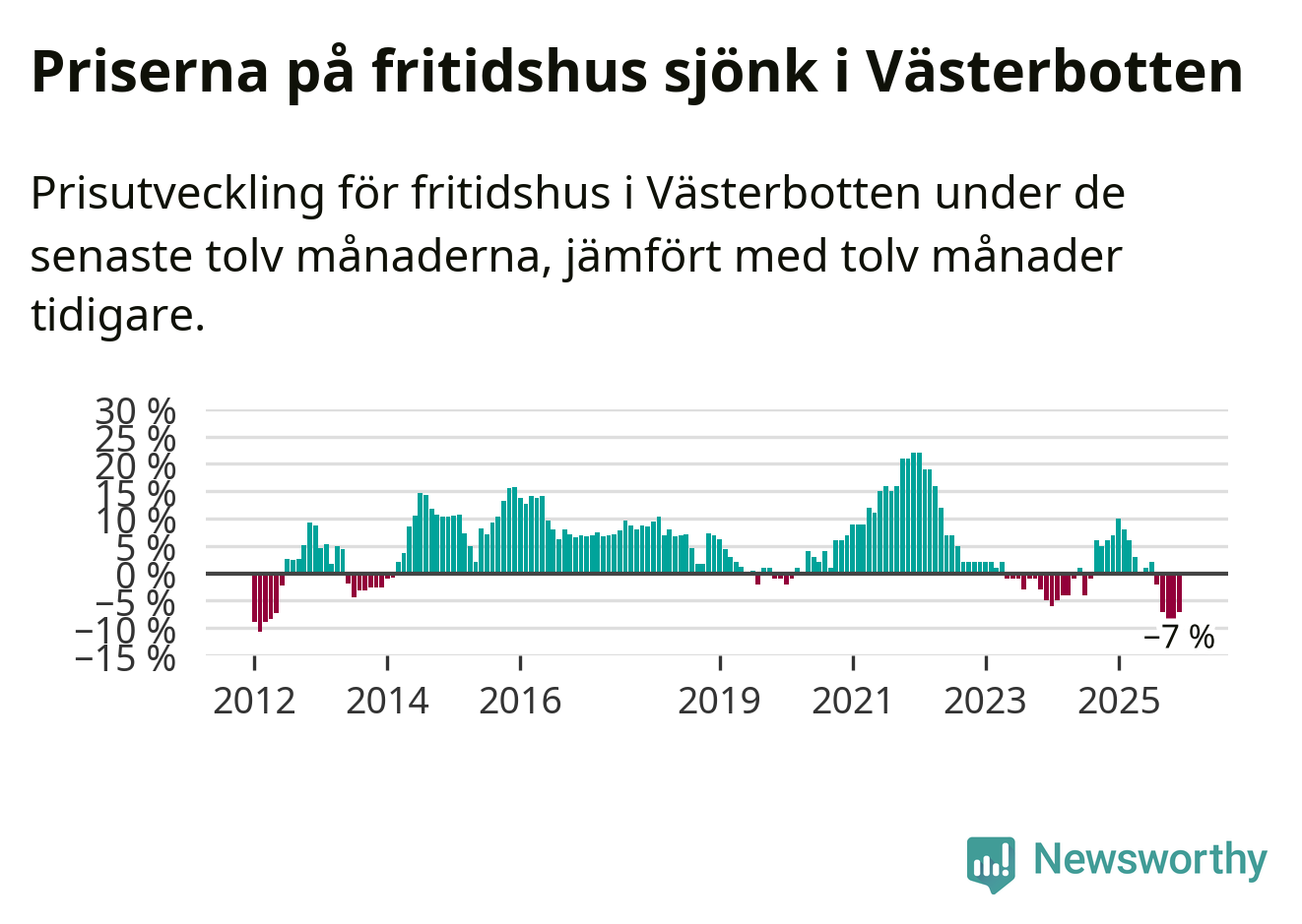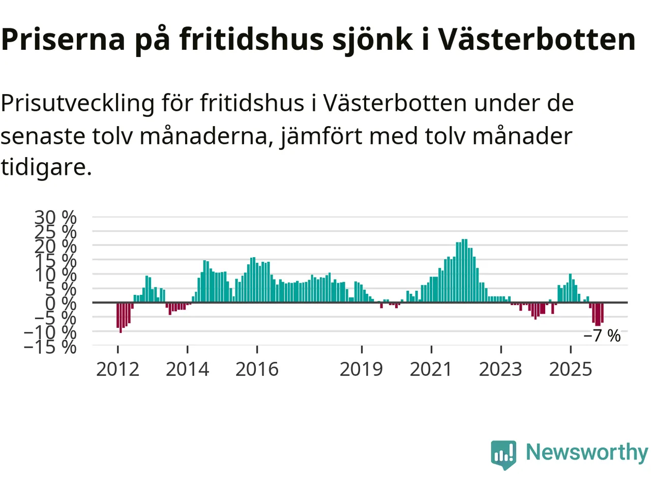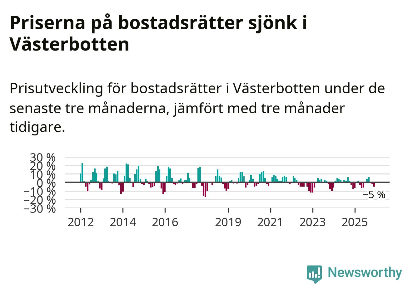 Villapriserna sjönk med sex procent i Västerbottens län under de senaste tre månaderna. Det är den svagaste prisutvecklingen sedan 2022.