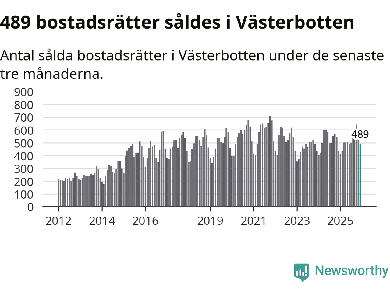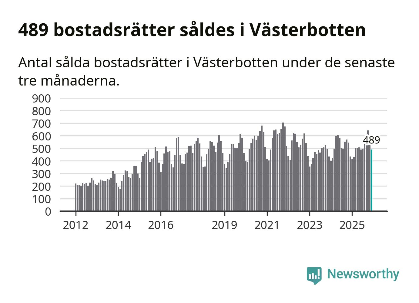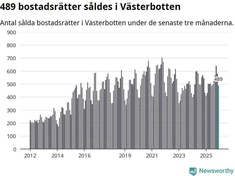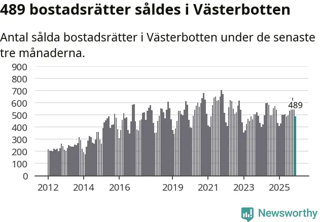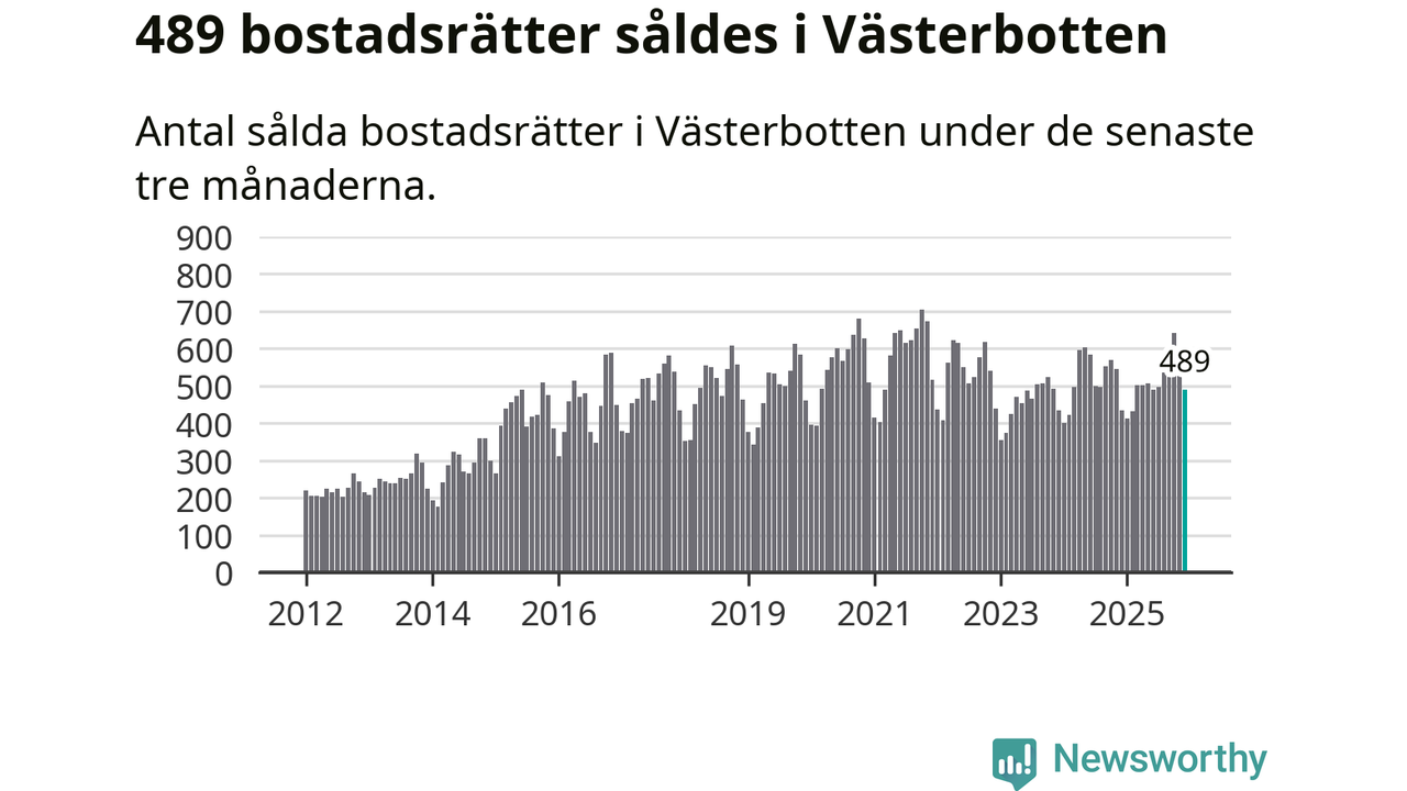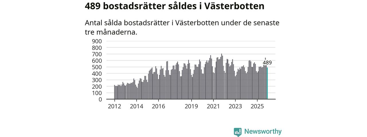 Sammanlagt såldes 489 bostadsrätter i Västerbottens län mellan oktober och december till ett genomsnittligt pris på 1,9 miljoner kronor. I fjol gjordes 435 affärer vid den här tiden på året.
