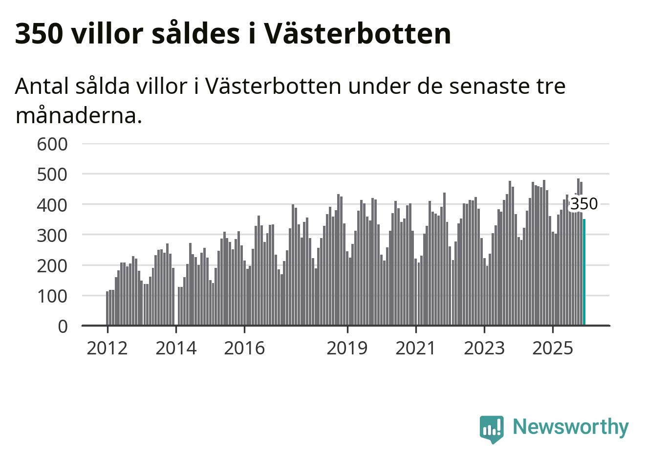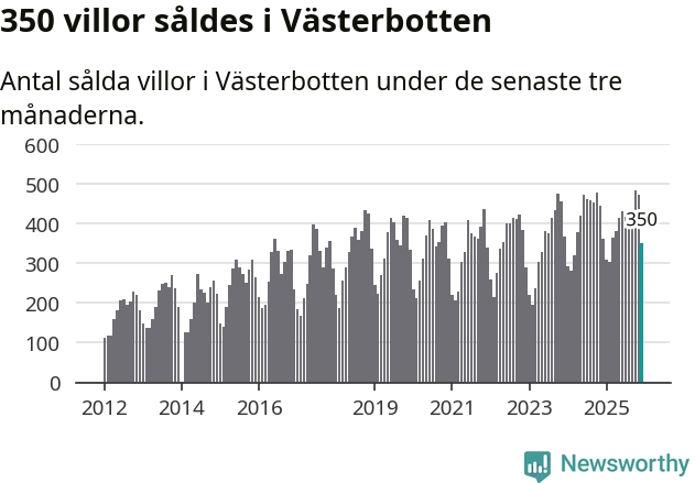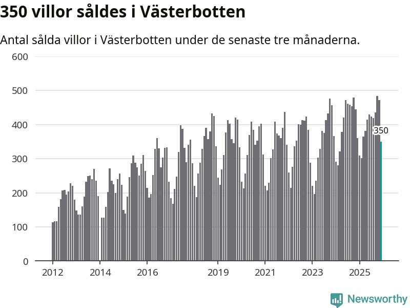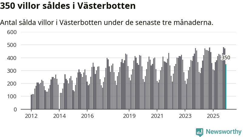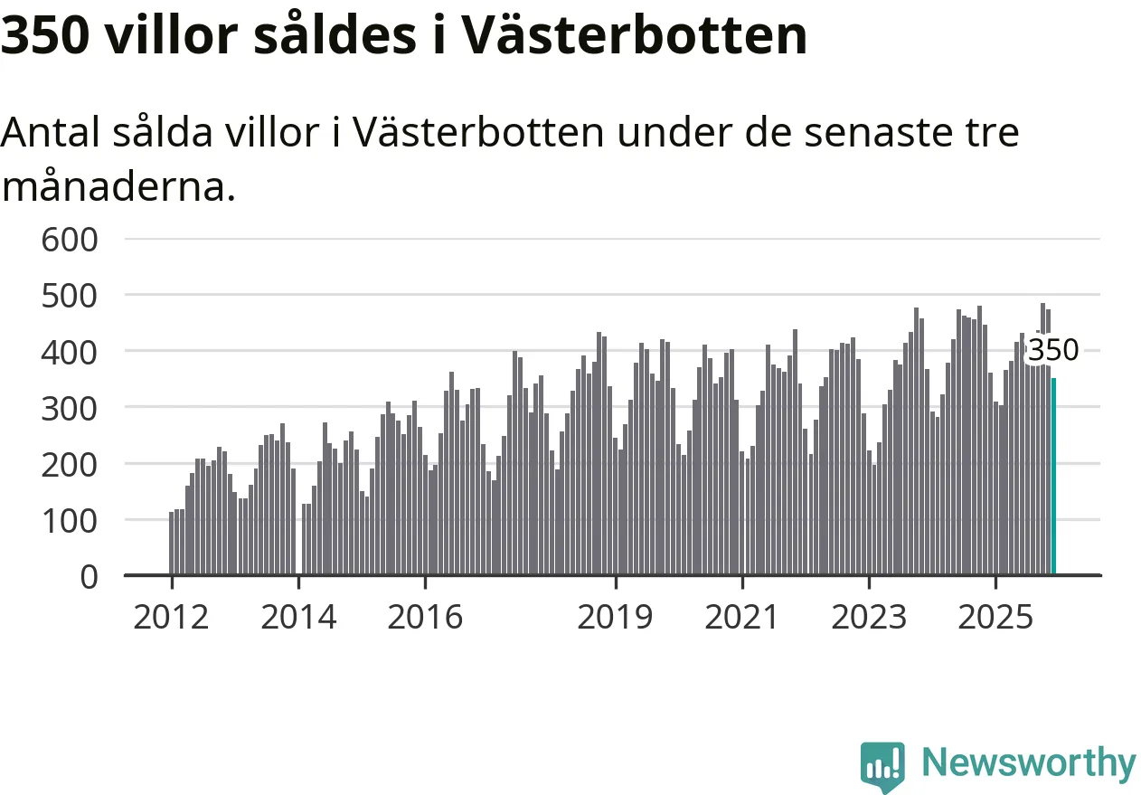 Sammanlagt såldes 350 villor i Västerbottens län mellan oktober och december till ett genomsnittligt pris på 3,0 miljoner kronor. I fjol gjordes 360 affärer vid den här tiden på året.