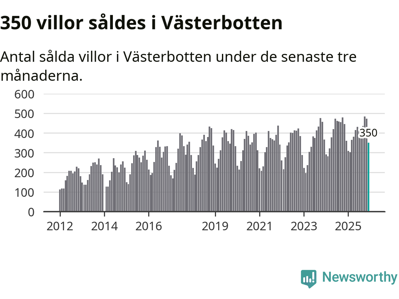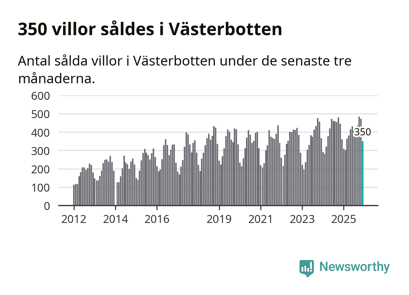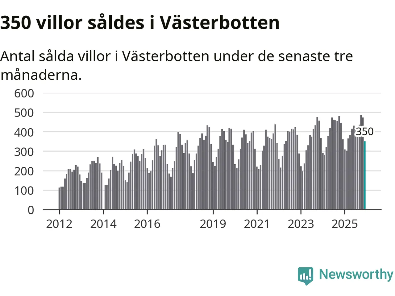Sammanlagt såldes 350 villor i Västerbottens län mellan oktober och december till ett genomsnittligt pris på 3,0 miljoner kronor. I fjol gjordes 360 affärer vid den här tiden på året.