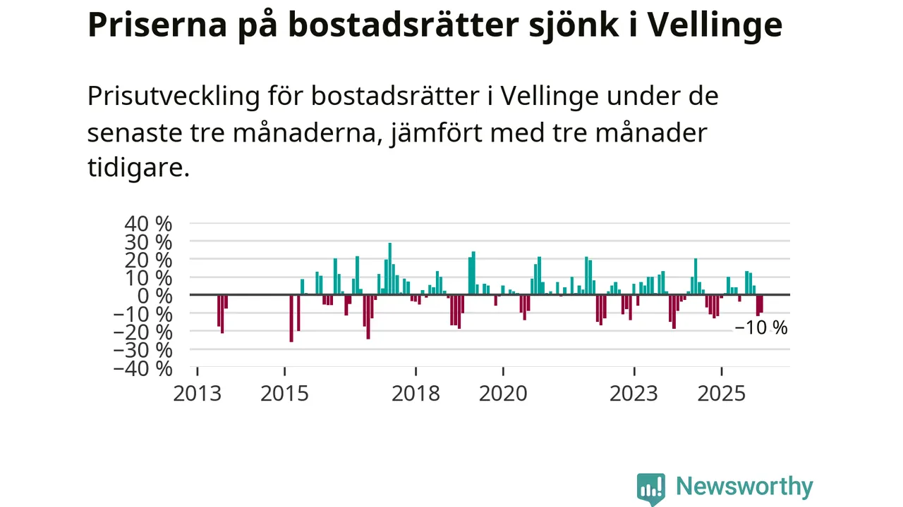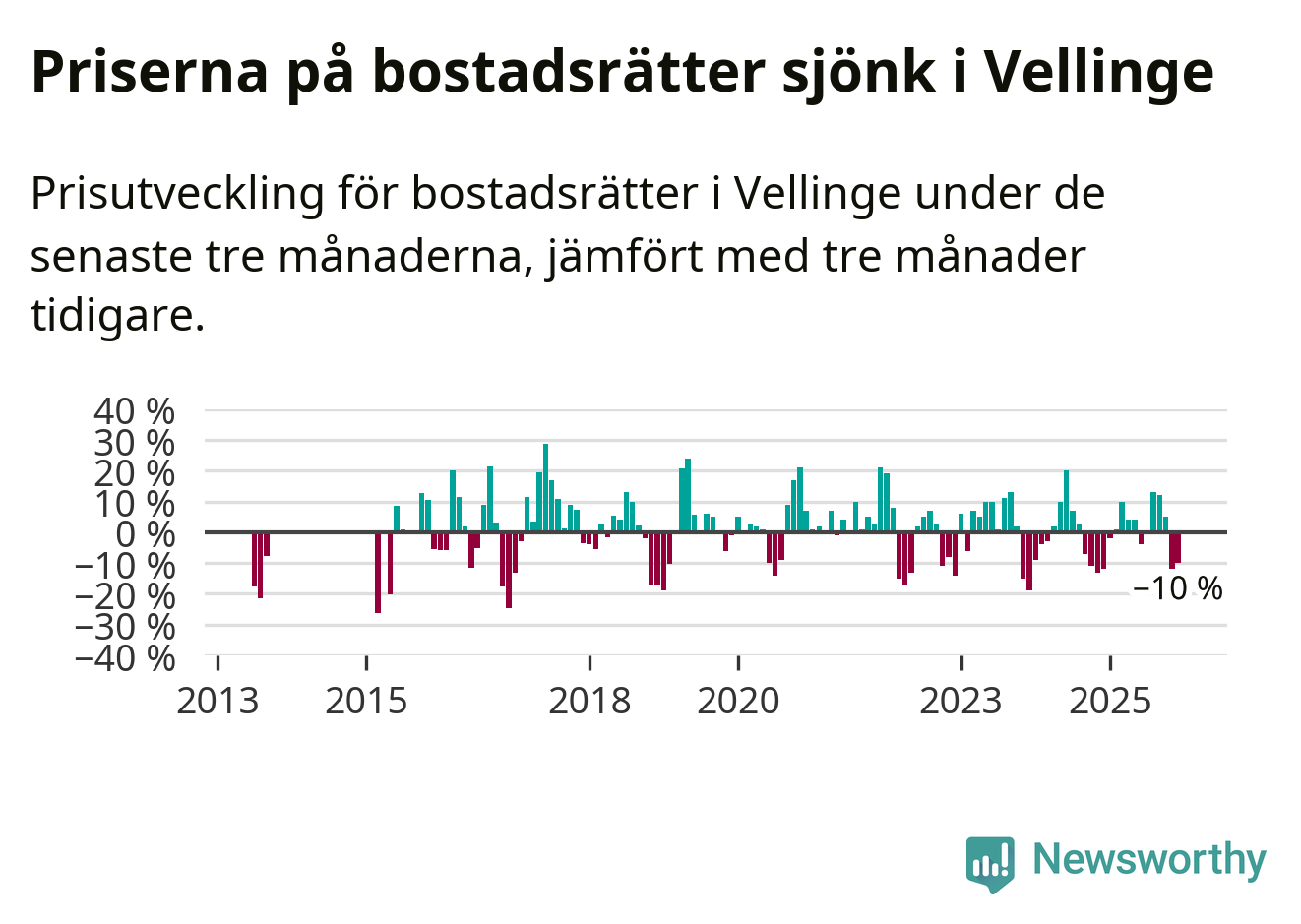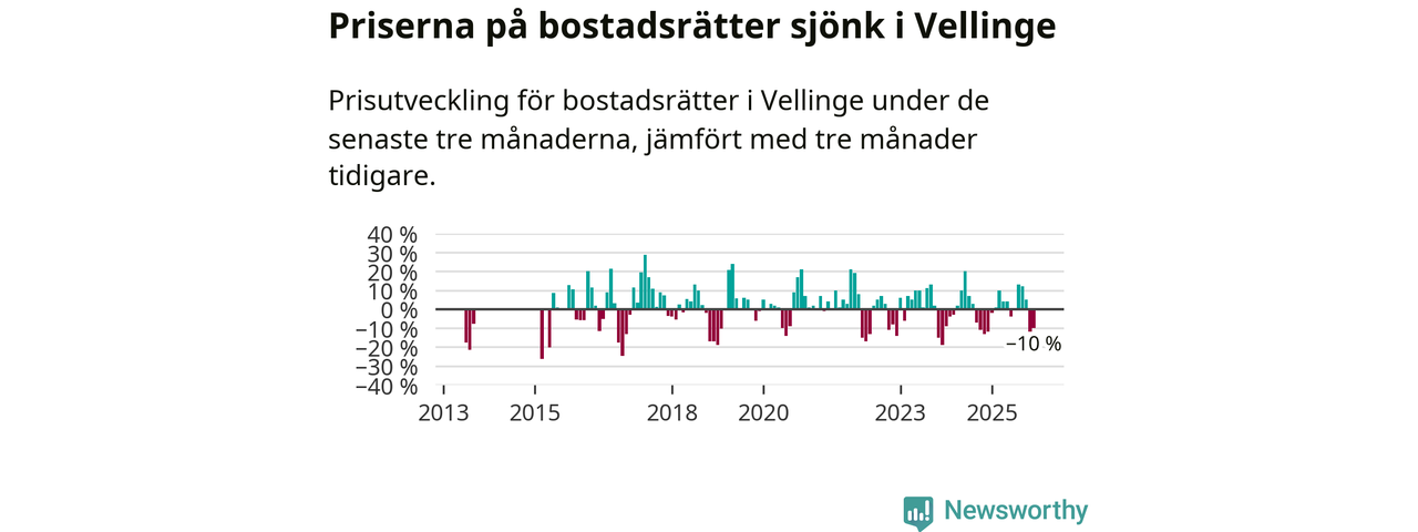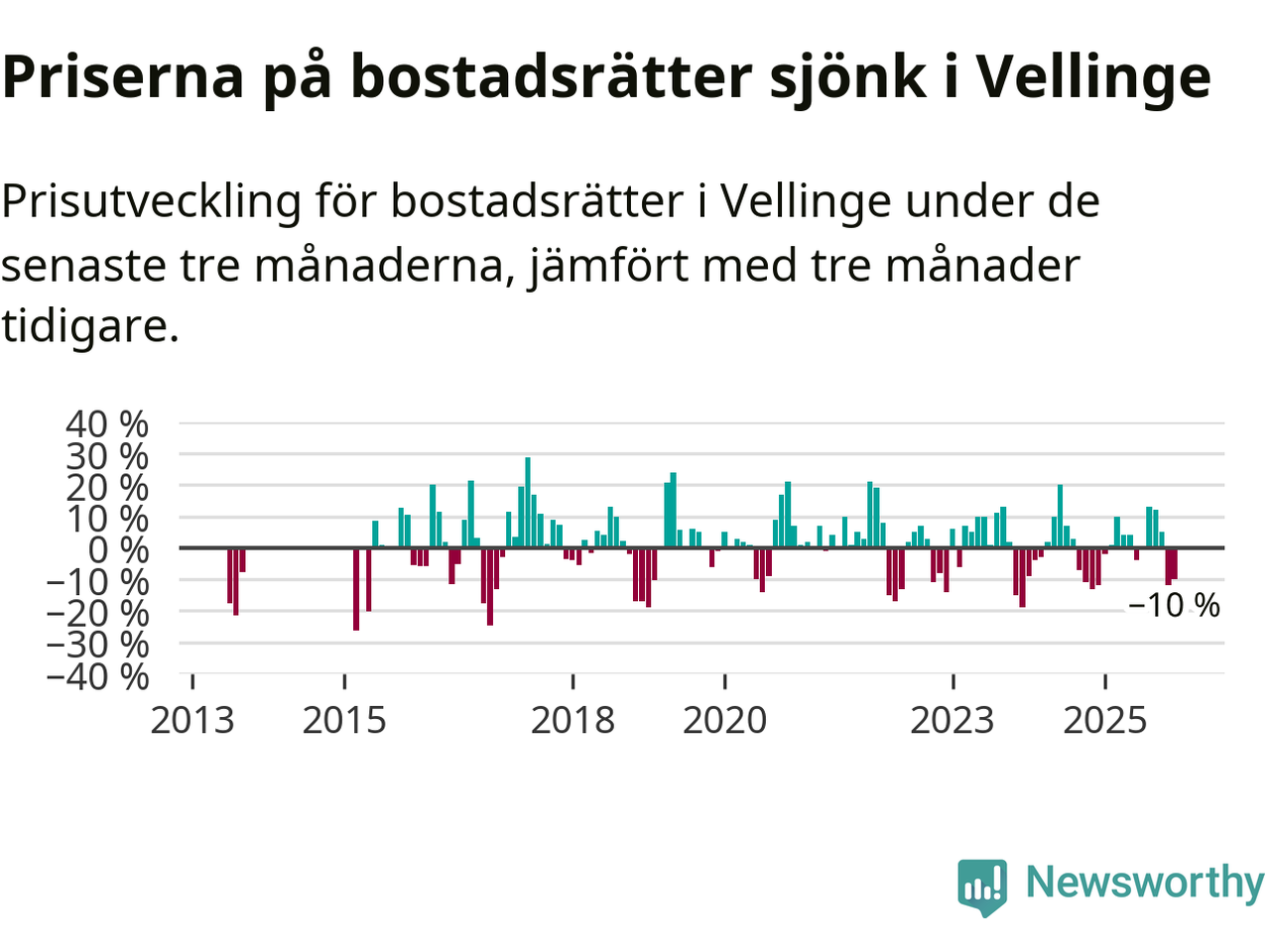 Under oktober till december såldes det 14 färre bostadsrätter i Vellinge än snittet för det senaste året.